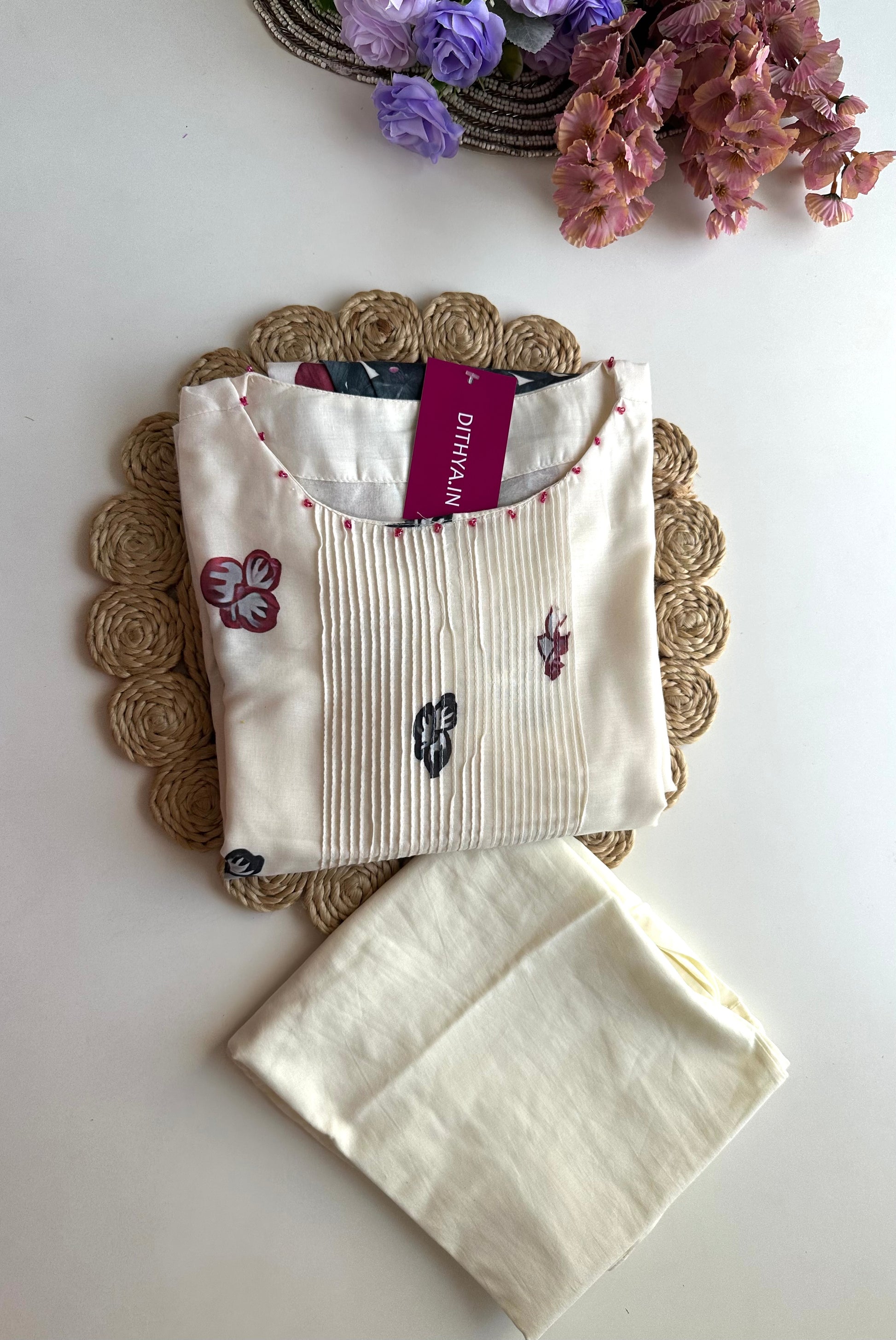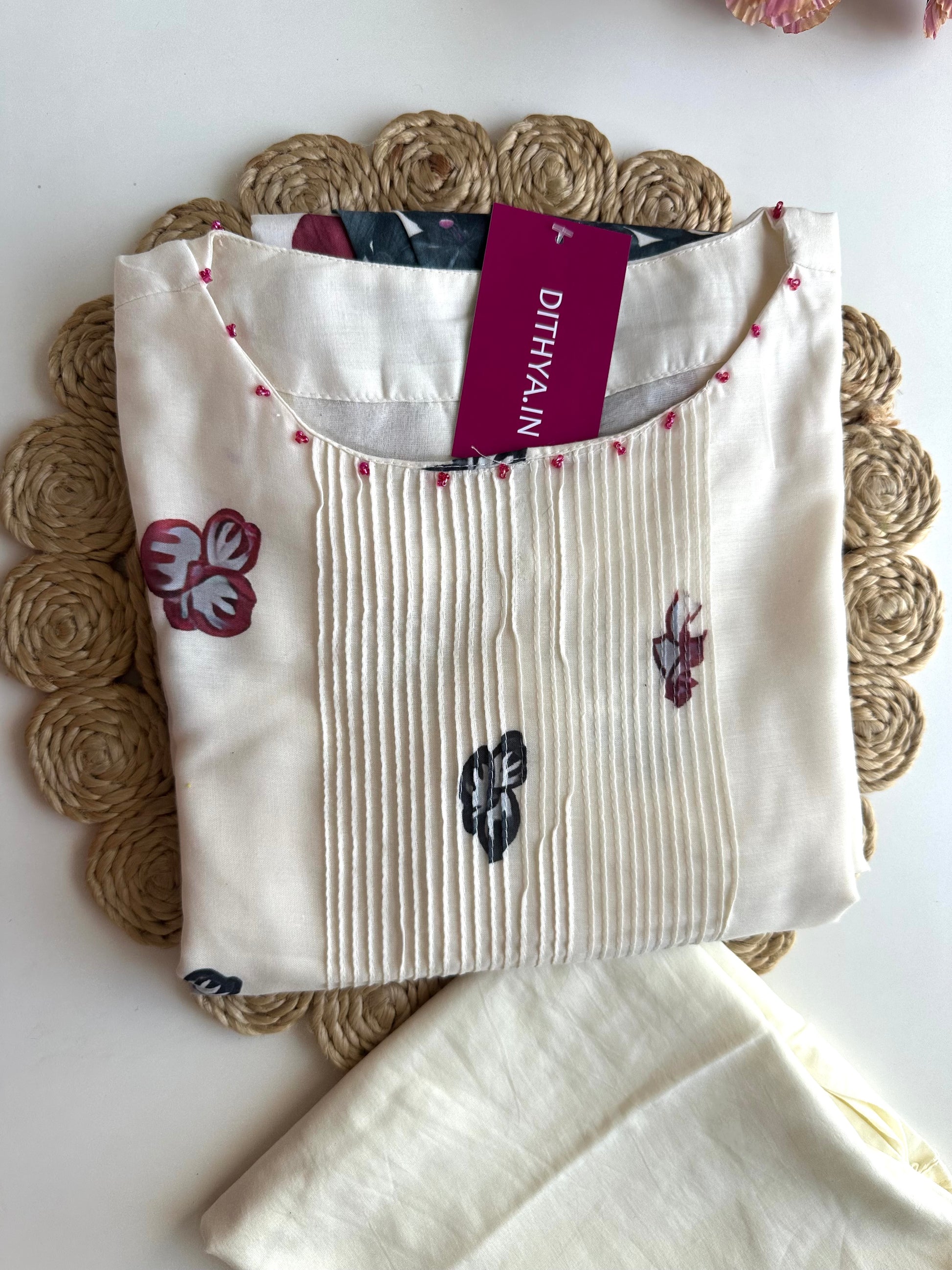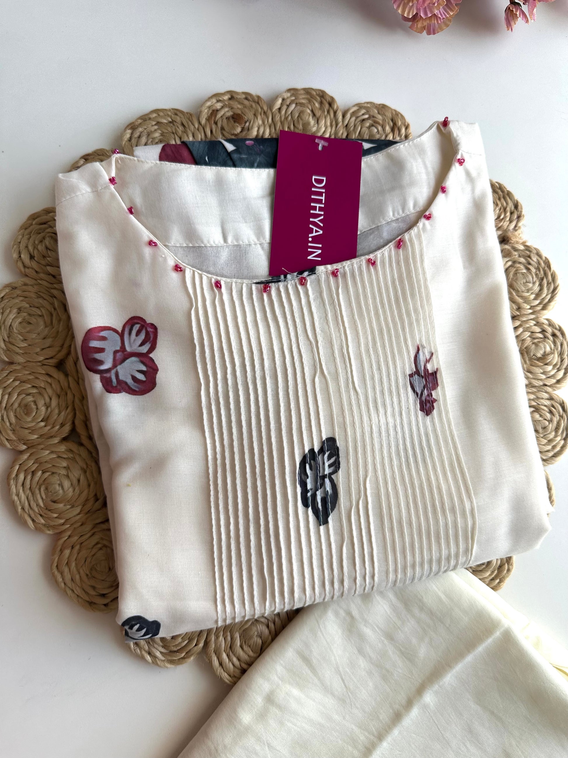 K112 - Floral pintex mul cotton Aline Kurti with pants