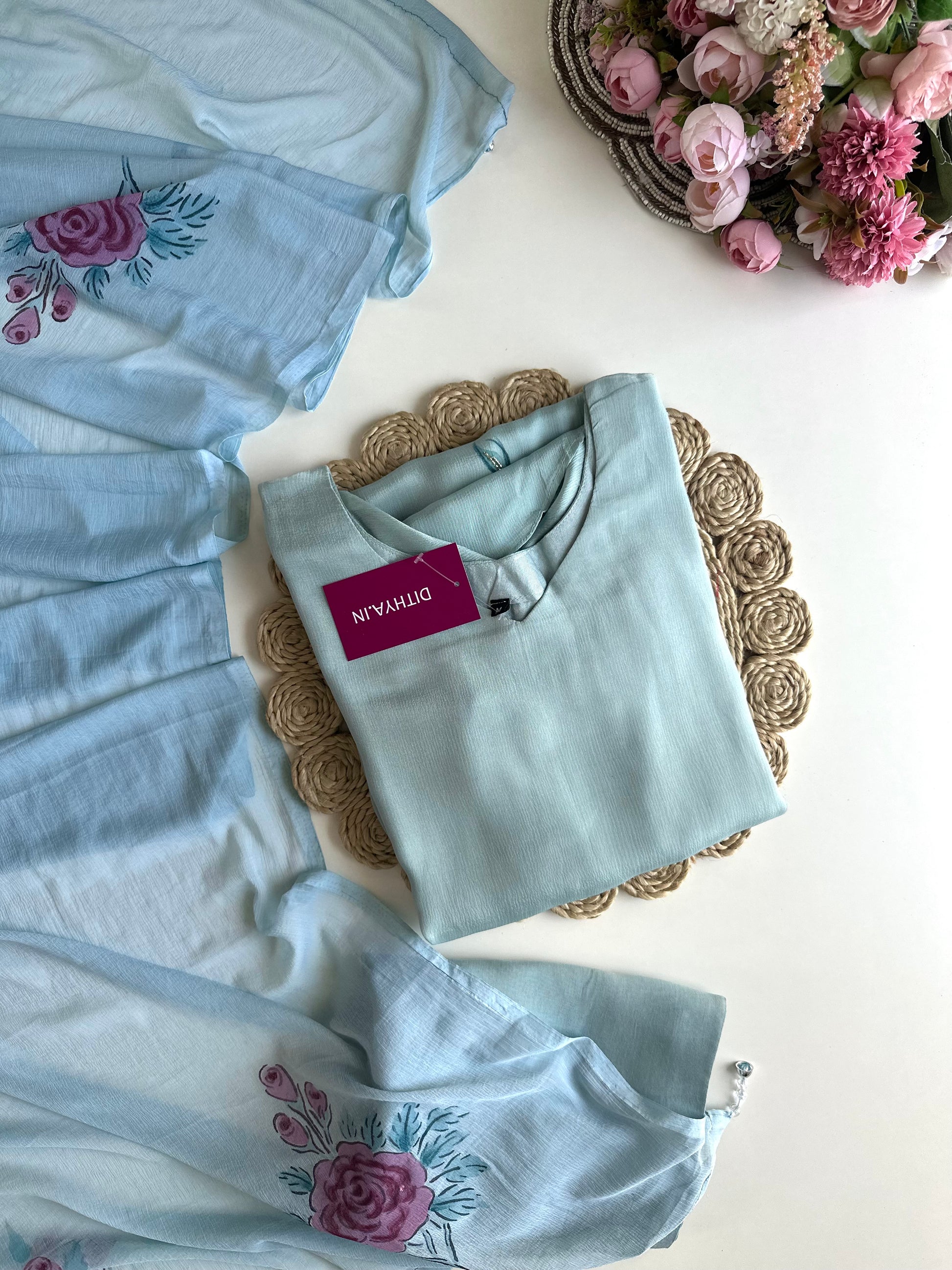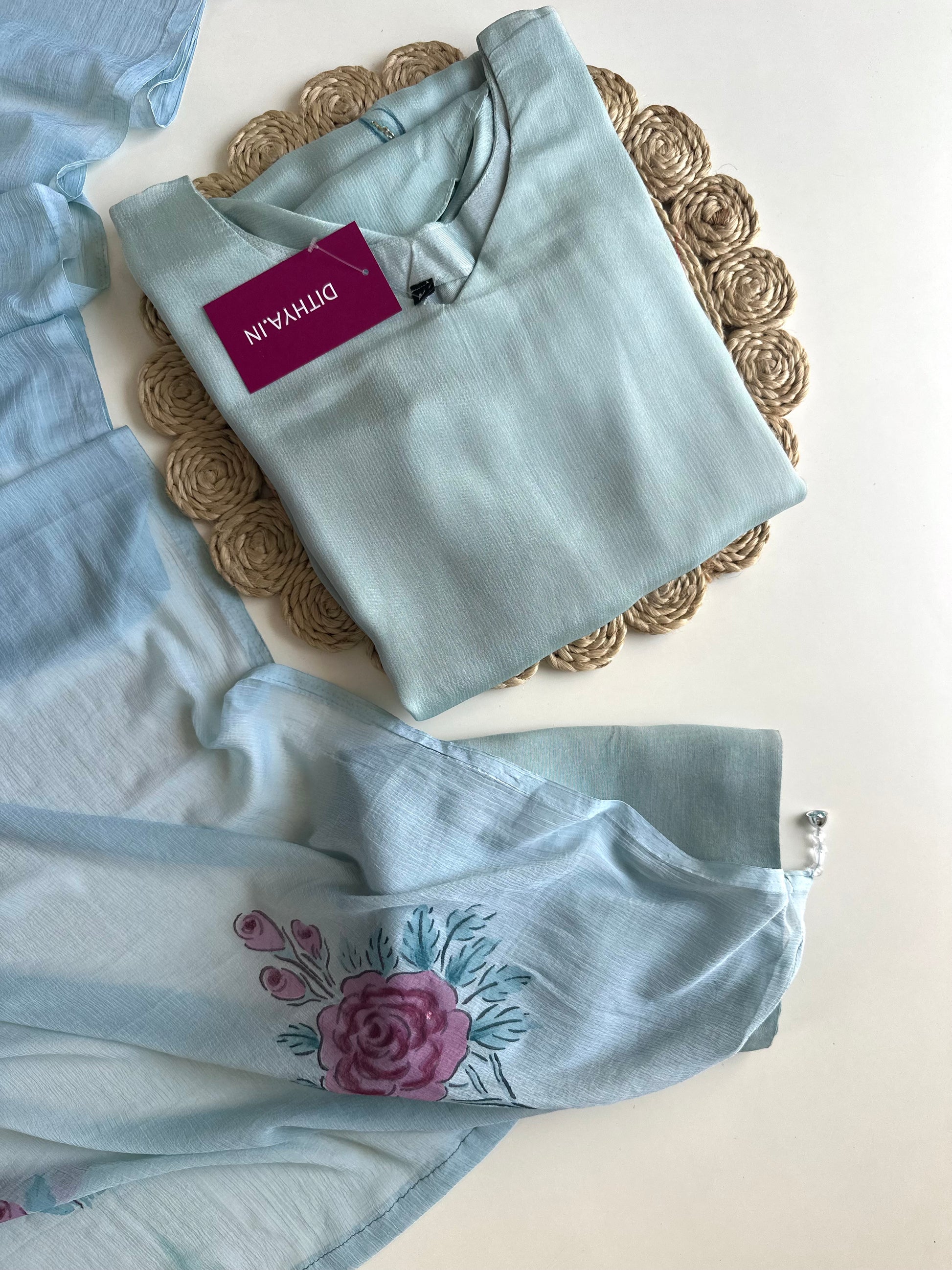 Elevate your style with our Pure Chinnon Aline Kurti, featuring exquisite handwork. This ensemble comes complete with comfortable pants and a beautiful dupatta. Made from pure Chinnon fabric, our Kurti offers a timeless and elegant look, perfect for any occasion.