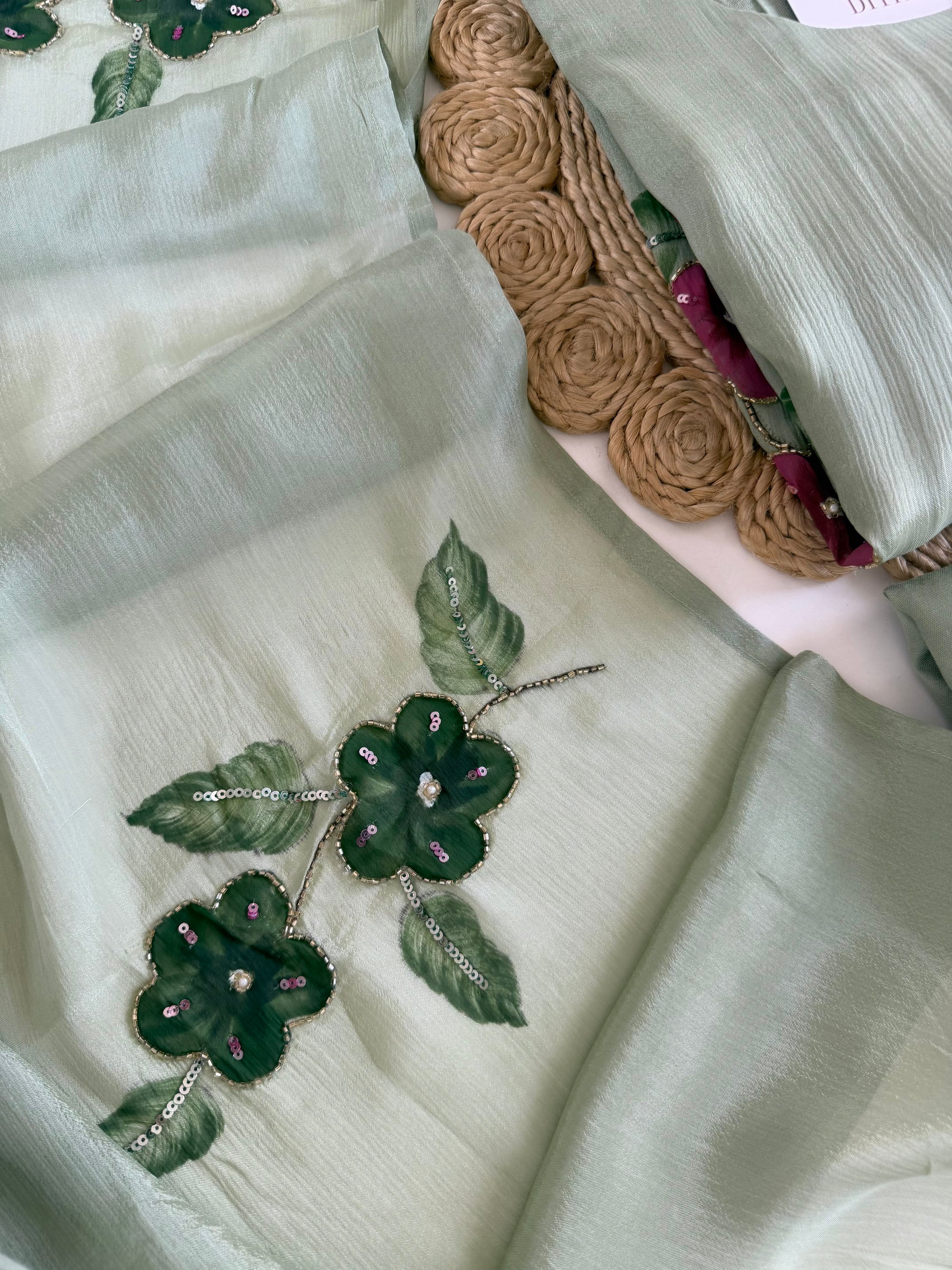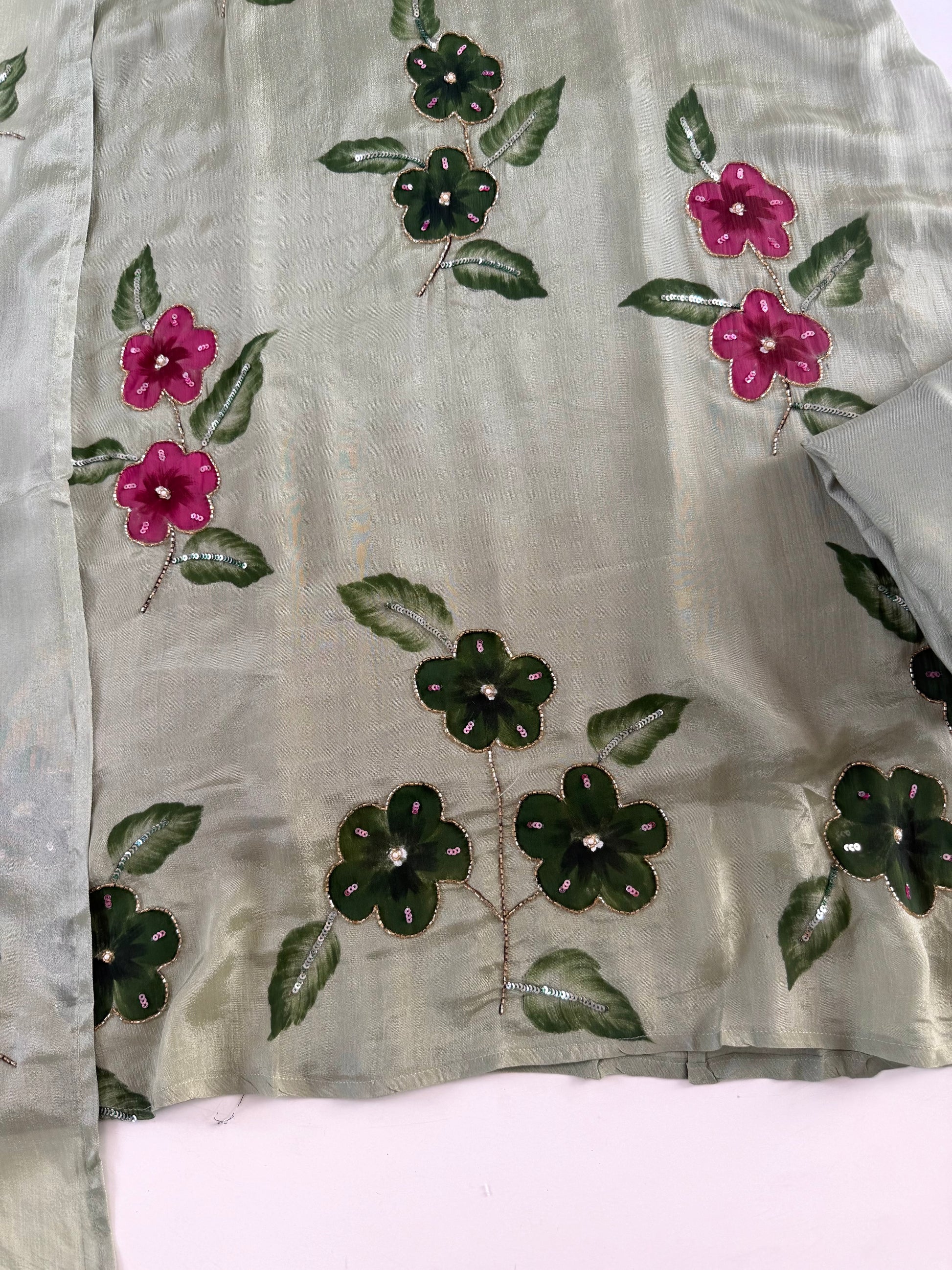 K634 - Pure Chinnon handwork Aline Kurti with pants and dupatta