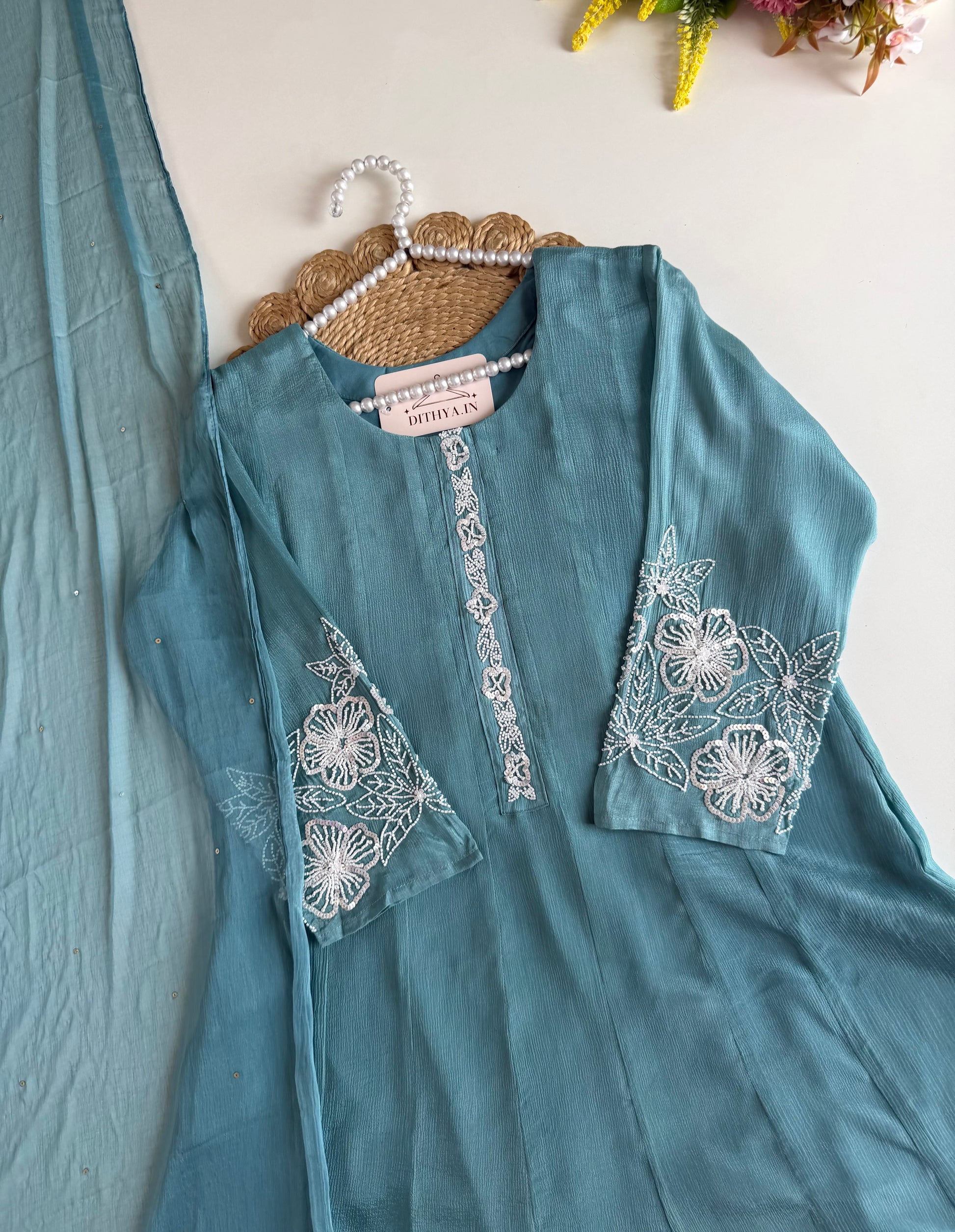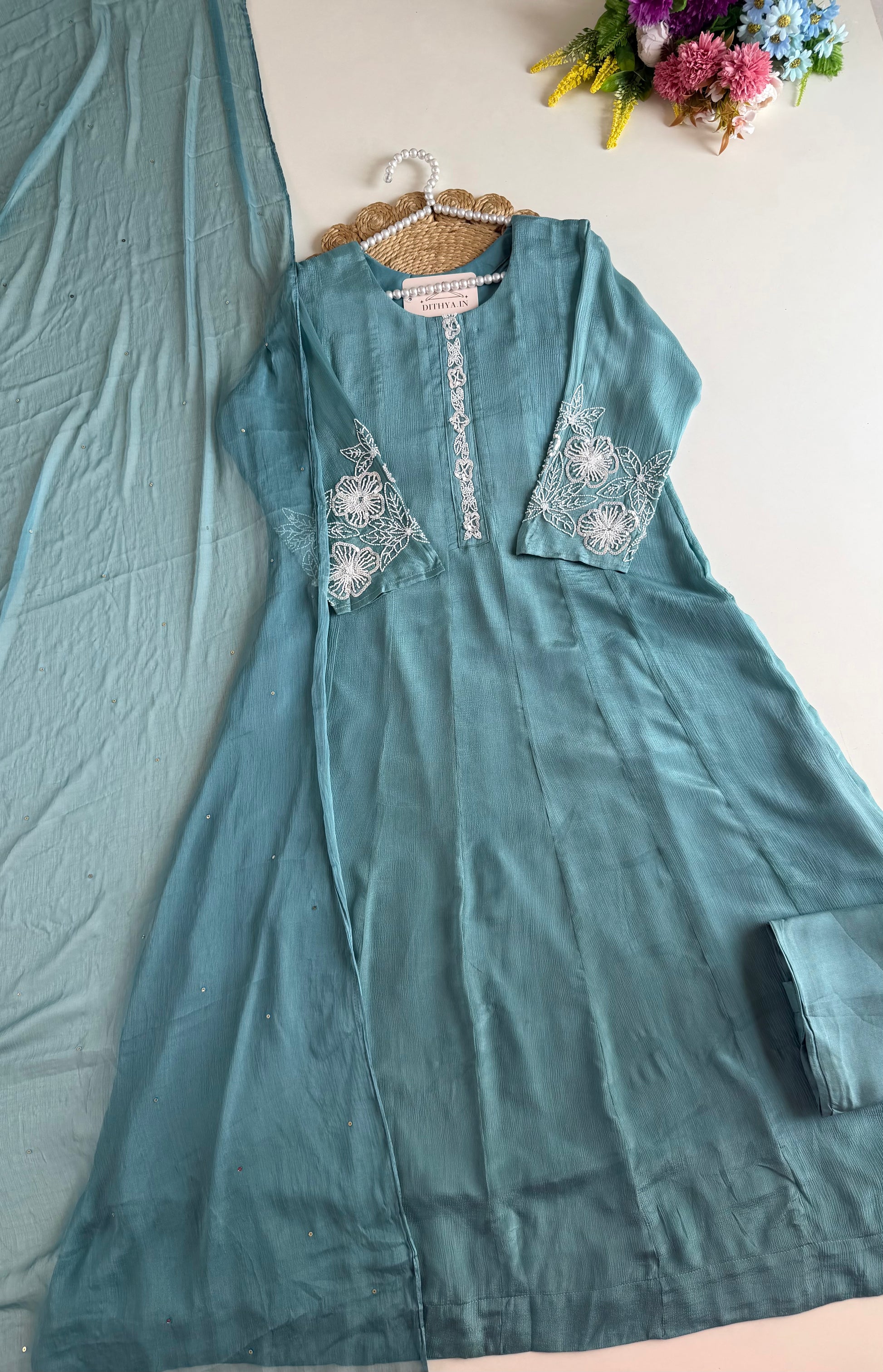 K007 - Pure Chinnon handwork Anarkali with pants and dupatta