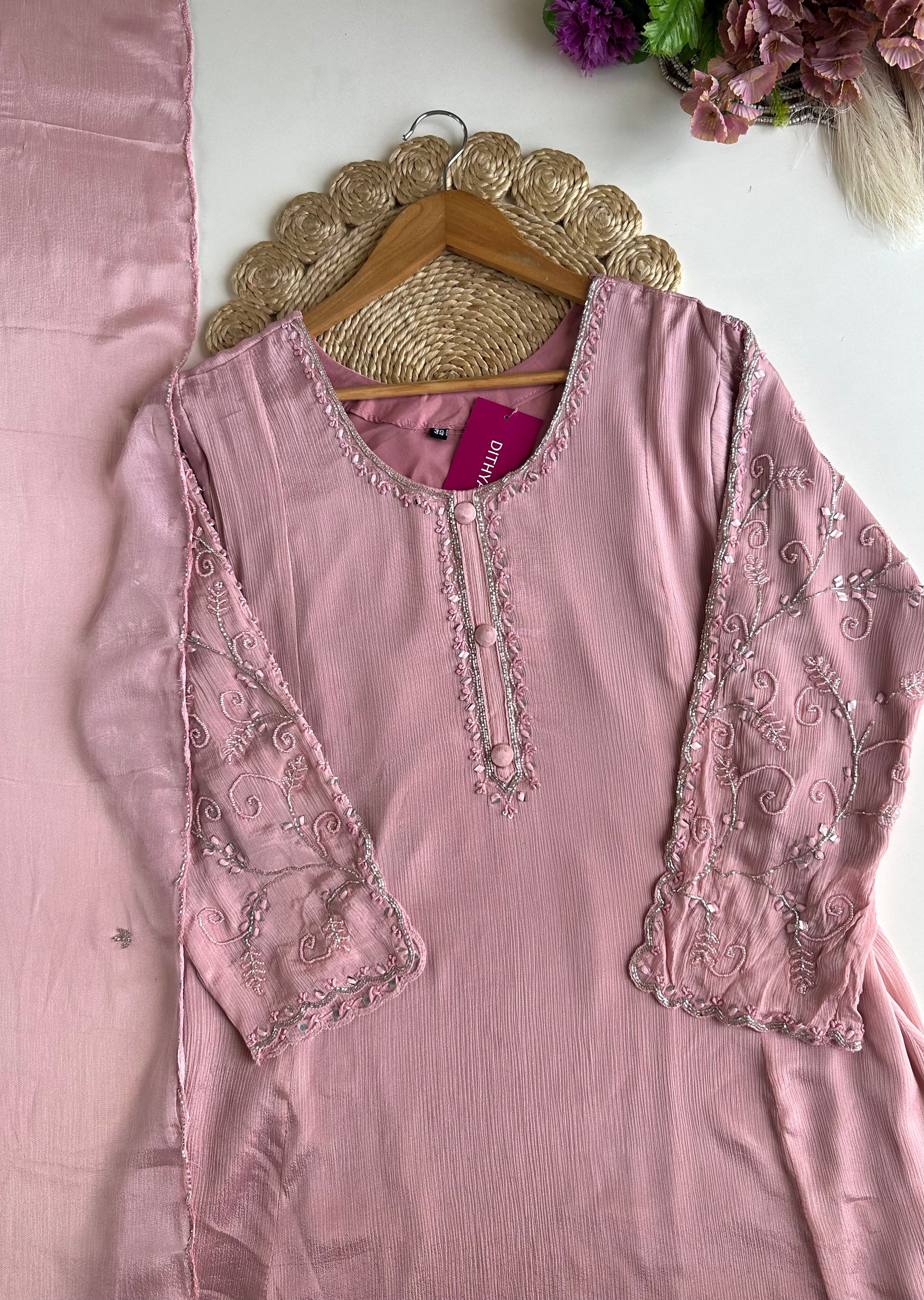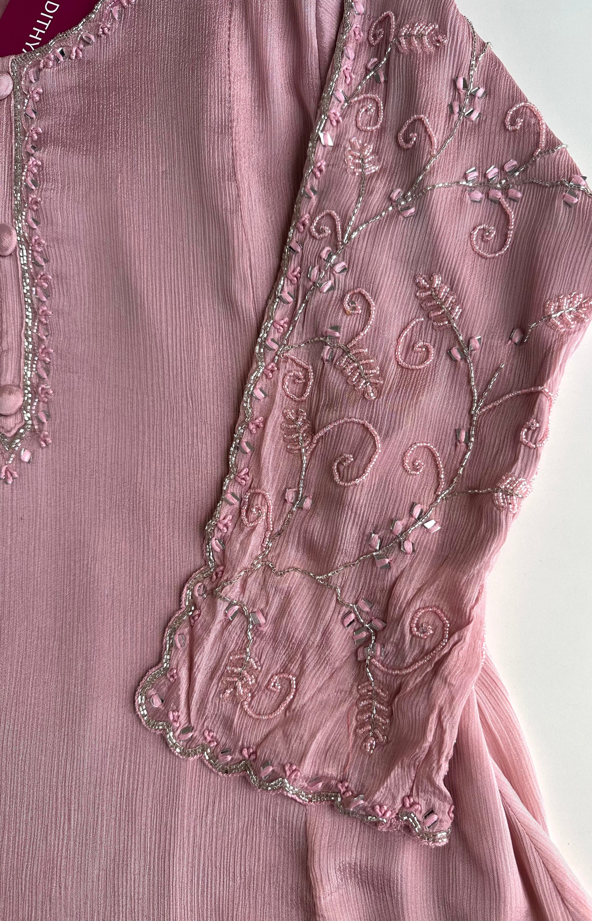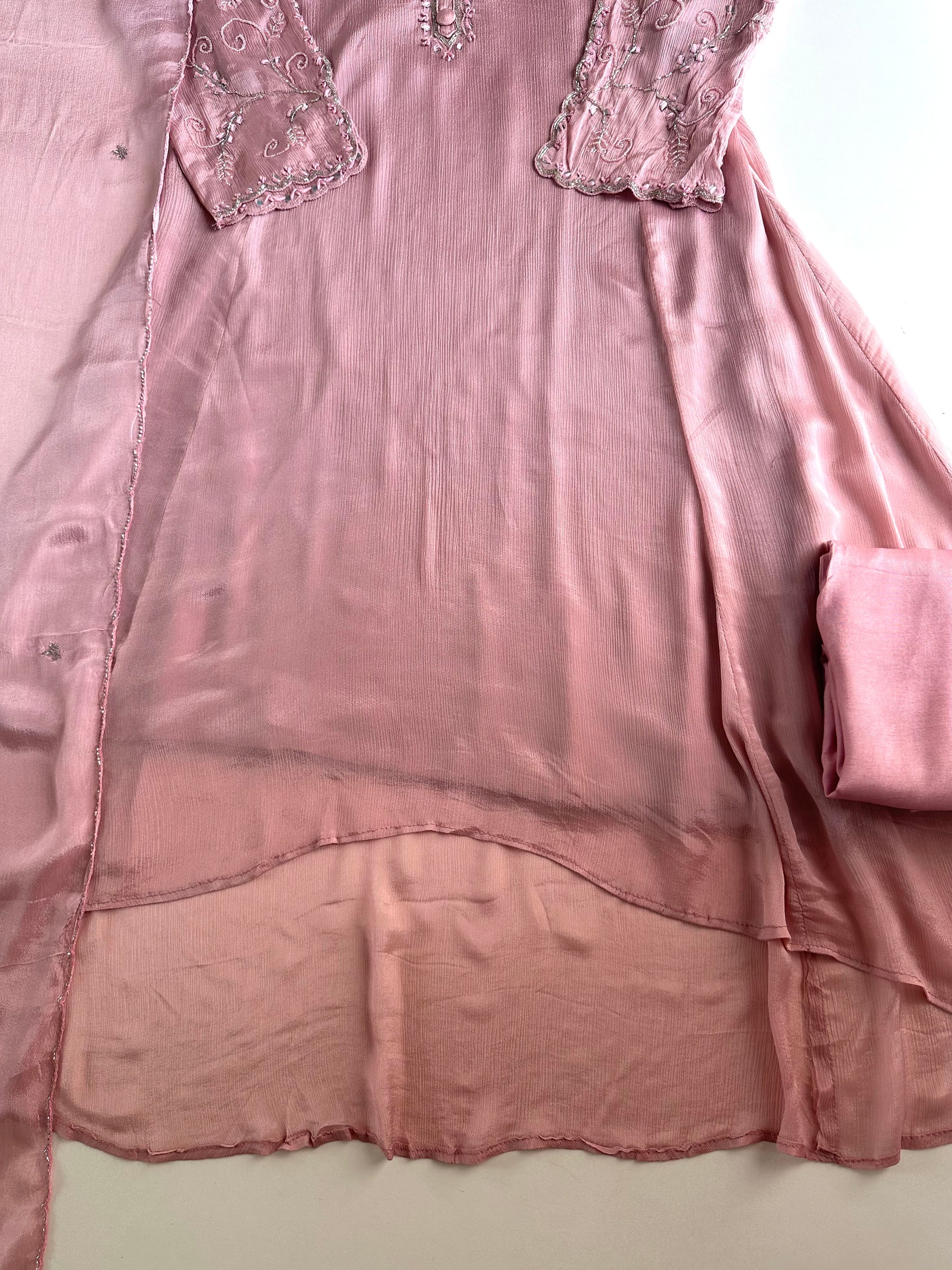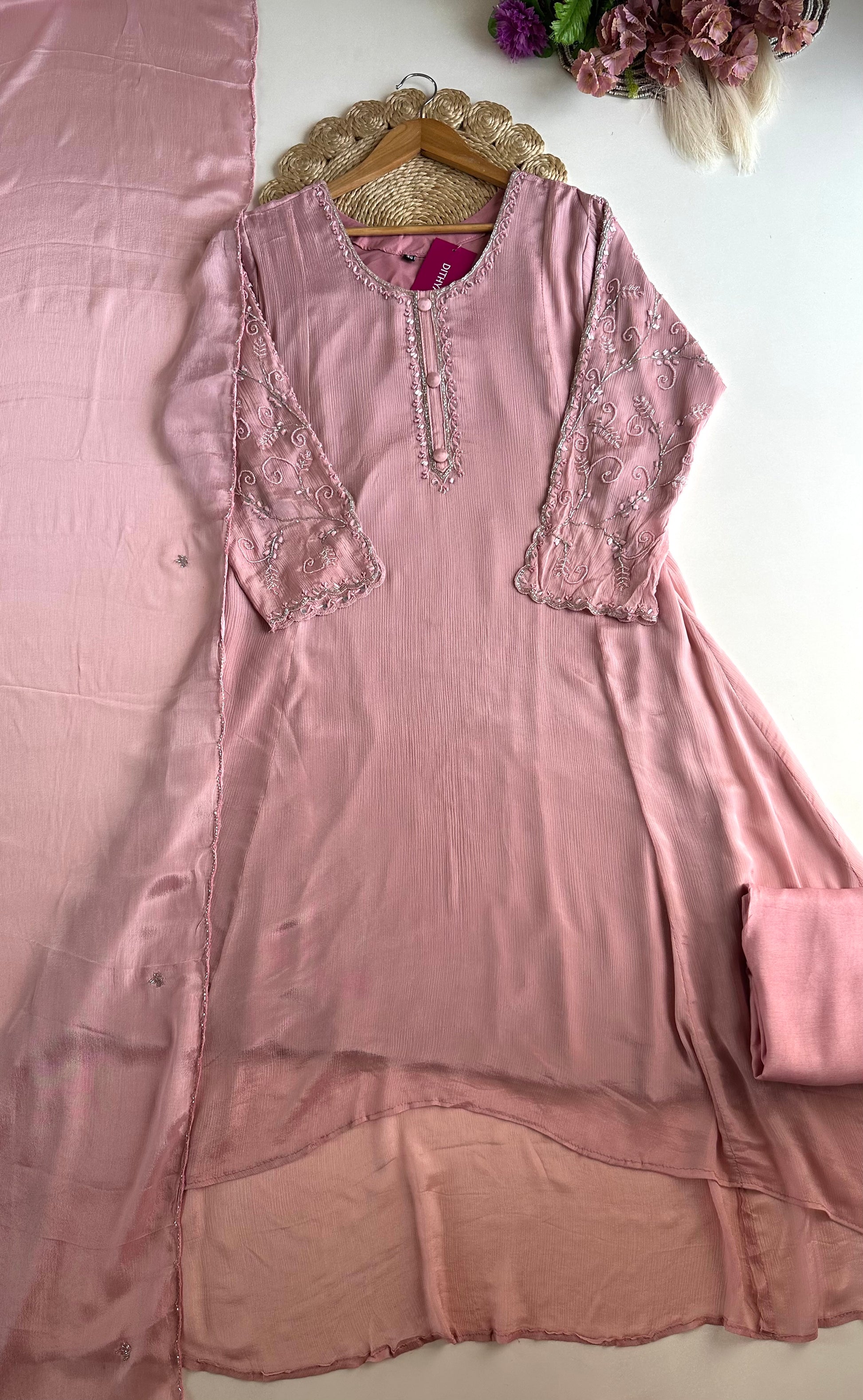 K415 - Pure chinnon handwork Anarkali with pants and dupatta