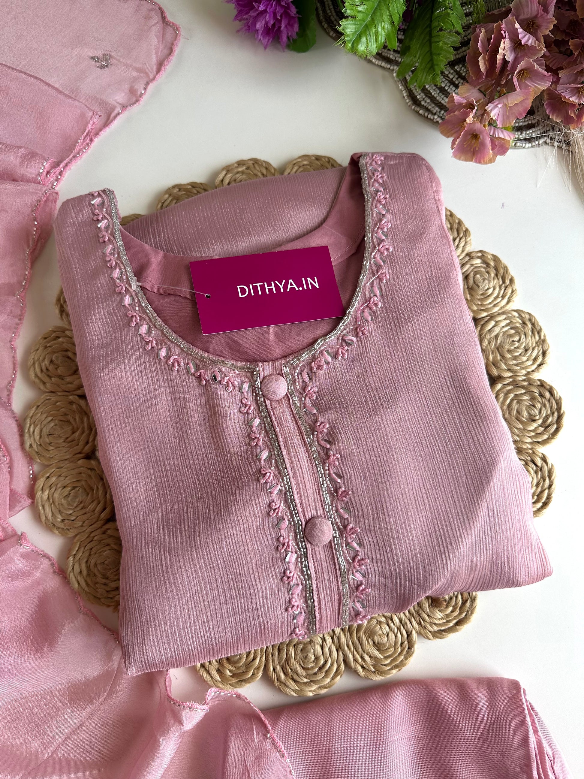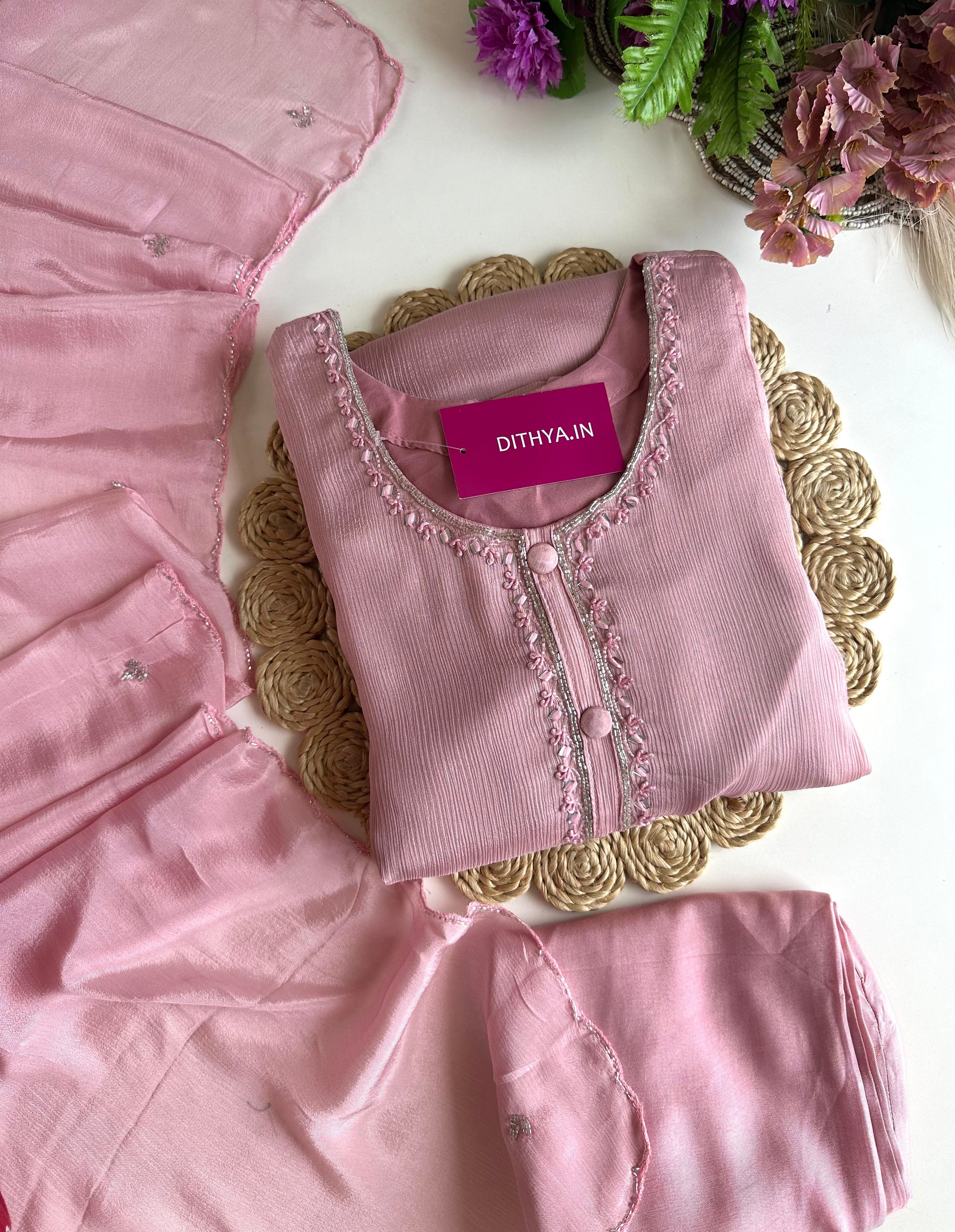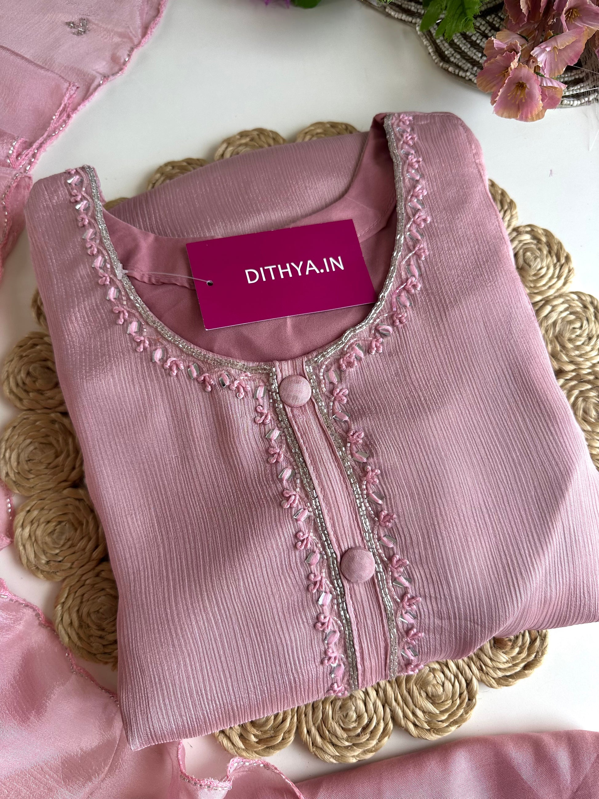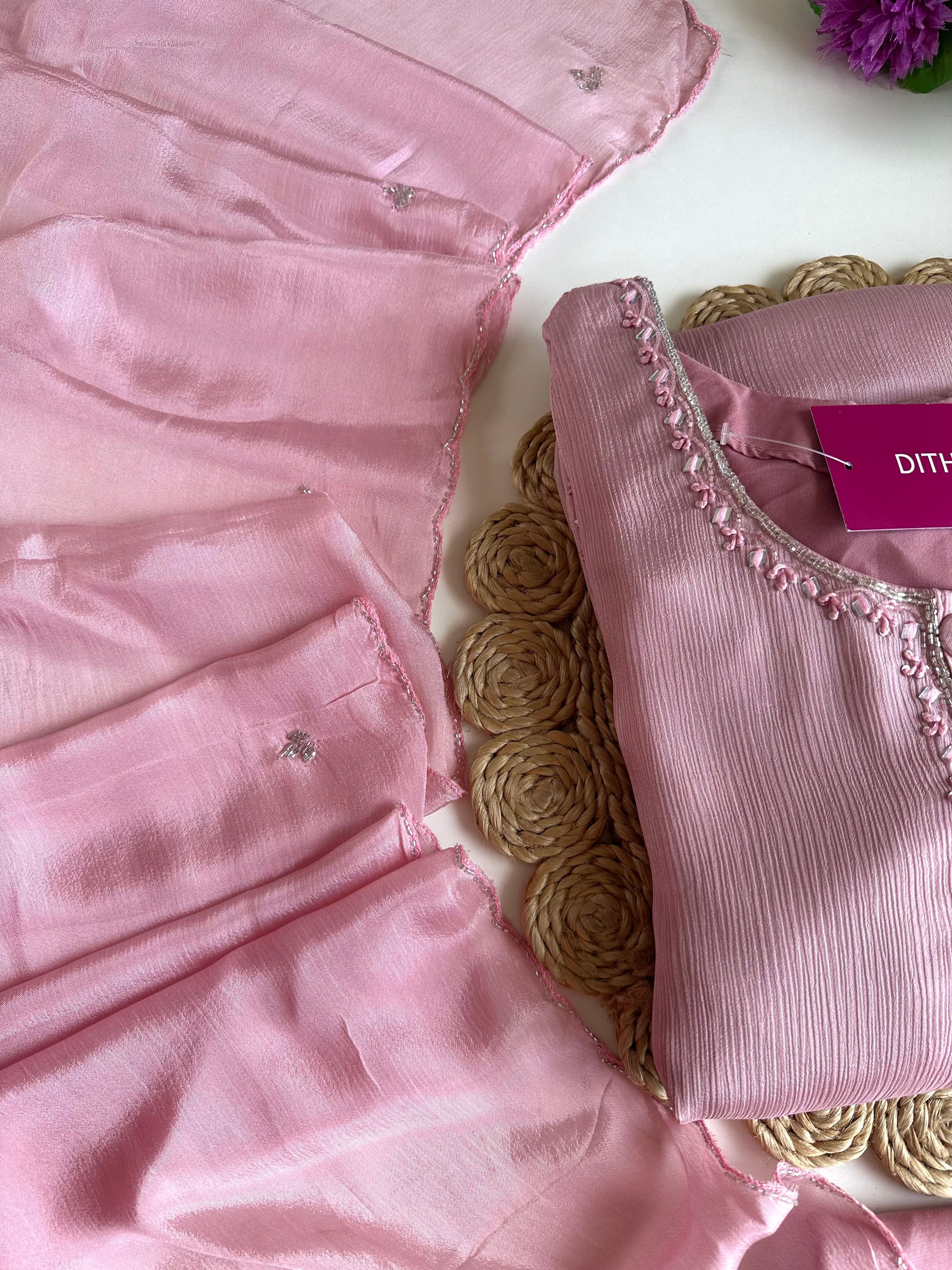 K415 - Pure chinnon handwork Anarkali with pants and dupatta