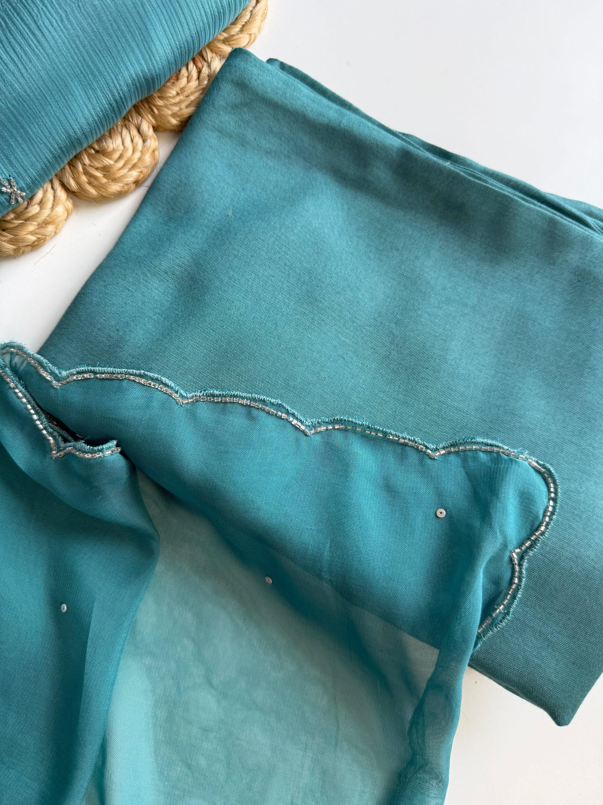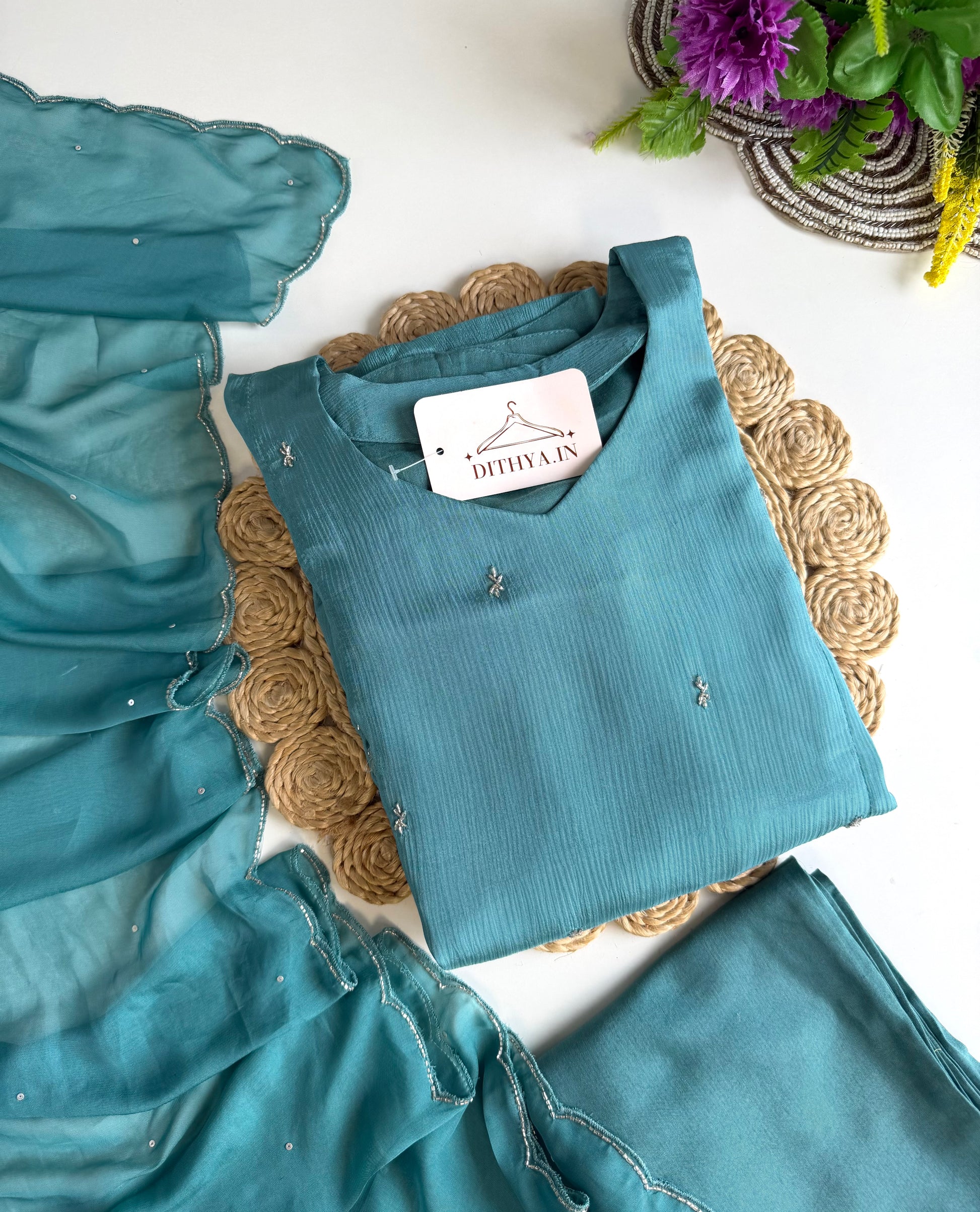 K214-Pure Chinnon Handwork Anarkali with pants and dupatta