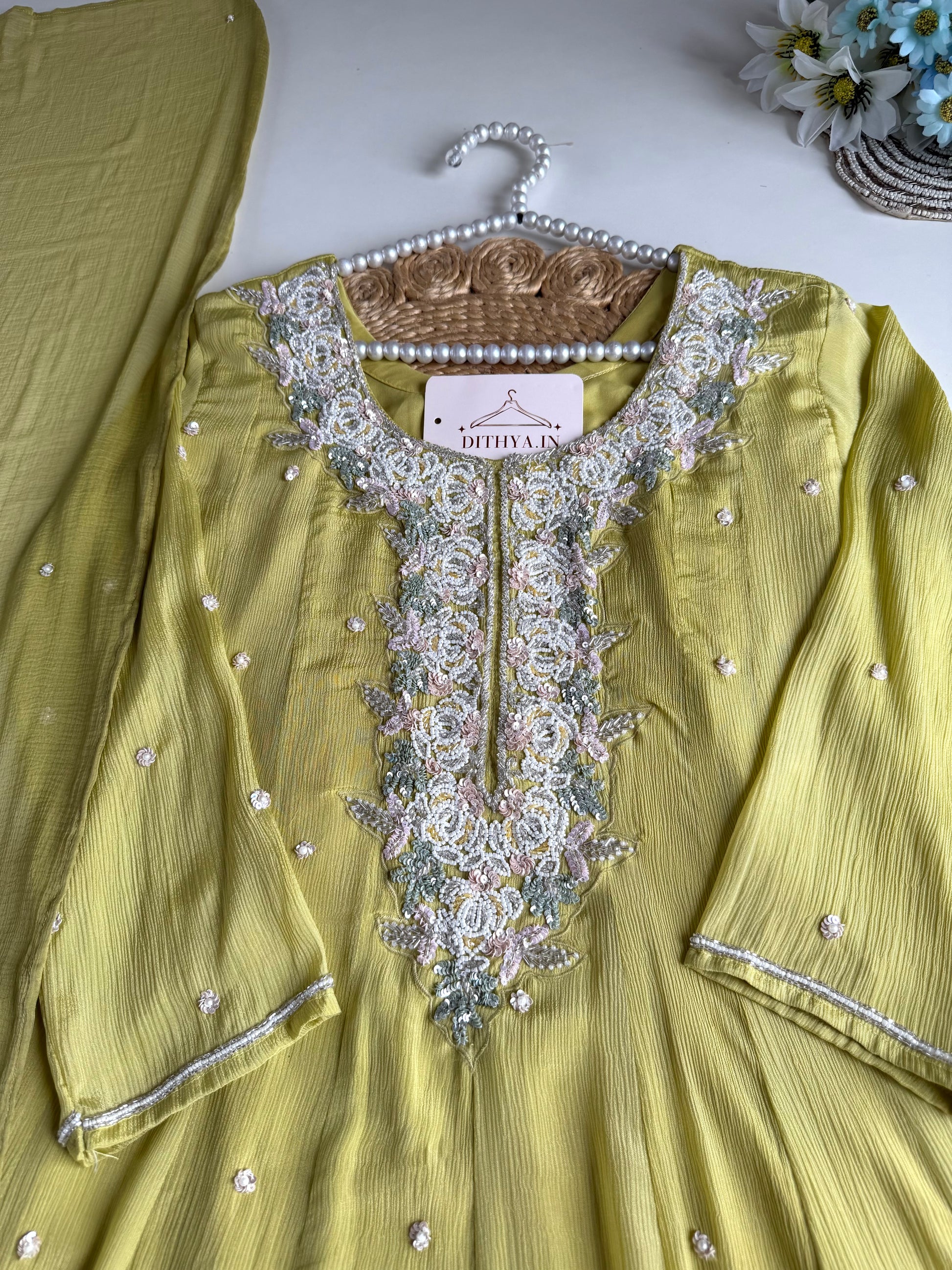 K620 - Pure Chinnon handwork Anarkali with pants and dupatta