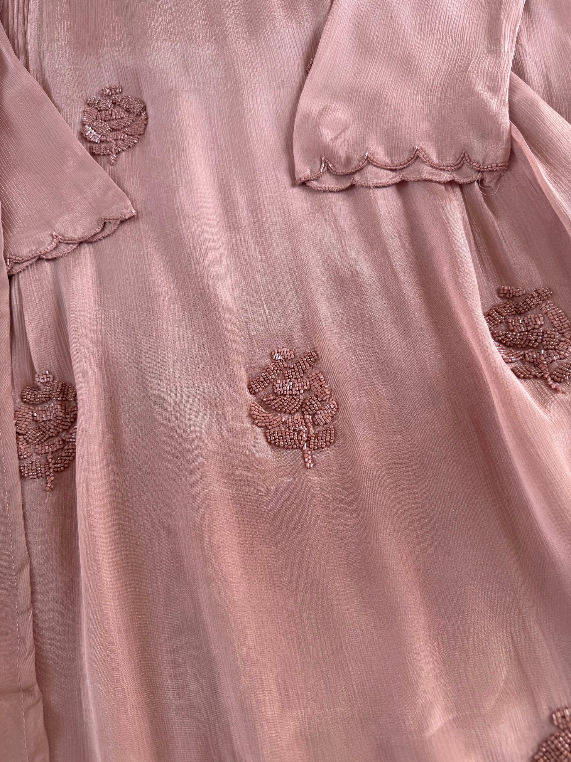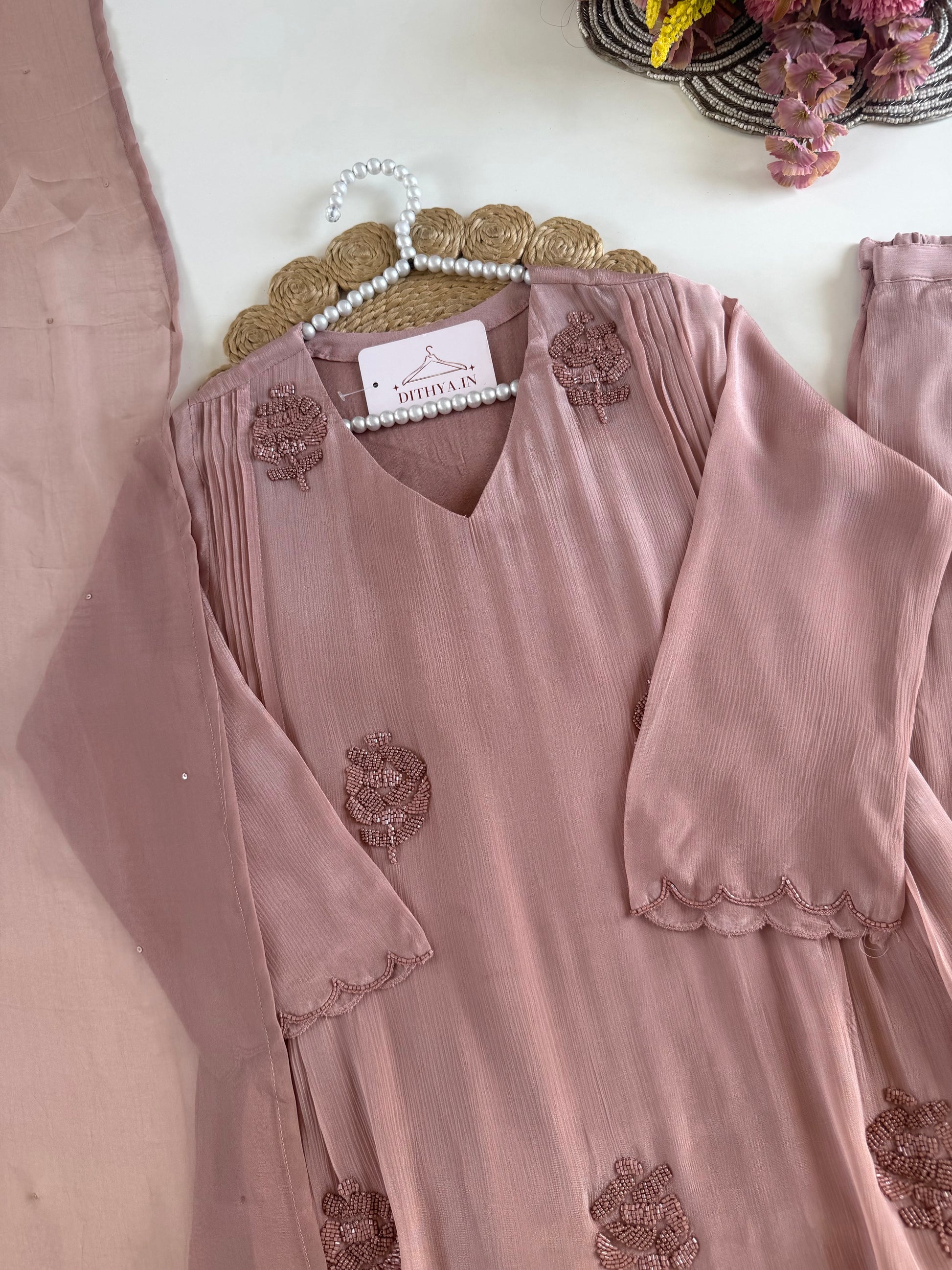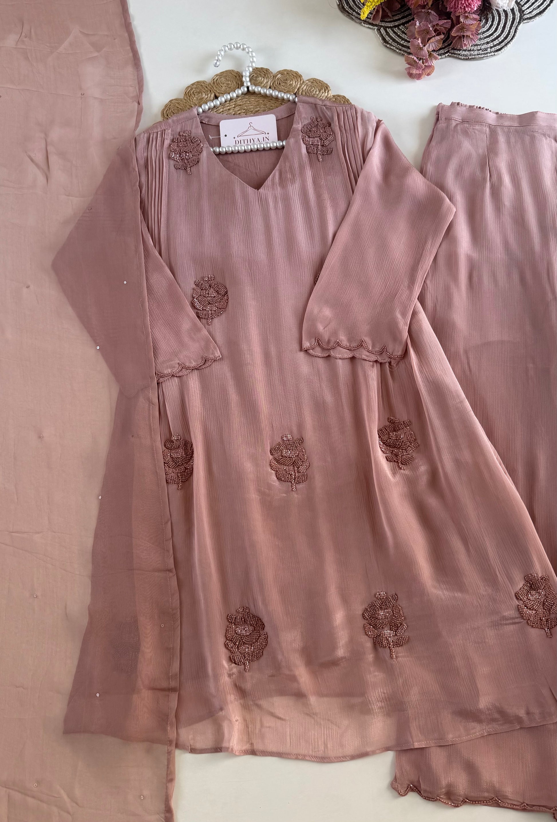 K104 - Pure Chinnon handwork short Kurti with divider pants and dupatta