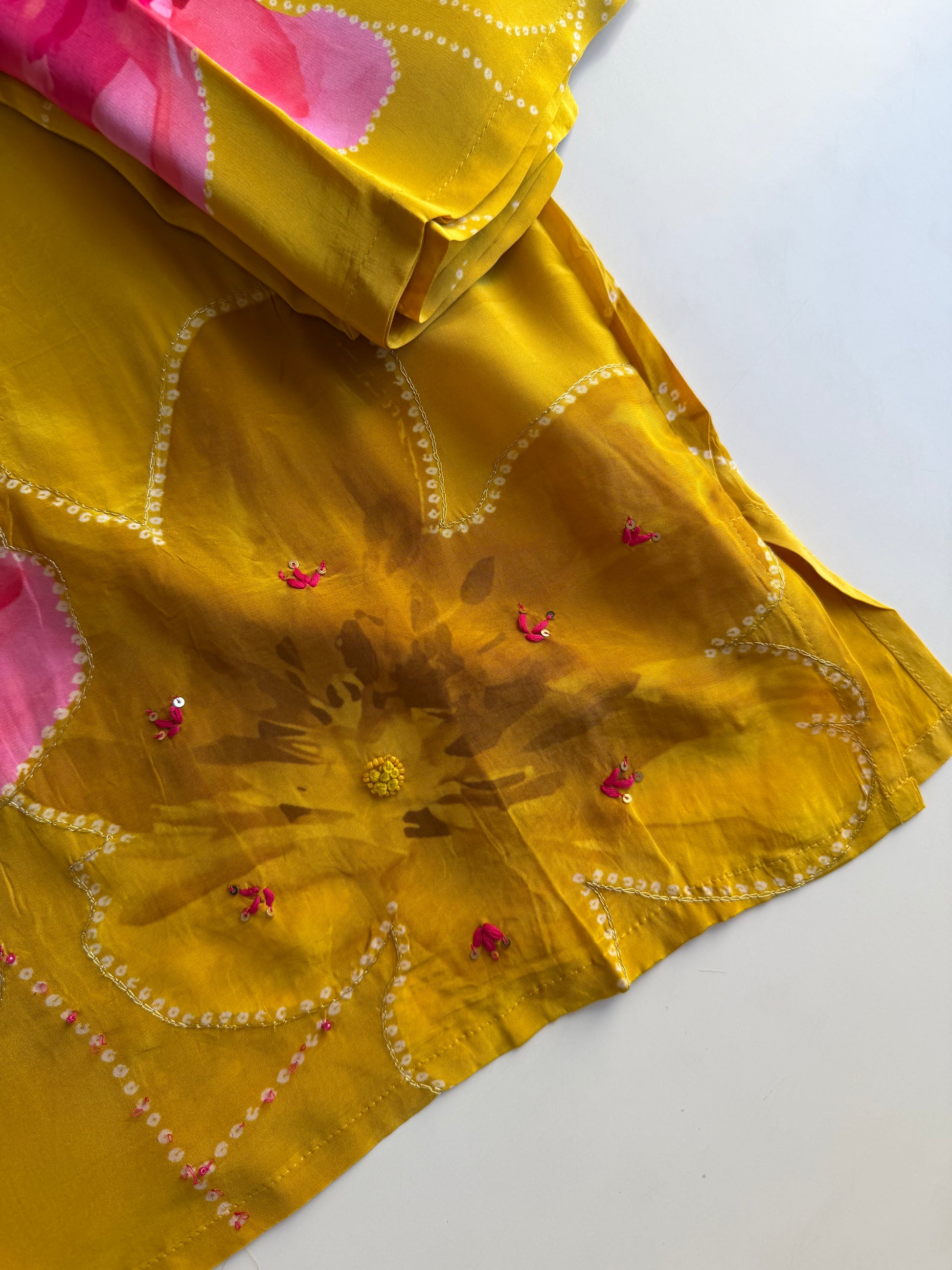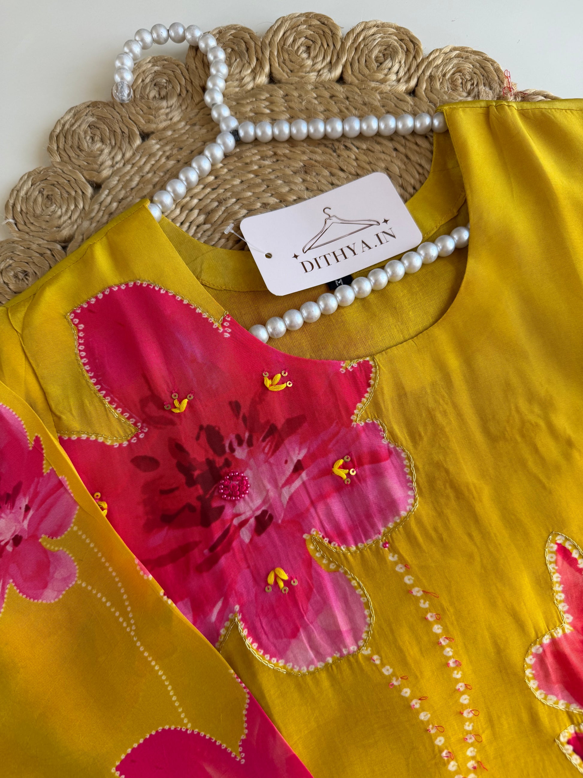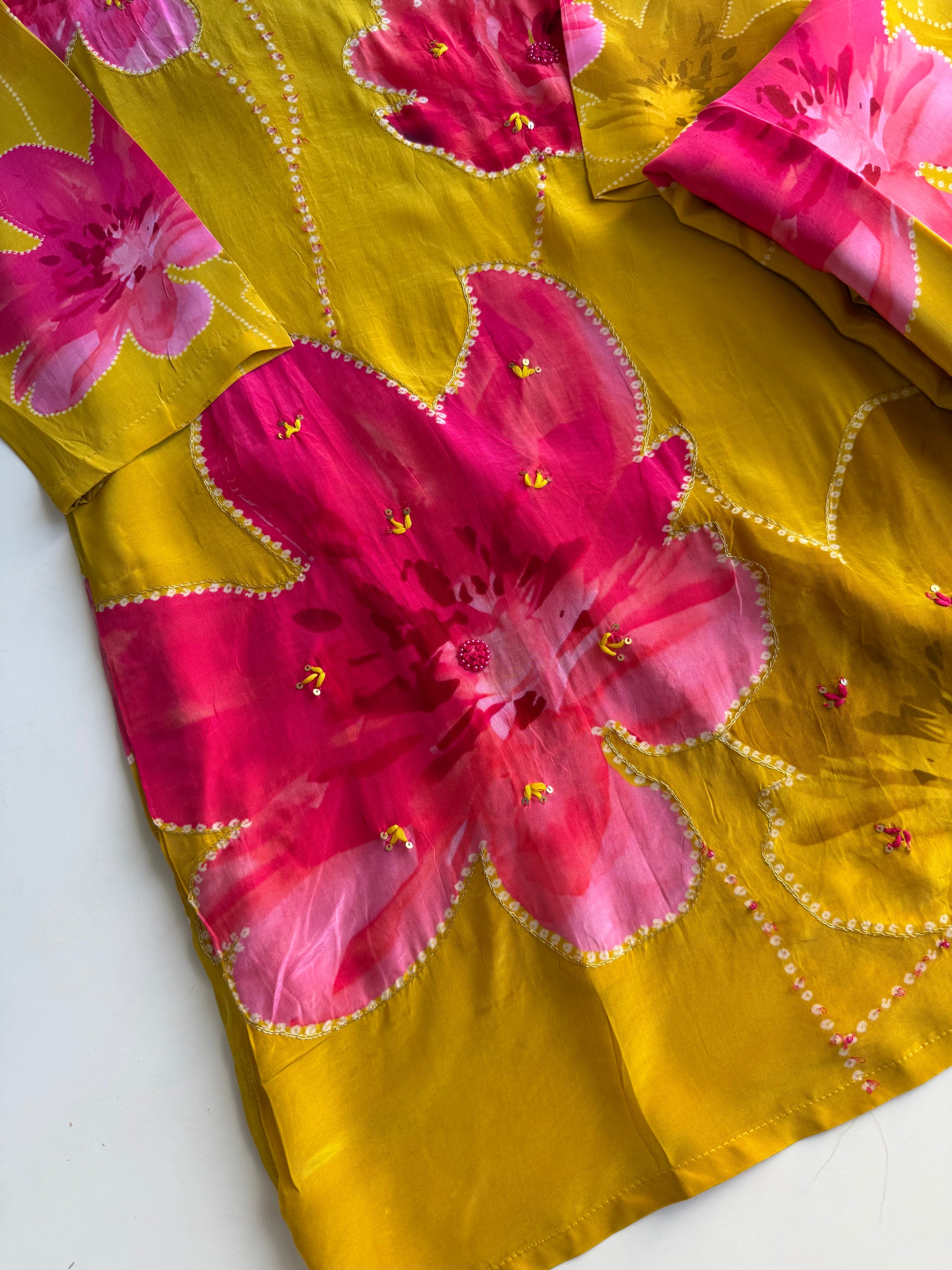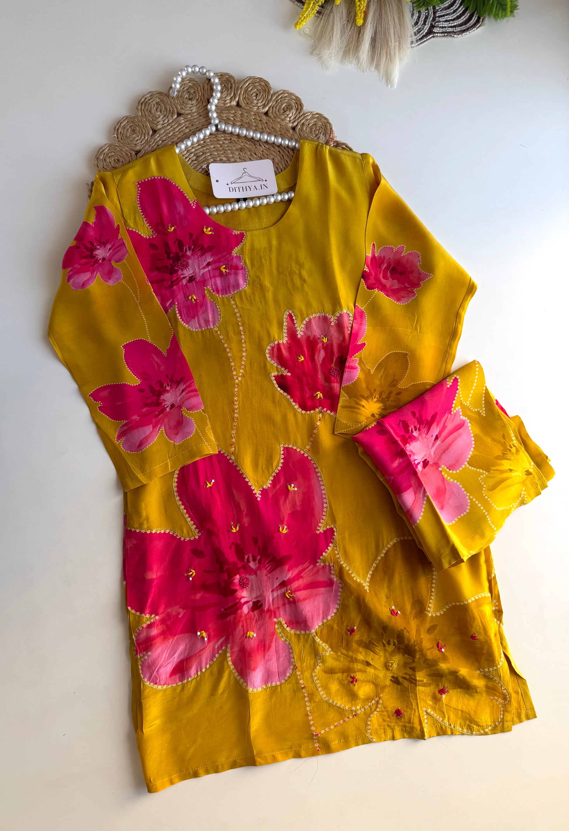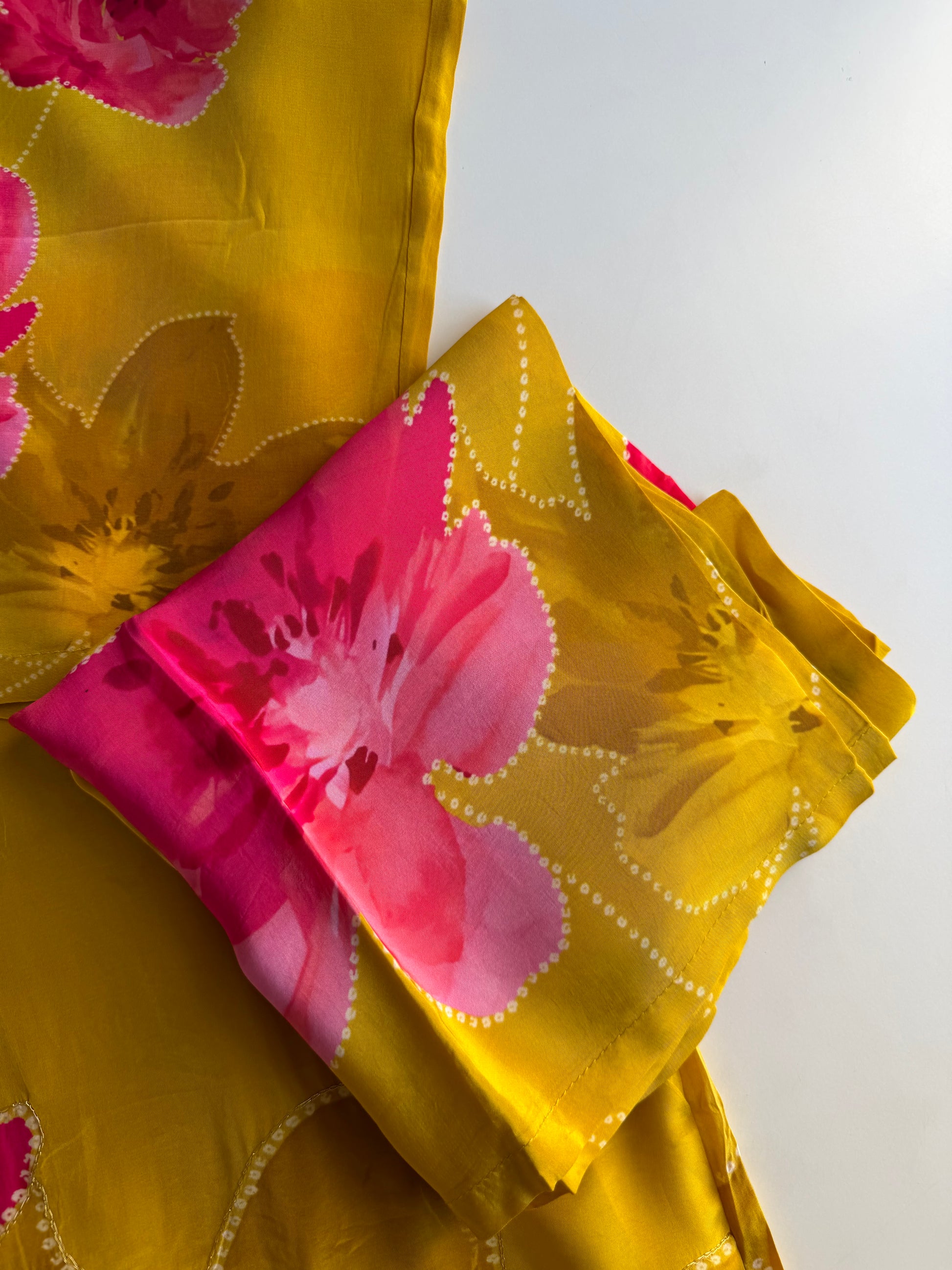 This Pure Crape Floral Coord Set is perfect for adding a touch of elegance and femininity to your wardrobe. Made from high-quality pure crape fabric, this set features a delicate floral print that adds a soft and feminine touch. With a coordinated top and bottom, it's easy to create a complete and stylish look. Elevate your outfits with this beautiful and versatile coord set.