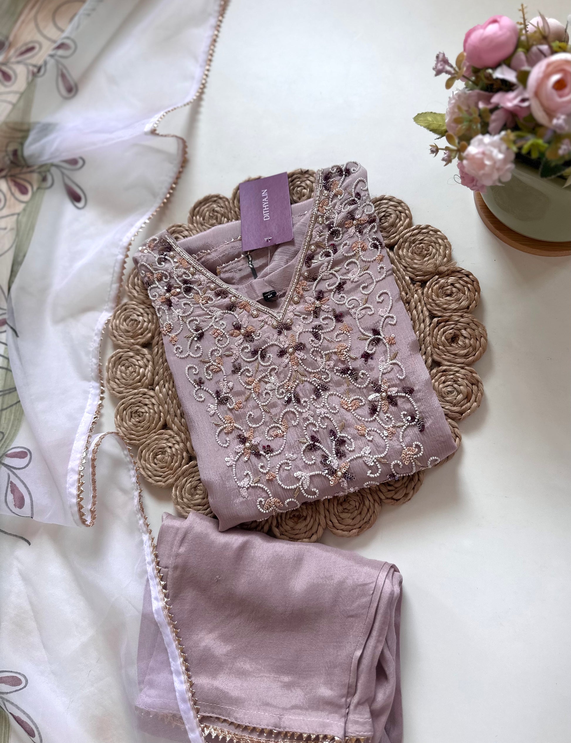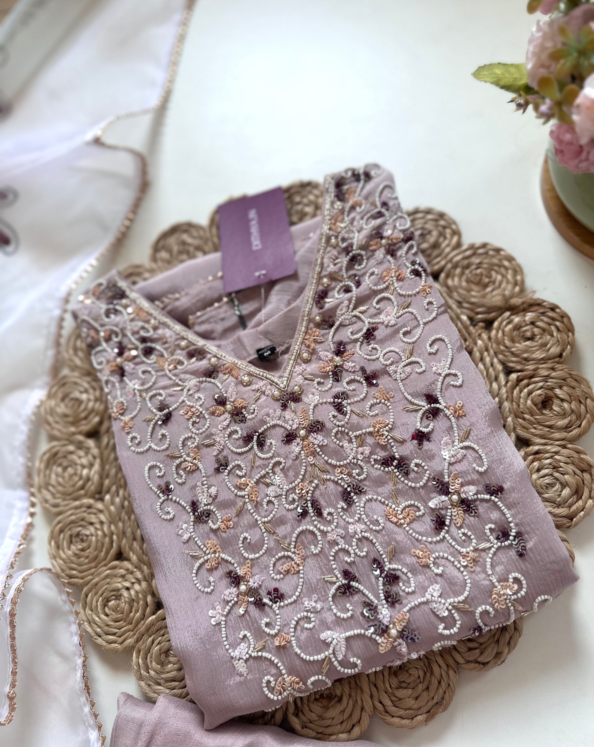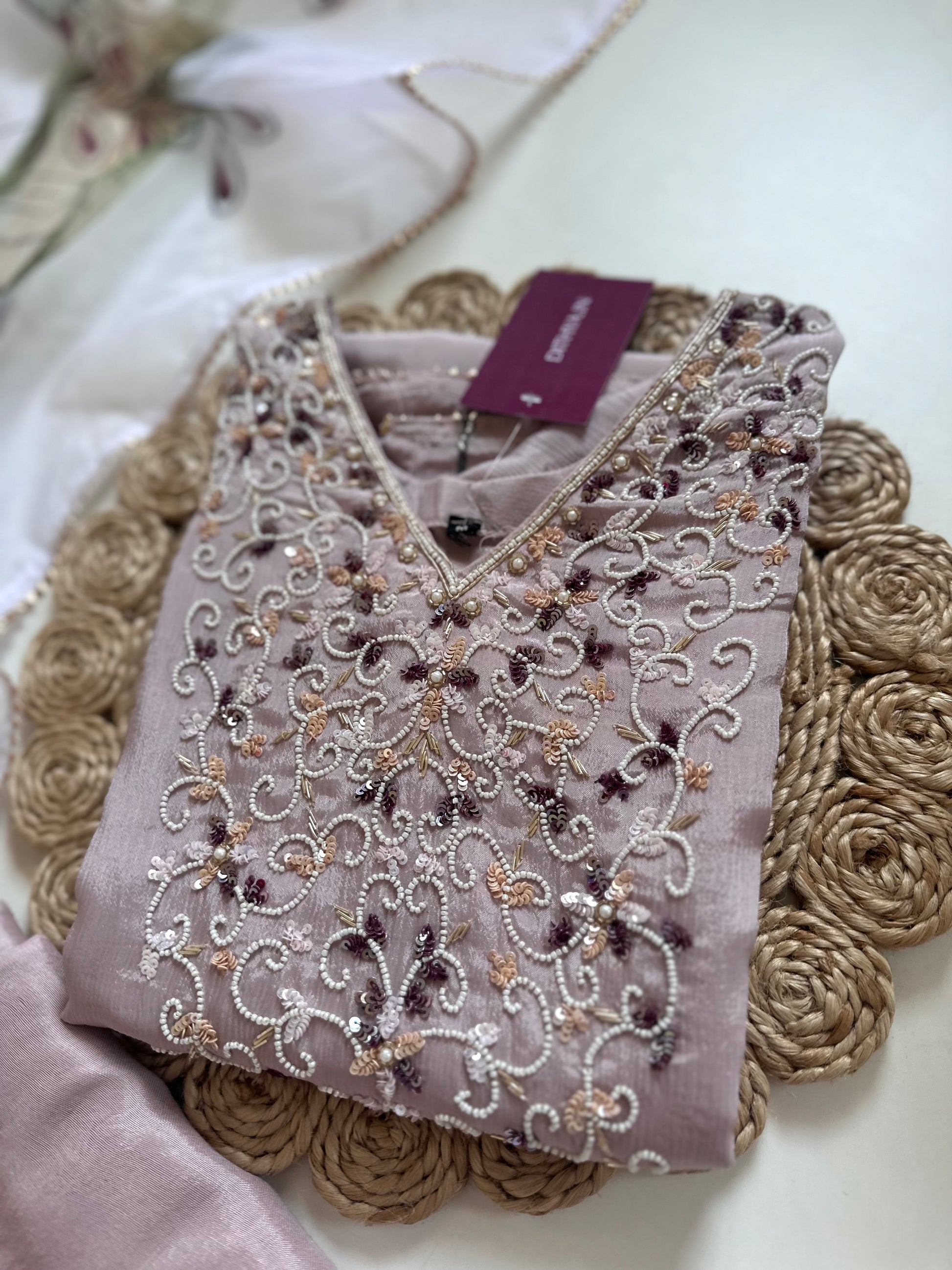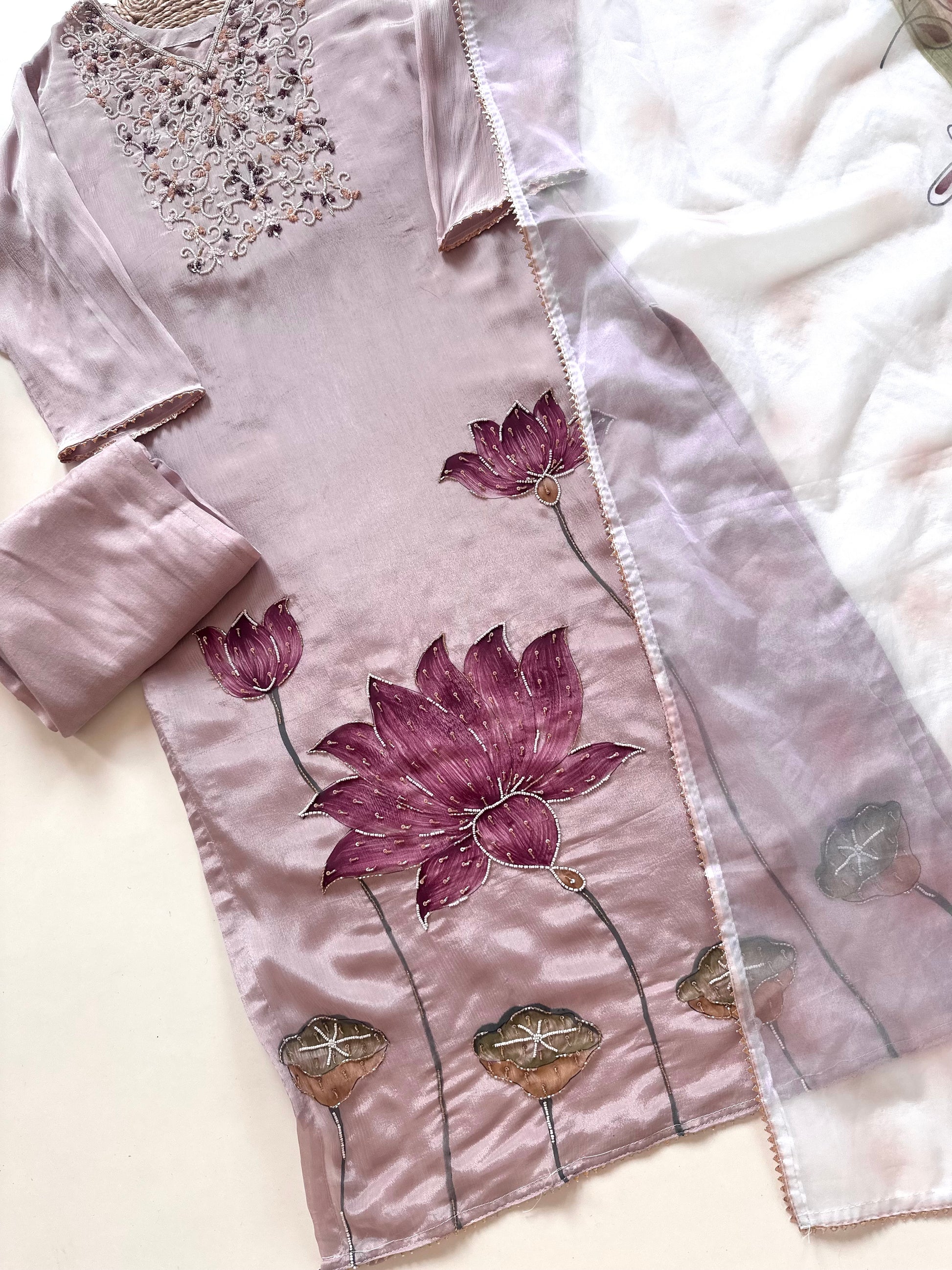 K429 - Pure crape handwork straight Kurti with pants and dupatta