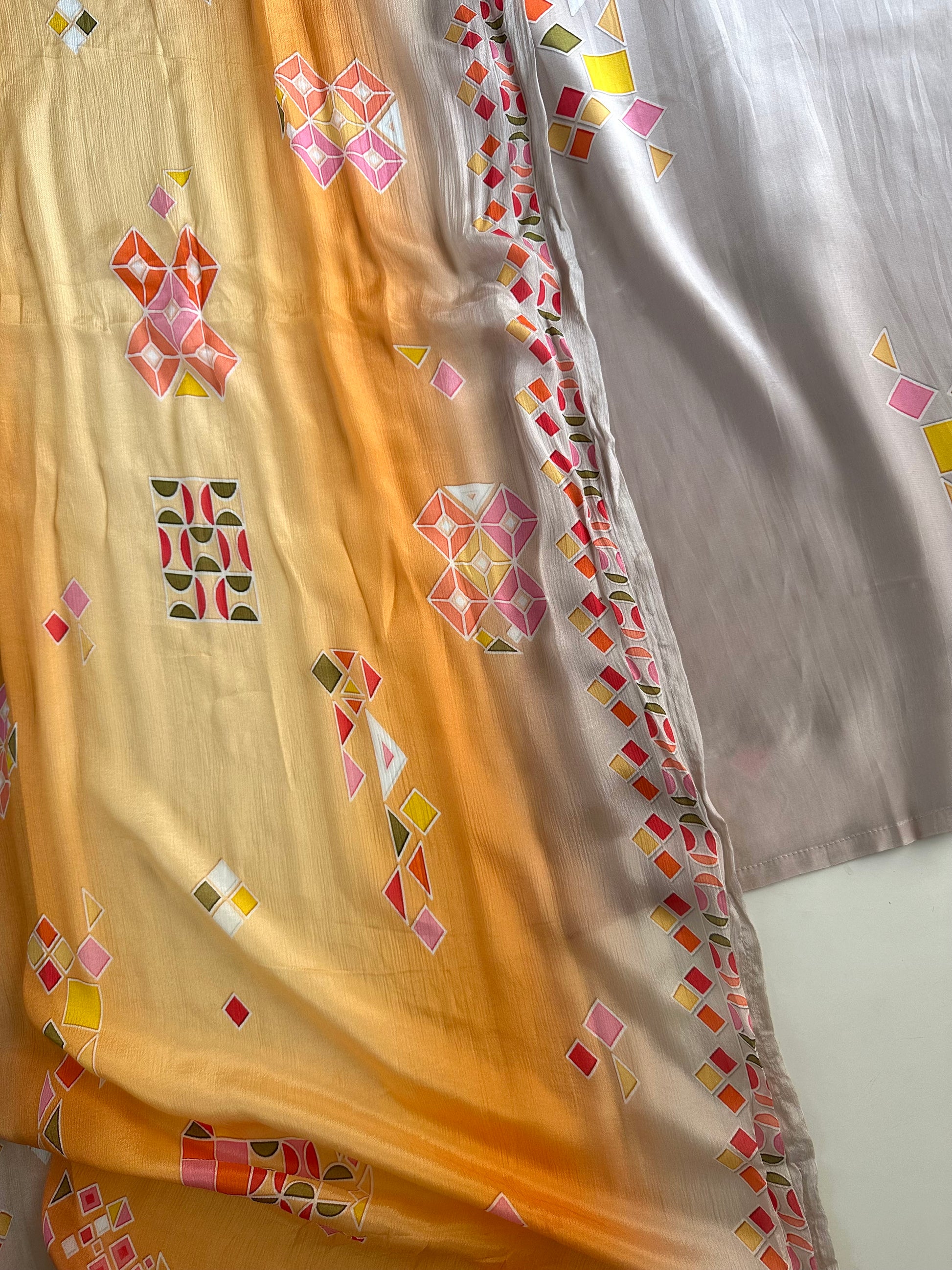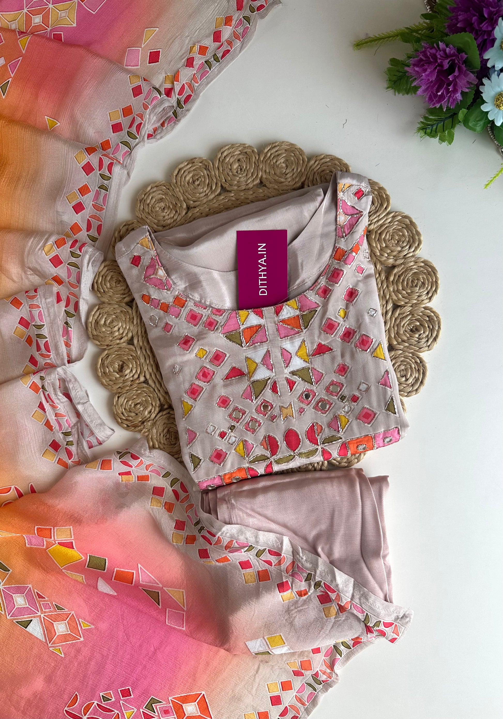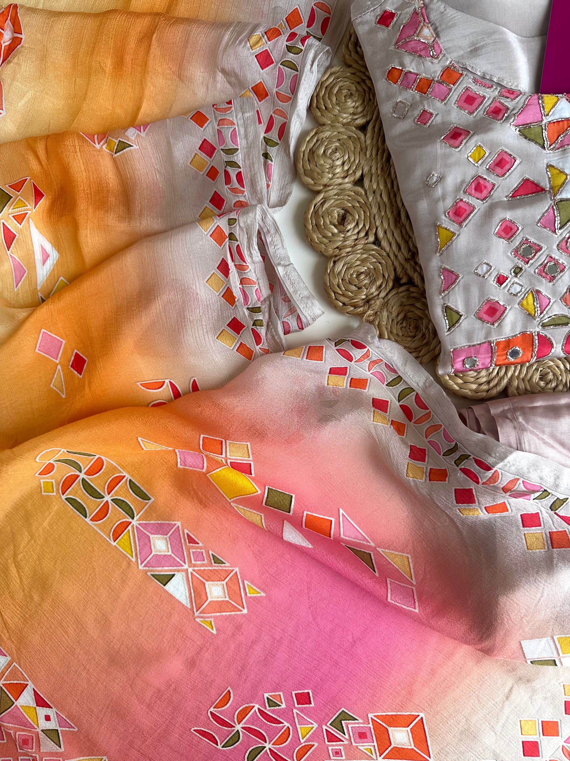 K132 - Pure crape handwork straight Kurti with pants and dupatta