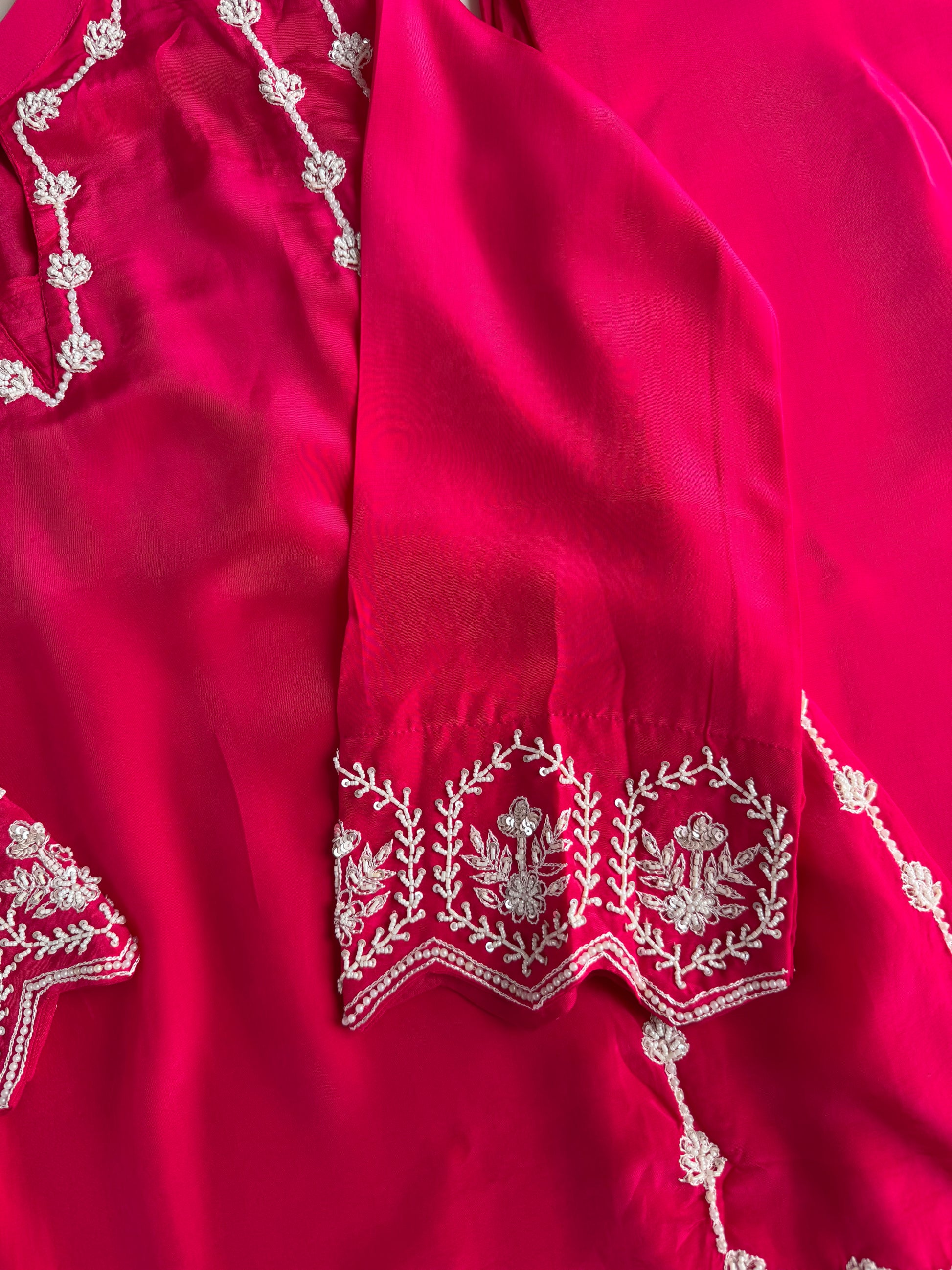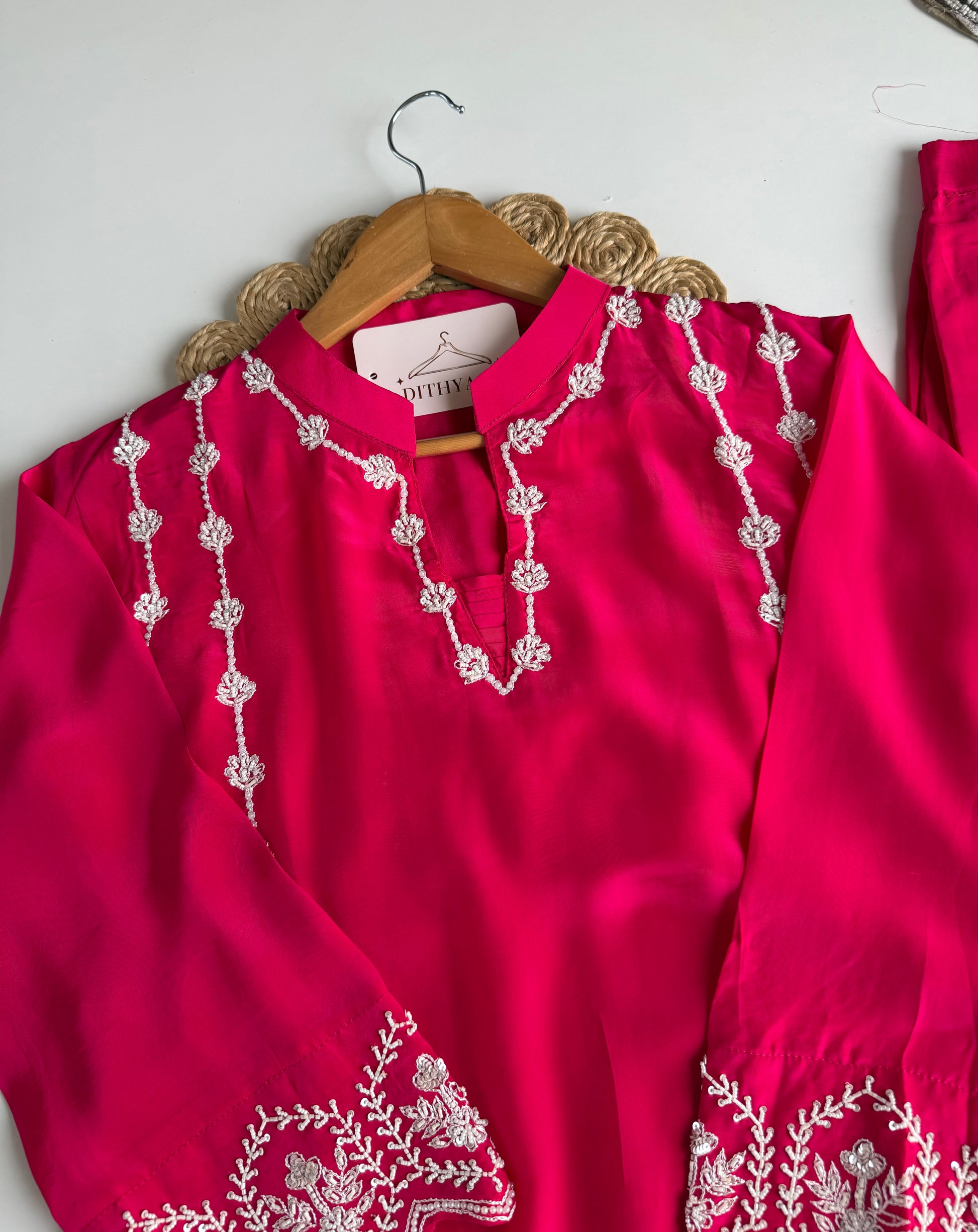 Enhance your style with the Pure Crape Pearl Work Coord Set. Made from pure crape fabric, this set features delicate pearl work, adding a touch of elegance to your look. Perfect for formal events, this set brings a timeless appeal while providing the utmost comfort.