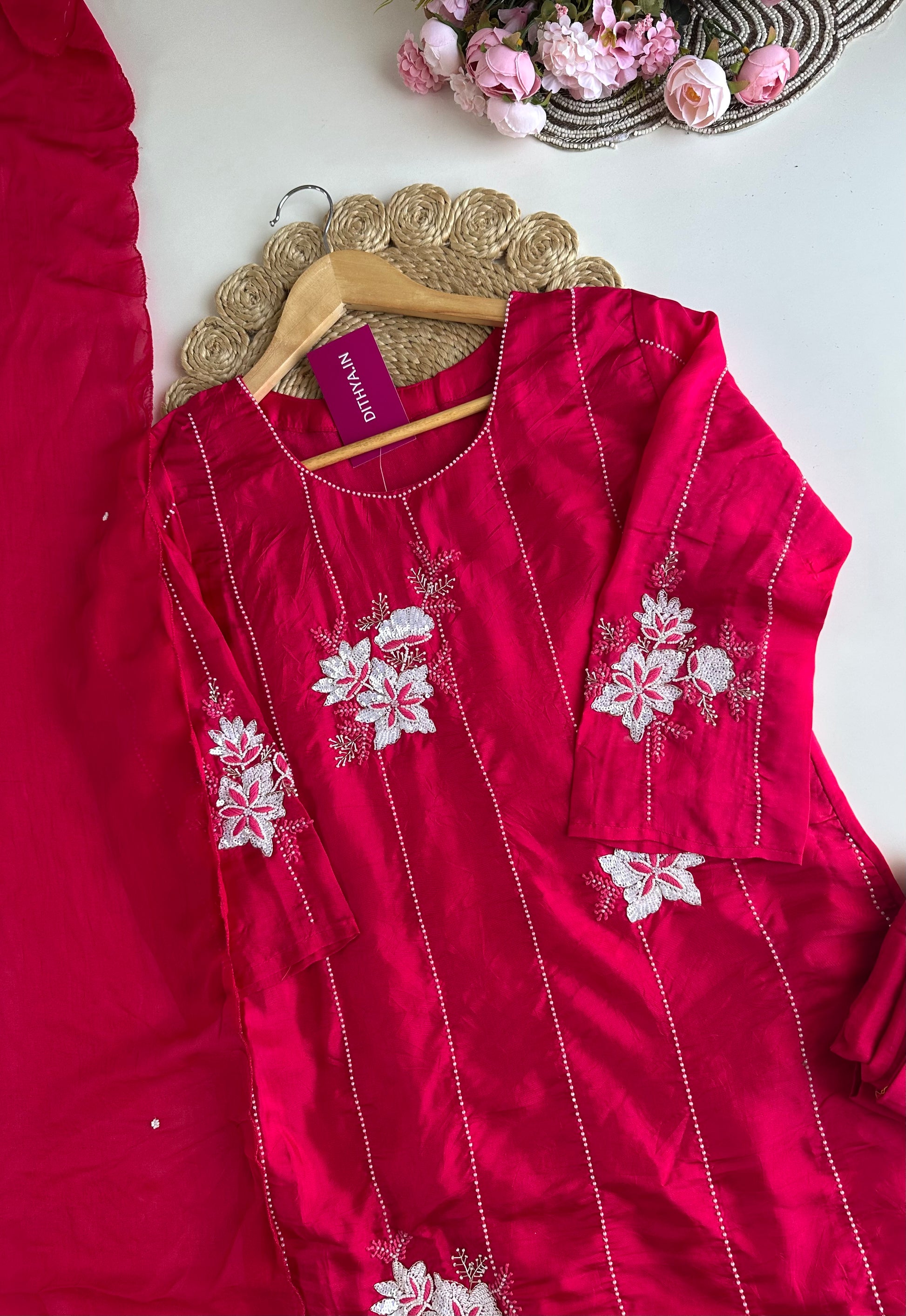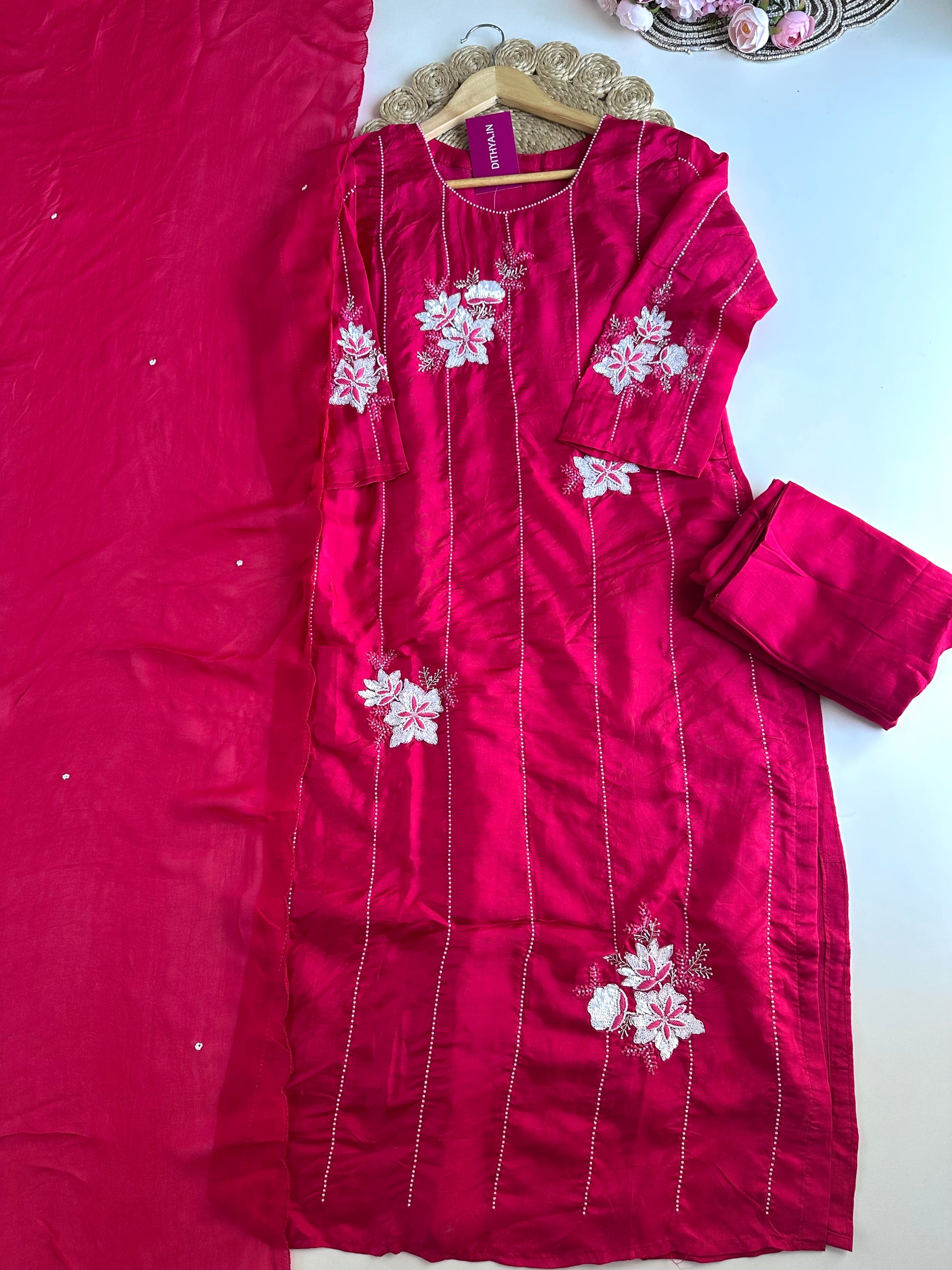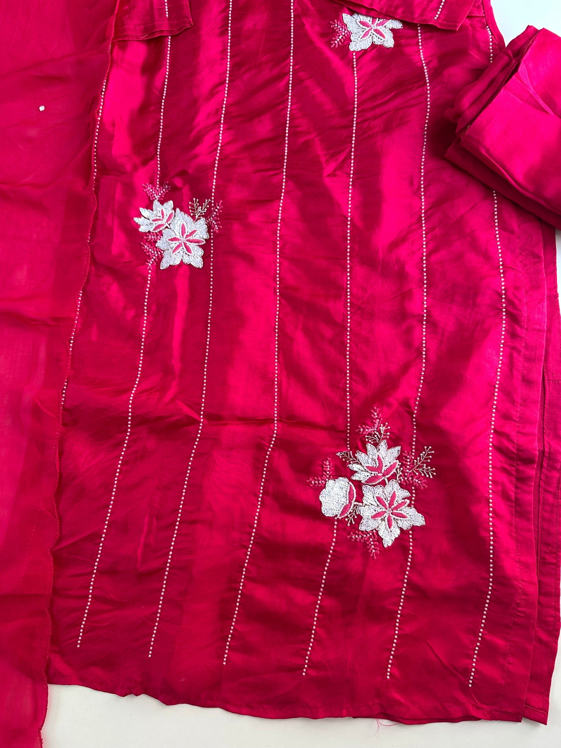 K253 - Pure crape pearl work straight Kurti with pants and dupatta