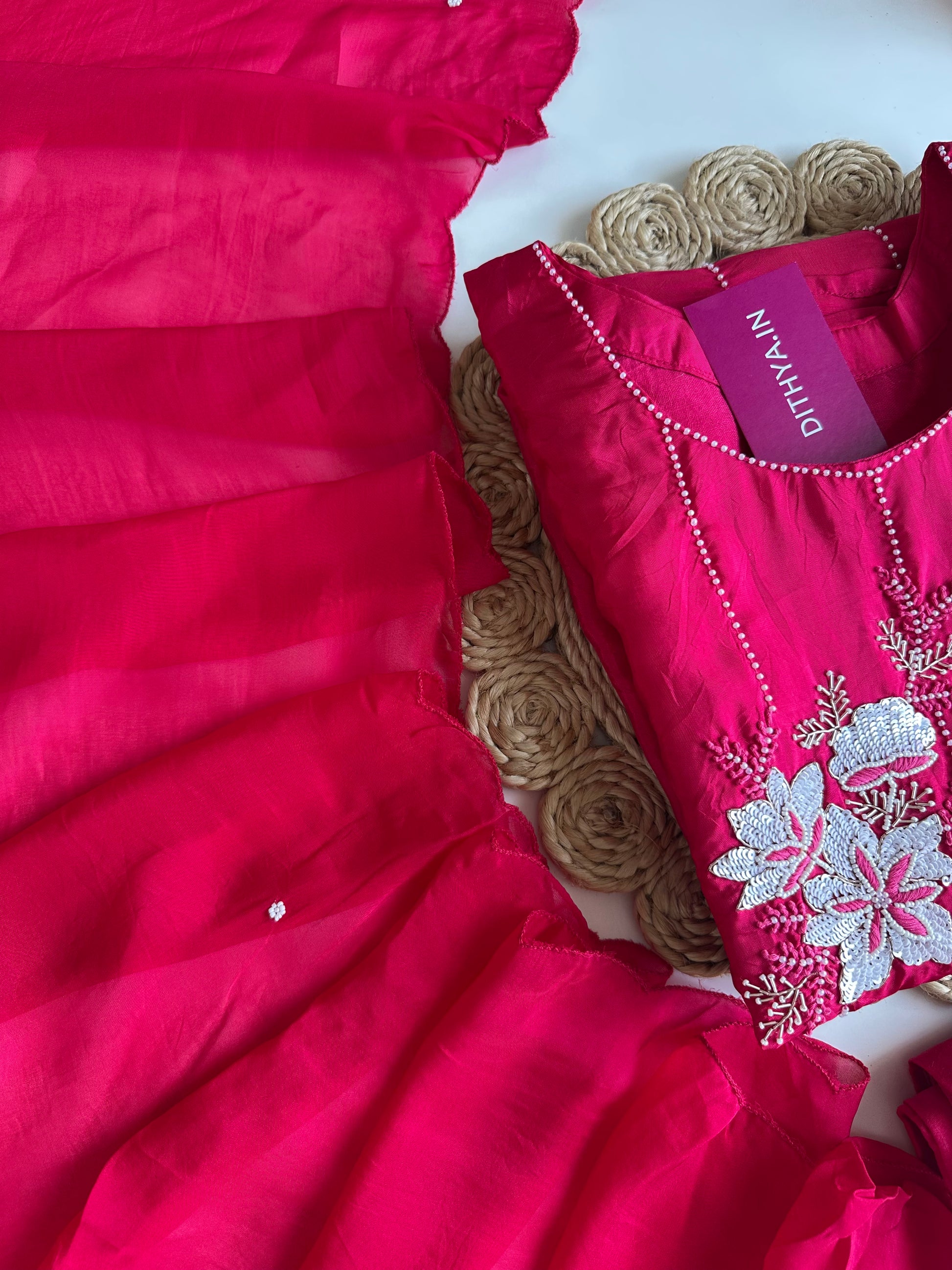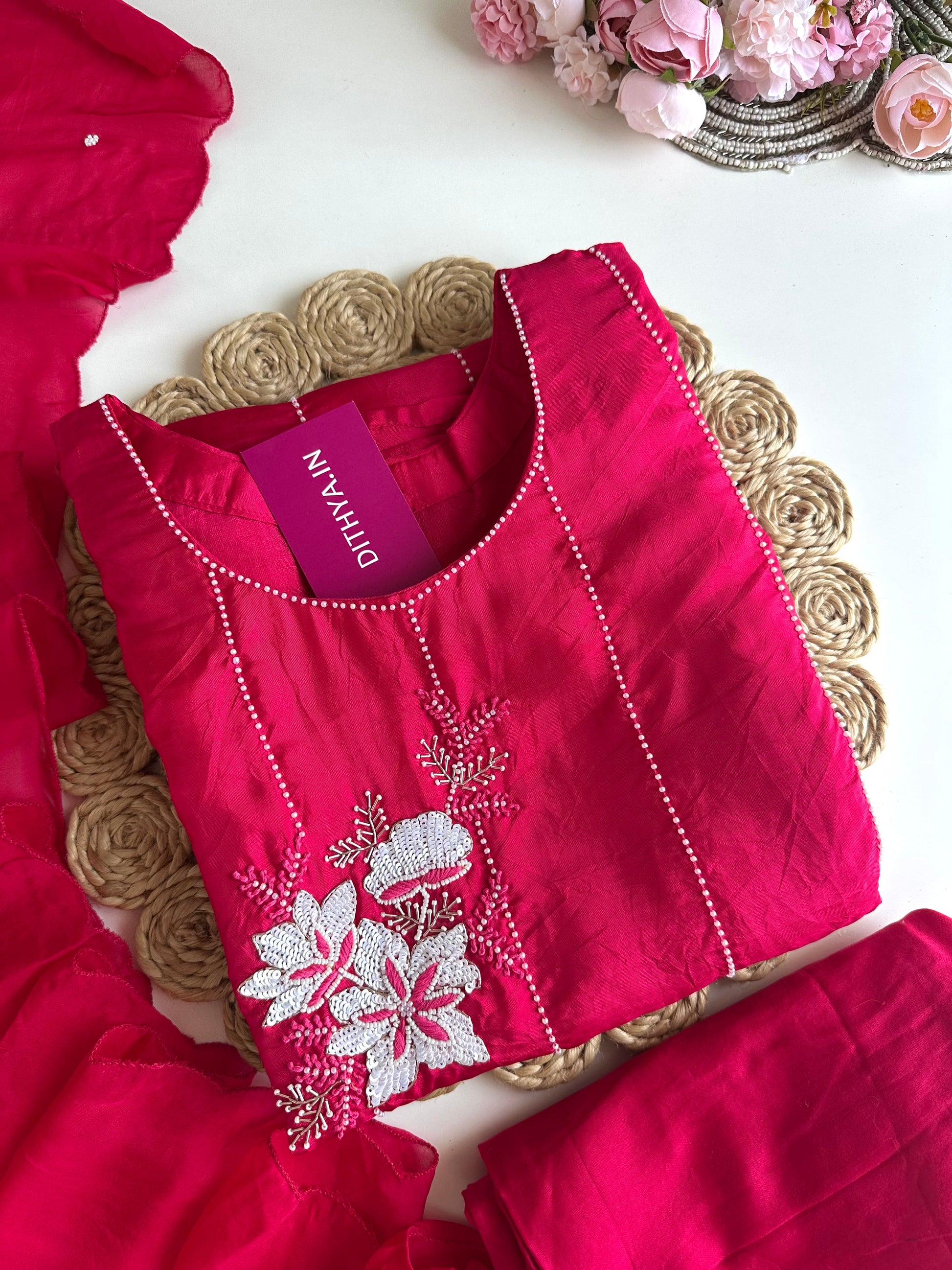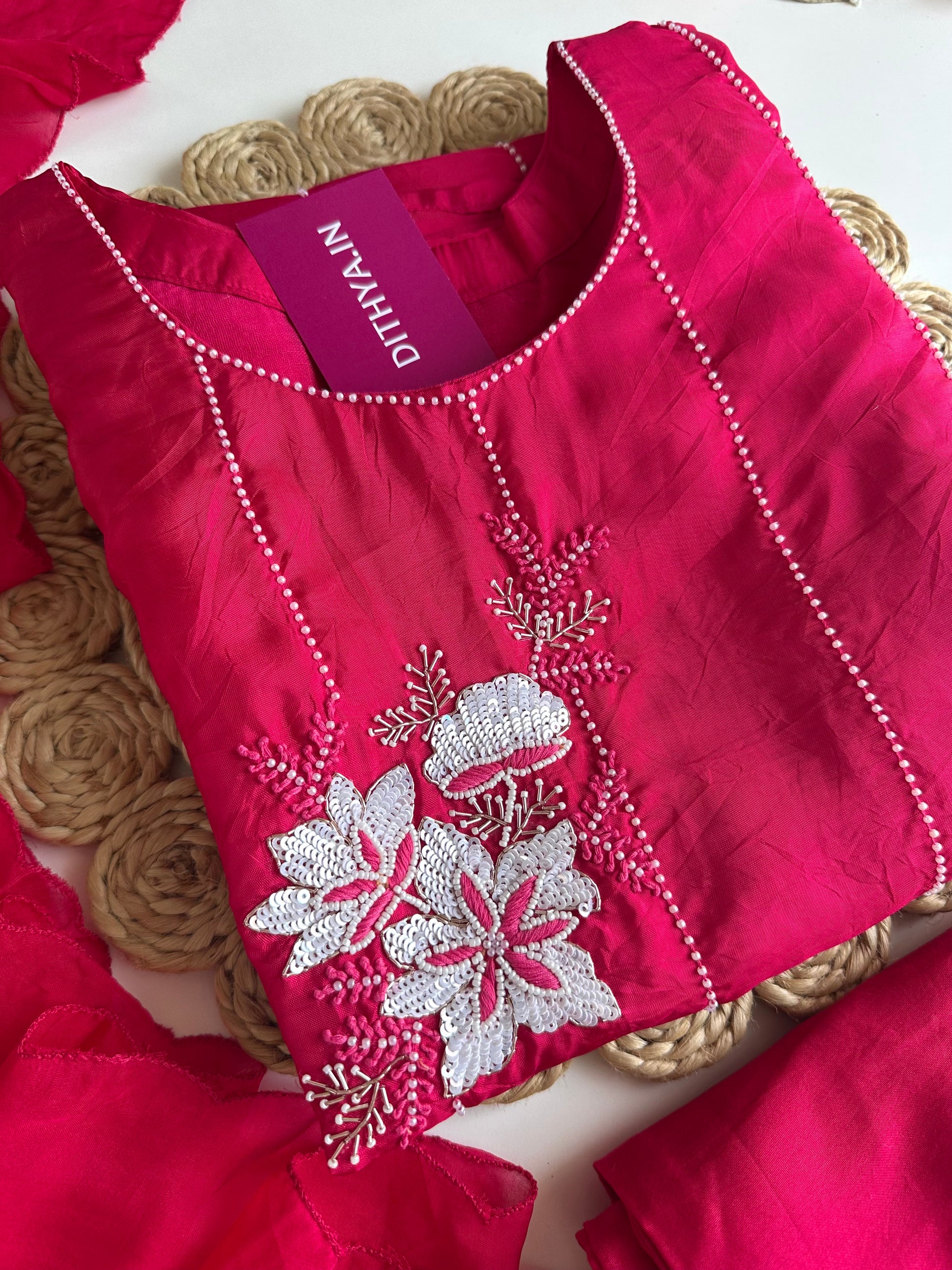 K253 - Pure crape pearl work straight Kurti with pants and dupatta
