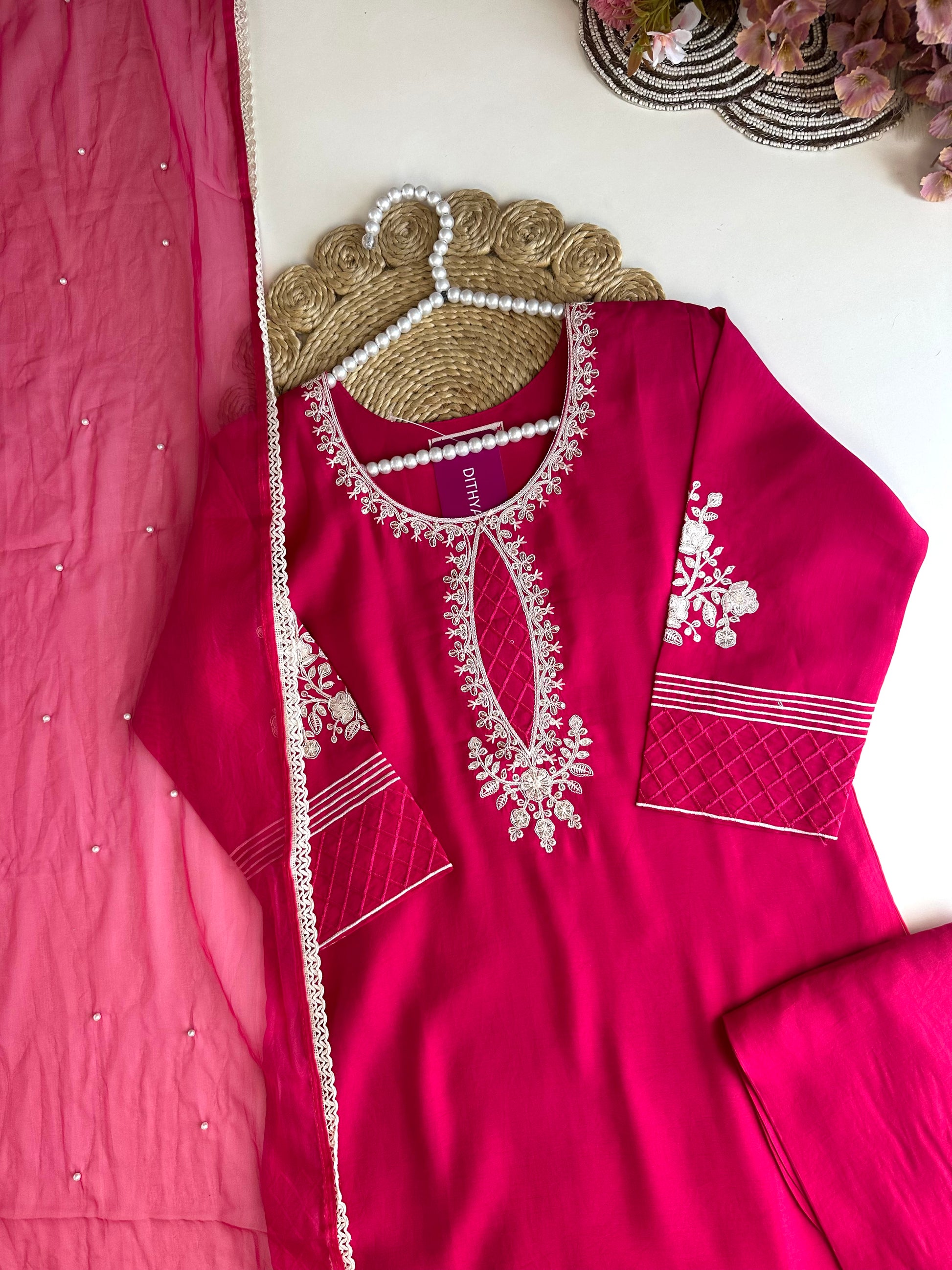 K459 - Roman silk embroidered straight Kurti with pants and dupatta