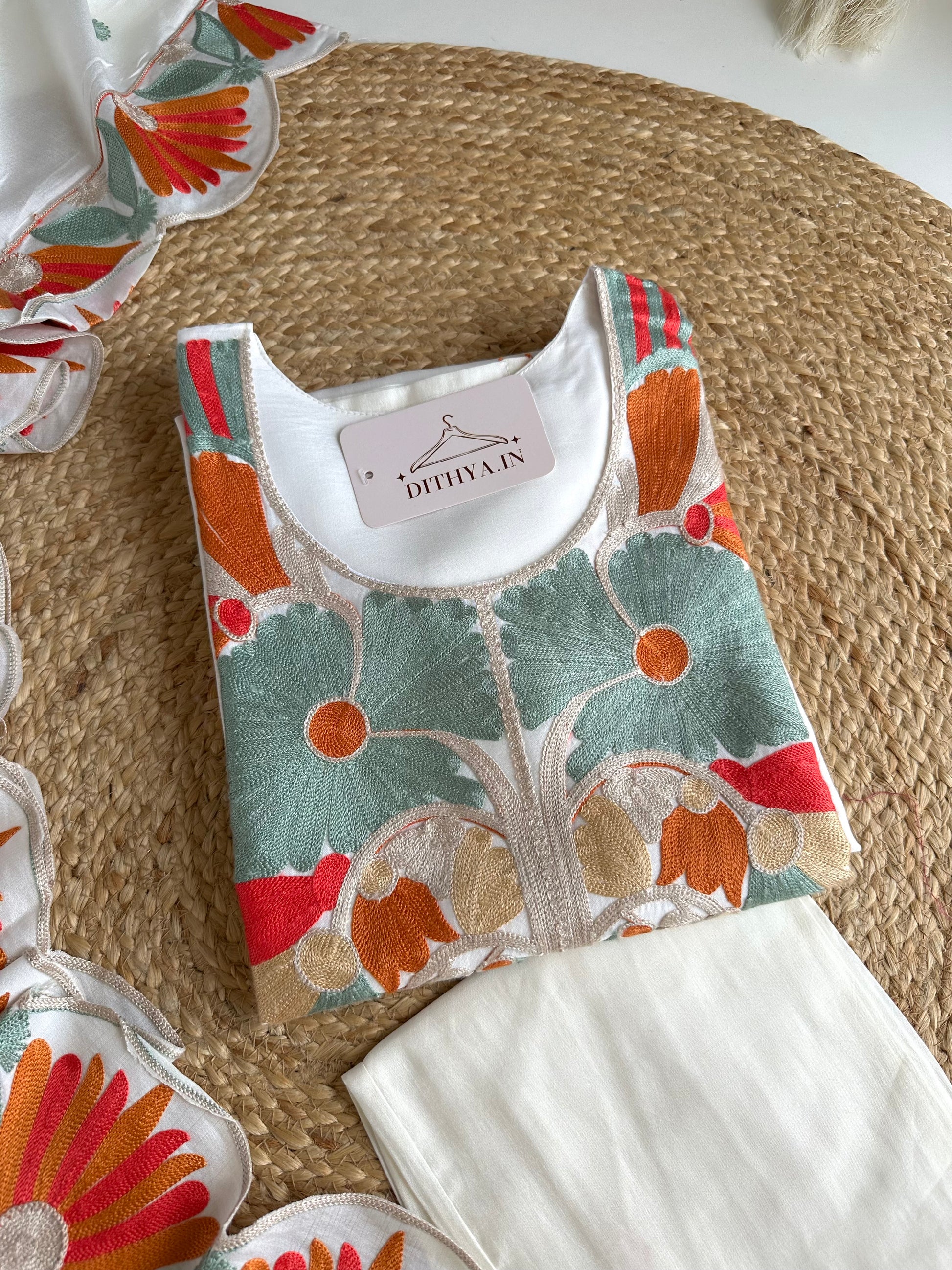 K491 - Roman silk embroidered straight Kurti with pants and dupatta