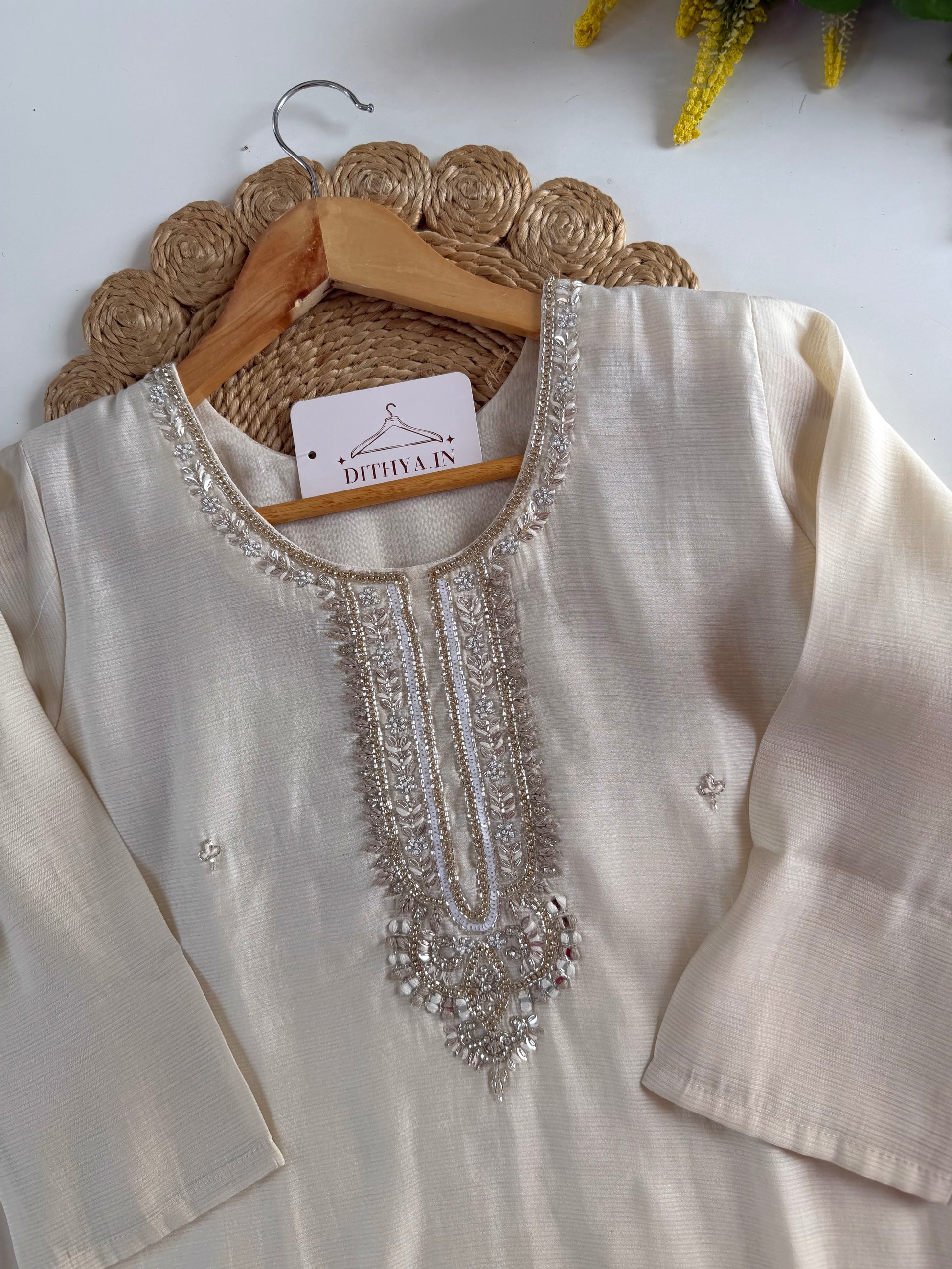K587 - Roman silk handwork straight Kurti with pants and dupatta