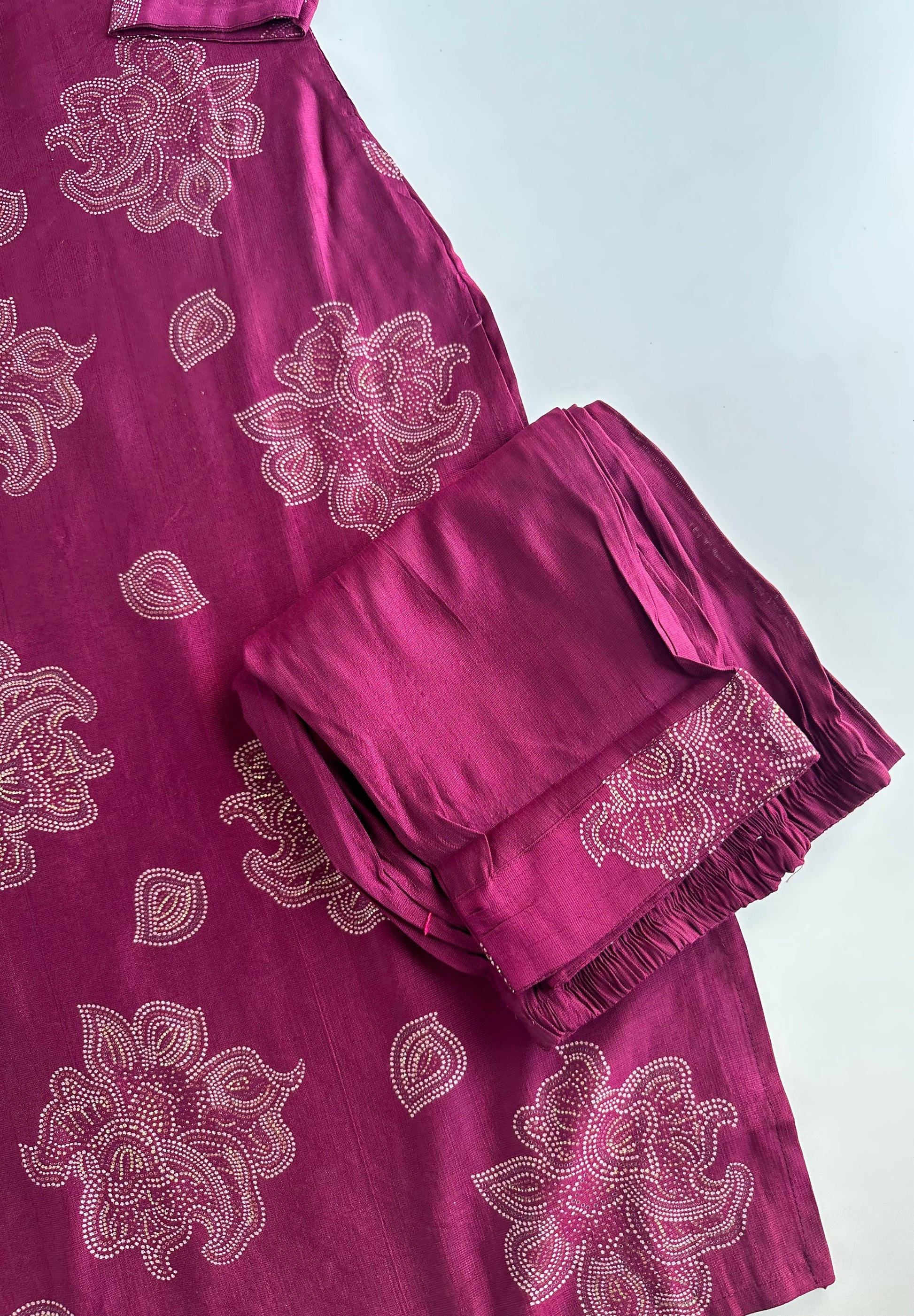 Experience elegance and comfort with the Roman silk straight Kurti set, featuring a finely tailored kurti, matching pant, and coordinating dupatta. Crafted from premium Roman silk, this ensemble offers a smooth texture with a subtle sheen that enhances your presence at any occasion. The straight cut of the kurti ensures a flattering fit, while the included pant and dupatta complete the look with effortless style and grace. Perfect for formal gatherings or festive events, this set combines traditional charm with contemporary tailoring for a refined wardrobe addition.