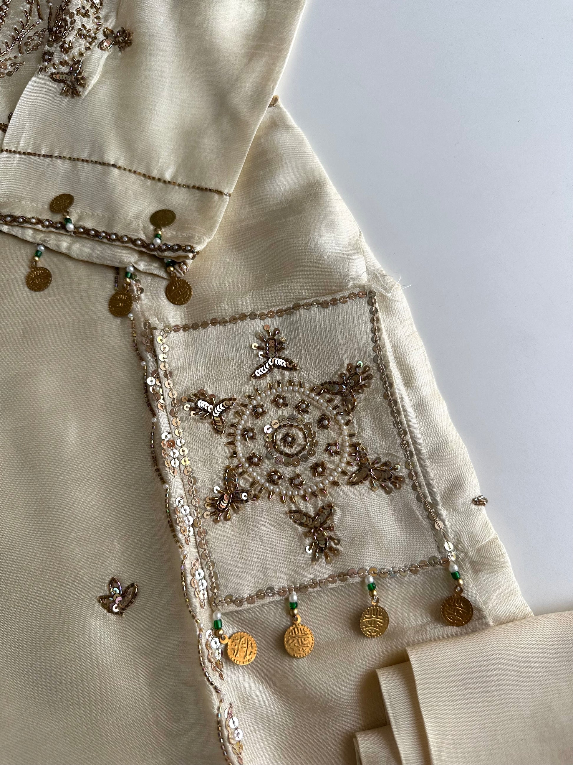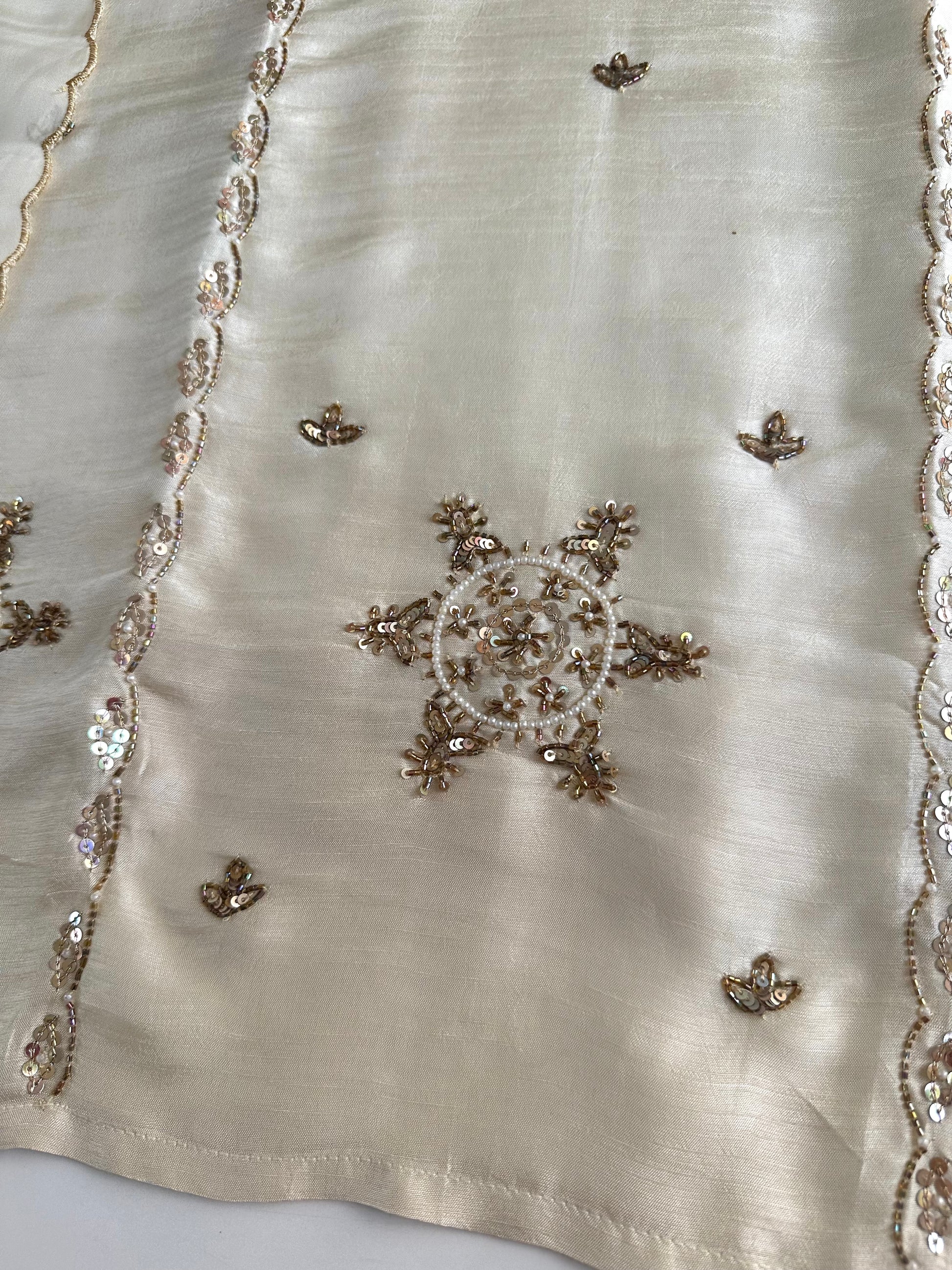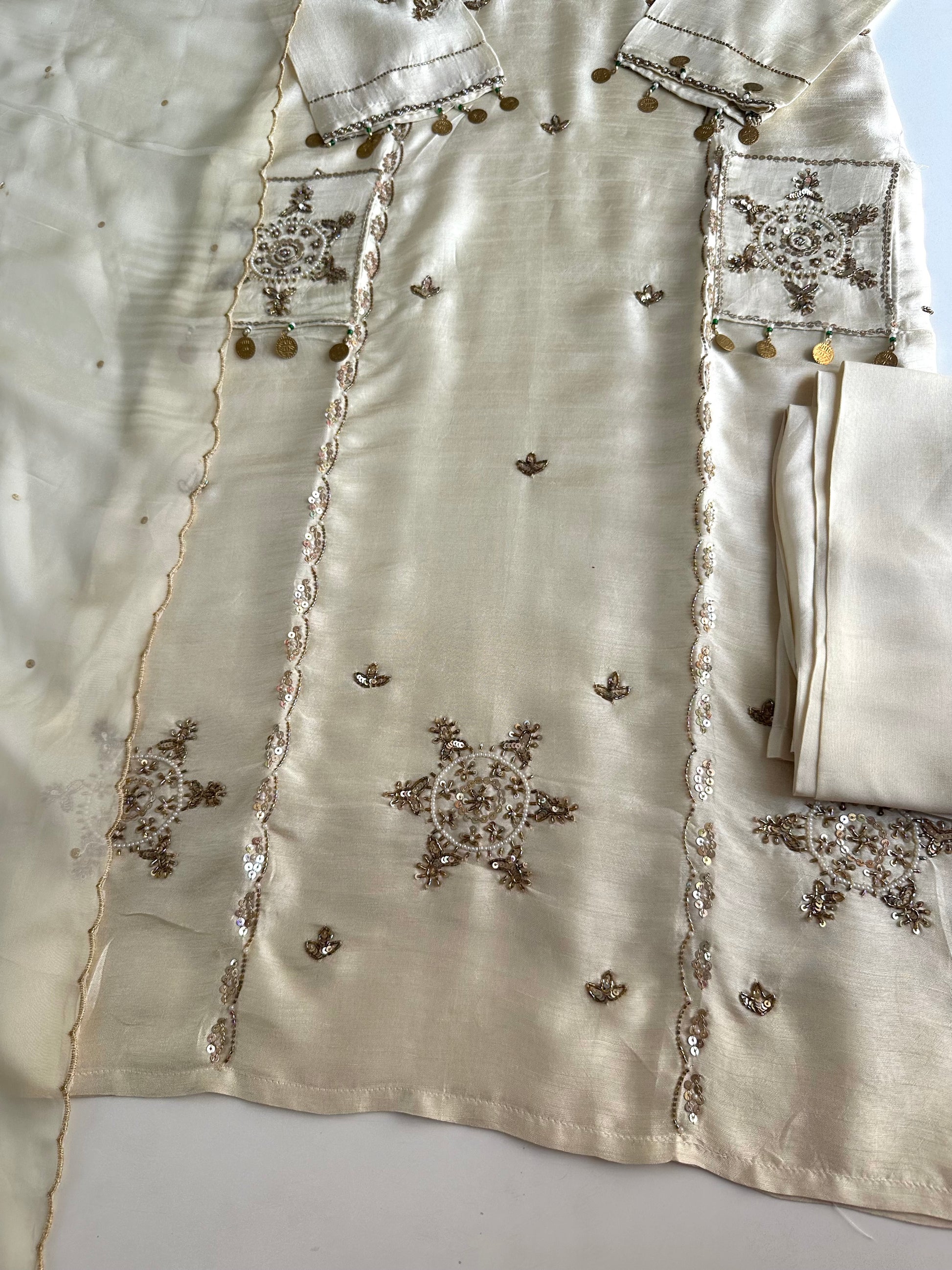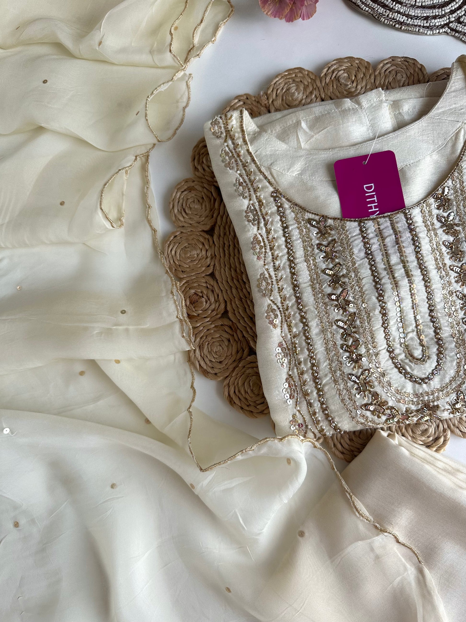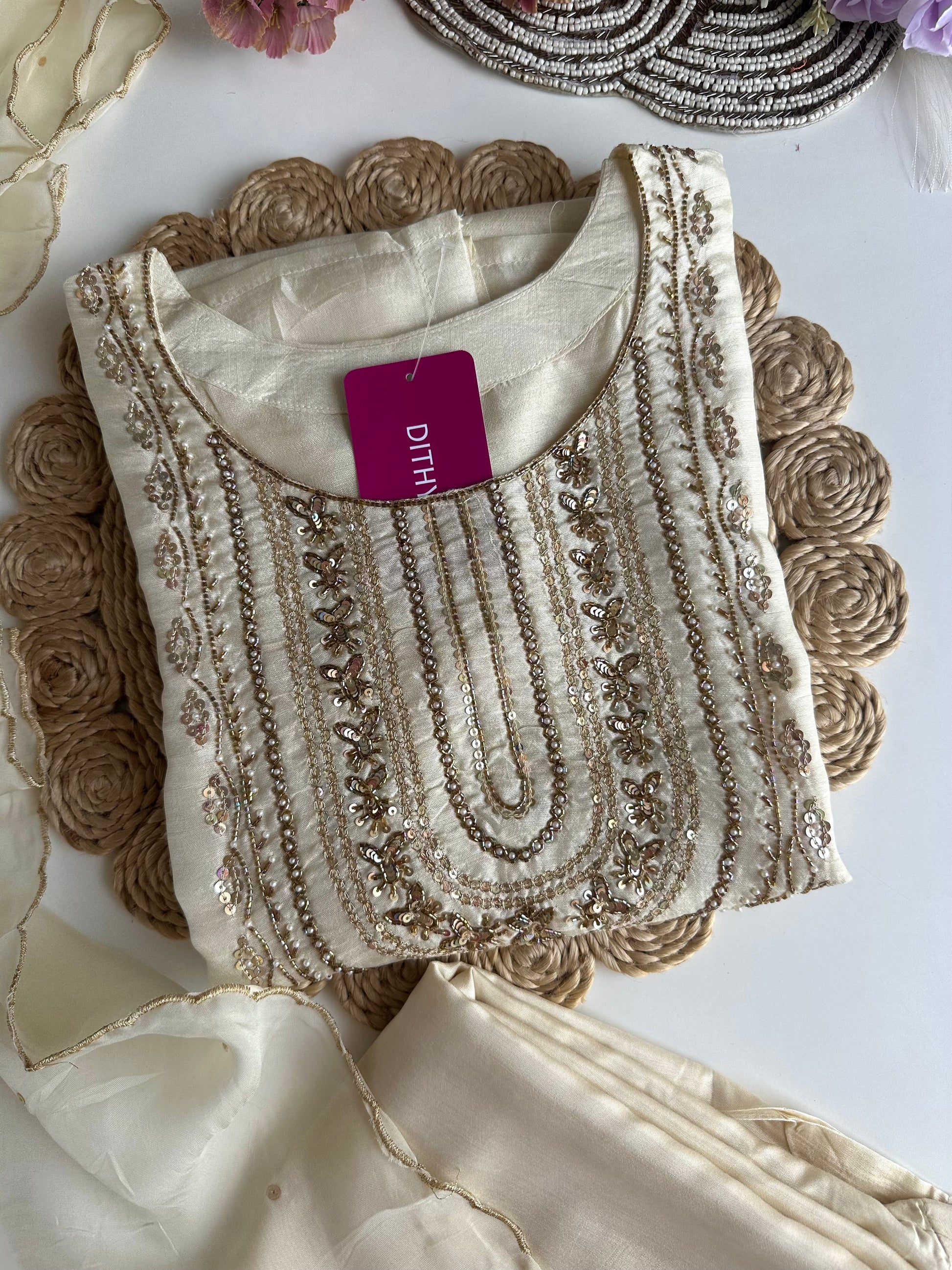 K188 - Russian silk handwork straight Kurti with pants and dupatta in 2 colours