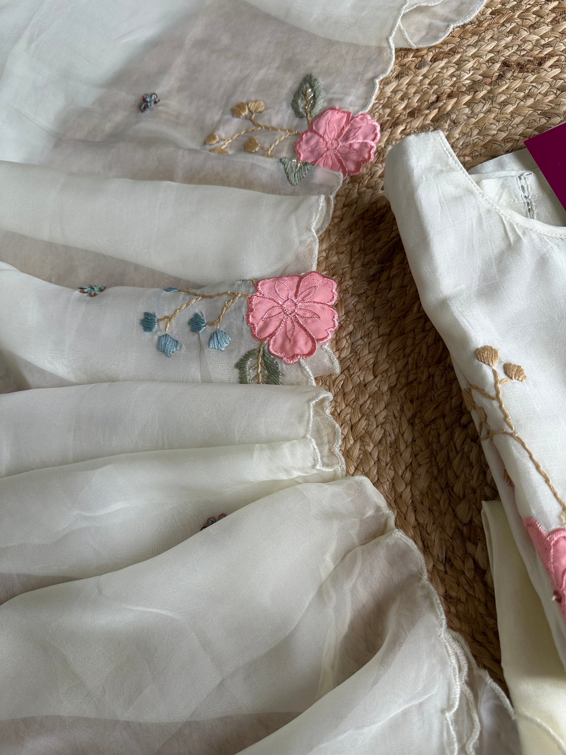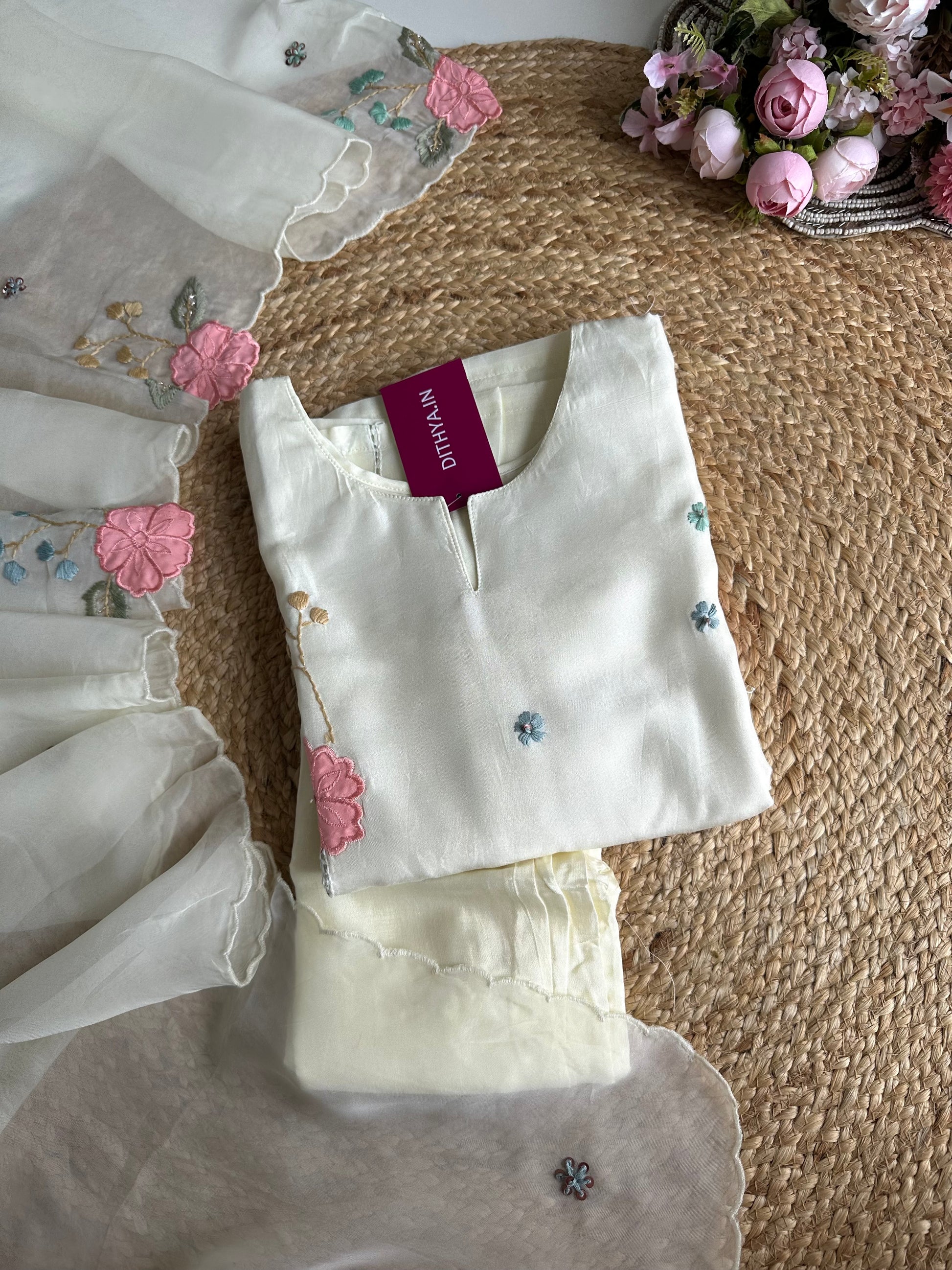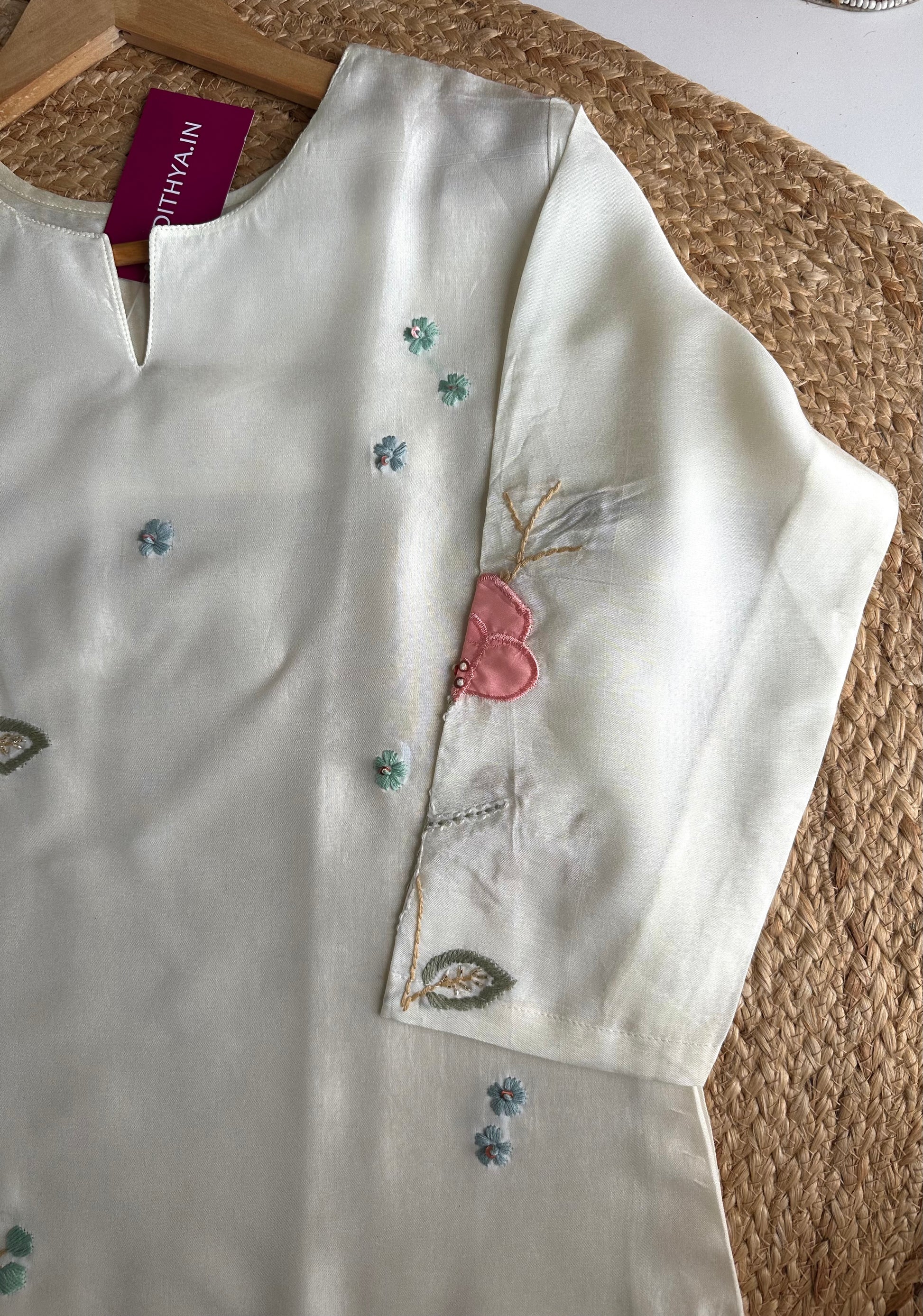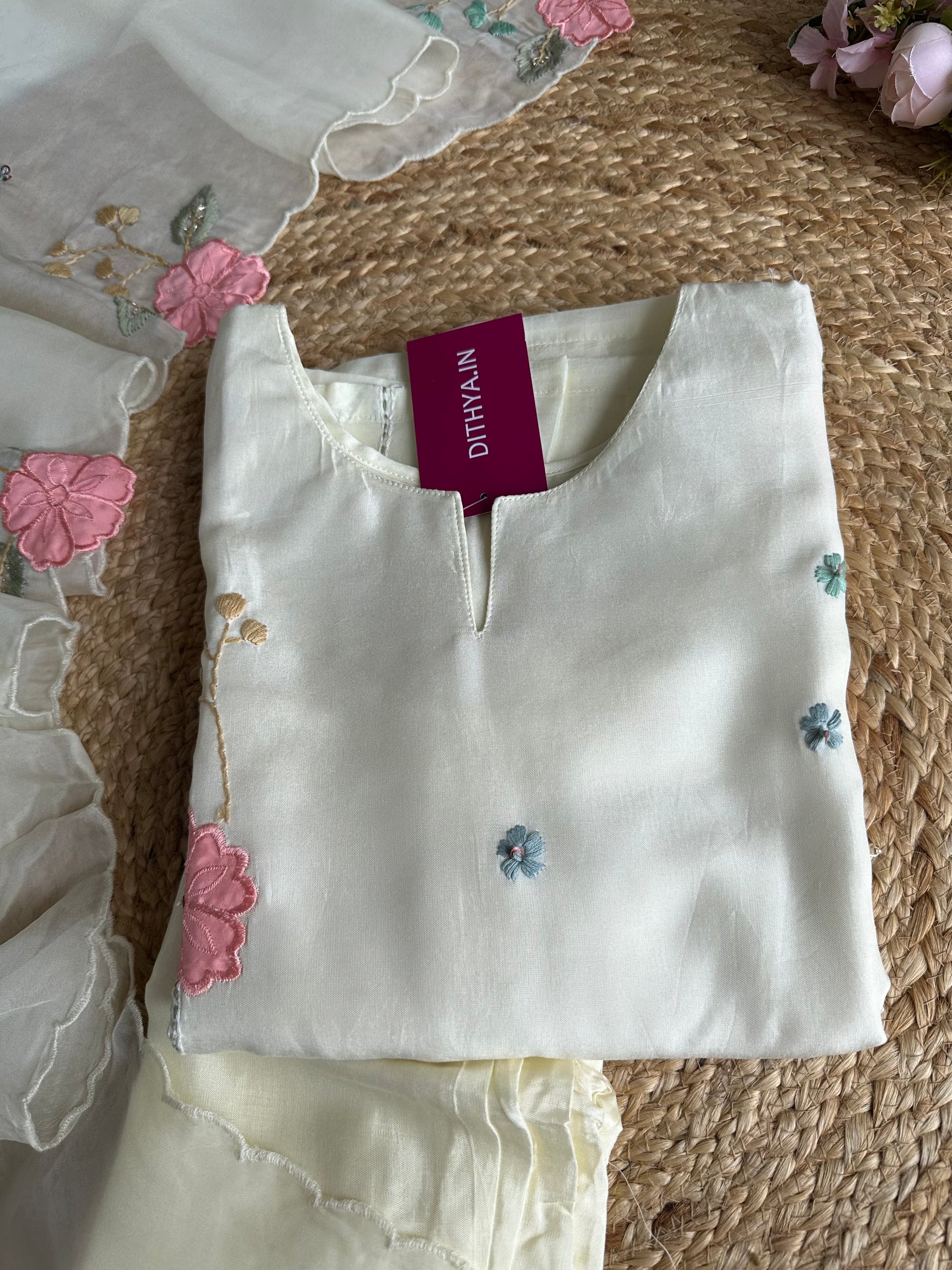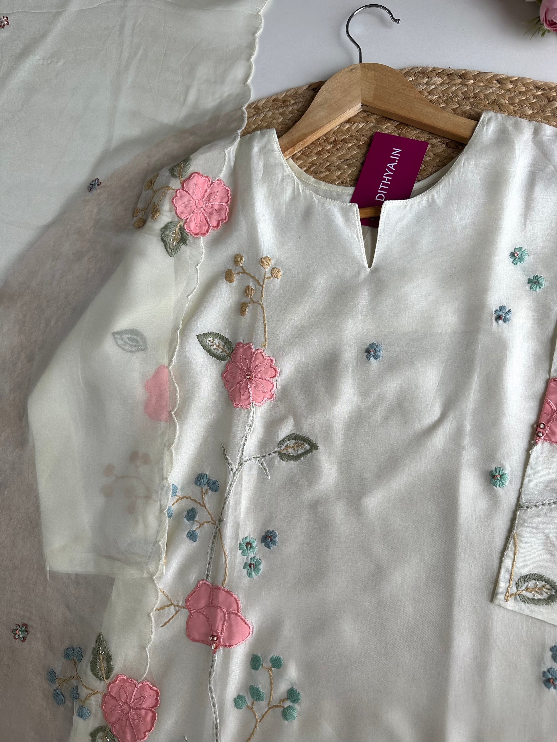 K139 - Russian silk Appliqué work straight Kurti with pants and dupatta