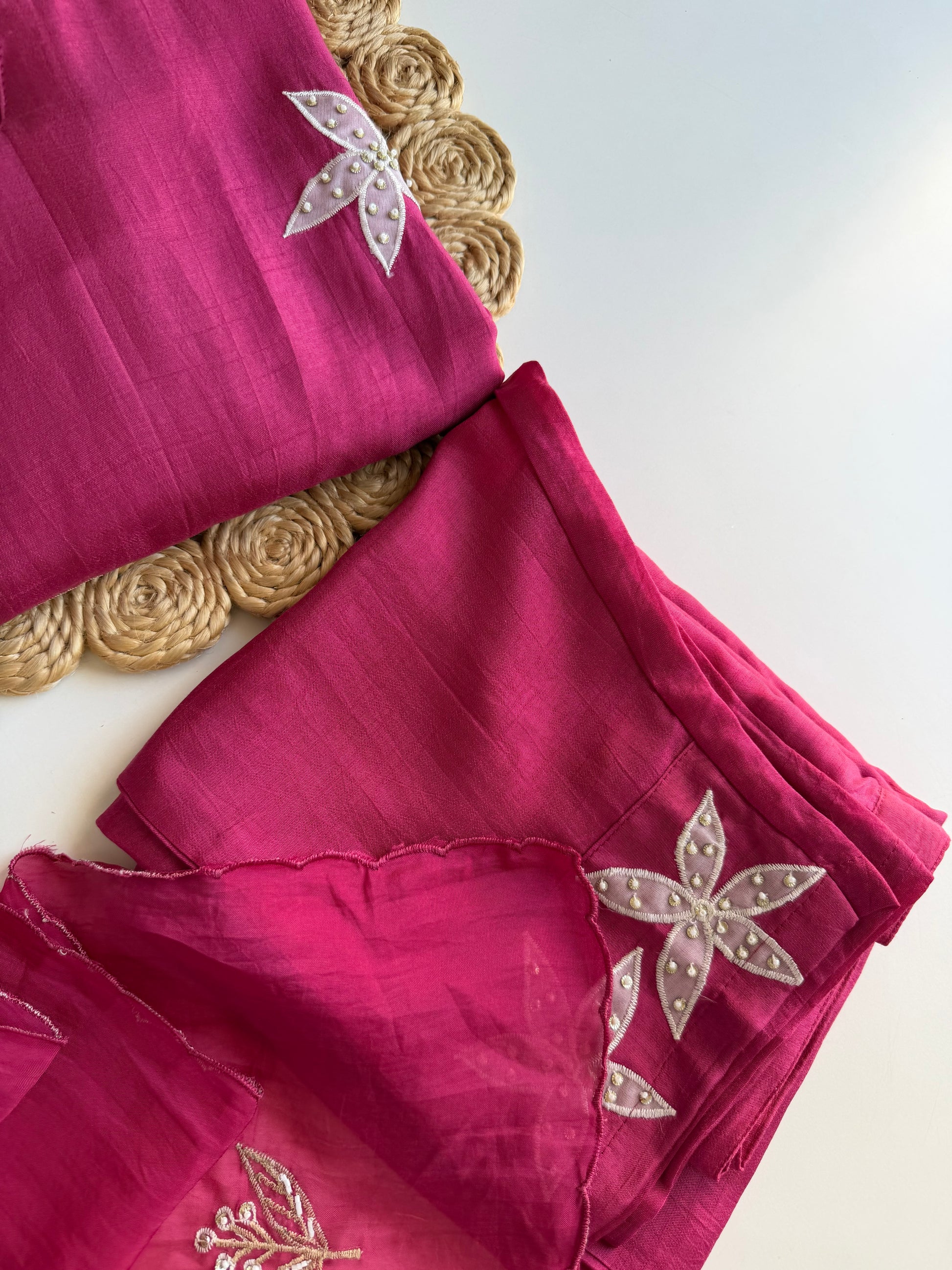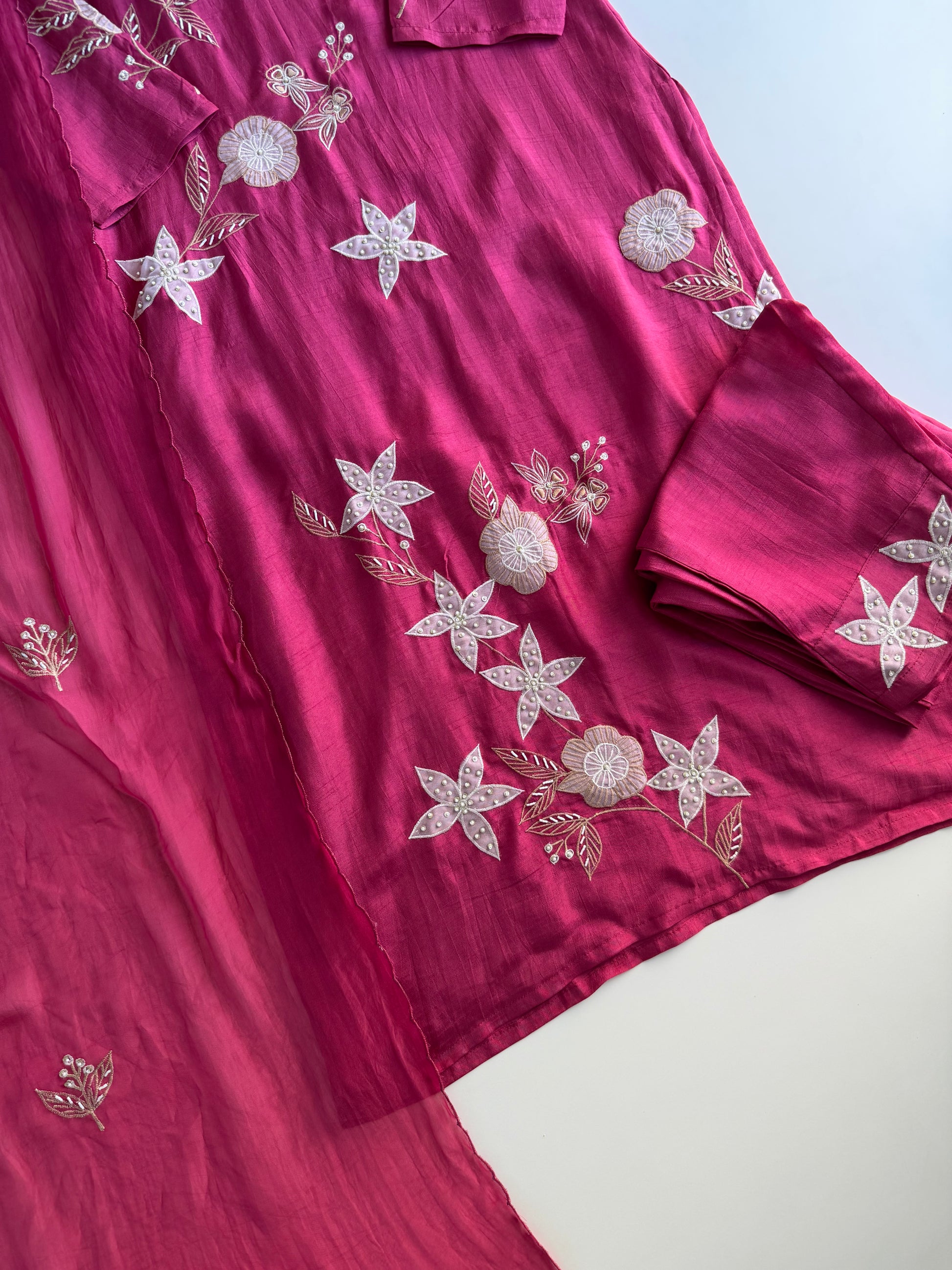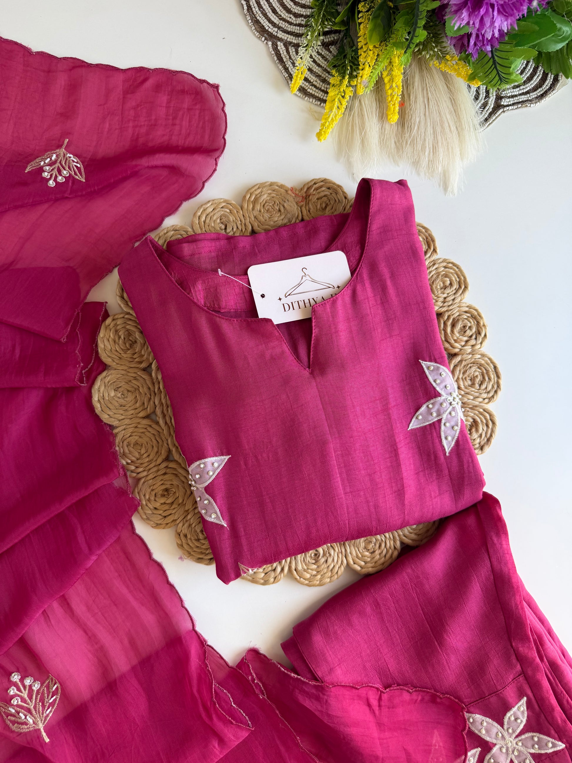 K544 - Russian silk appliqué work straight Kurti with pants and dupatta