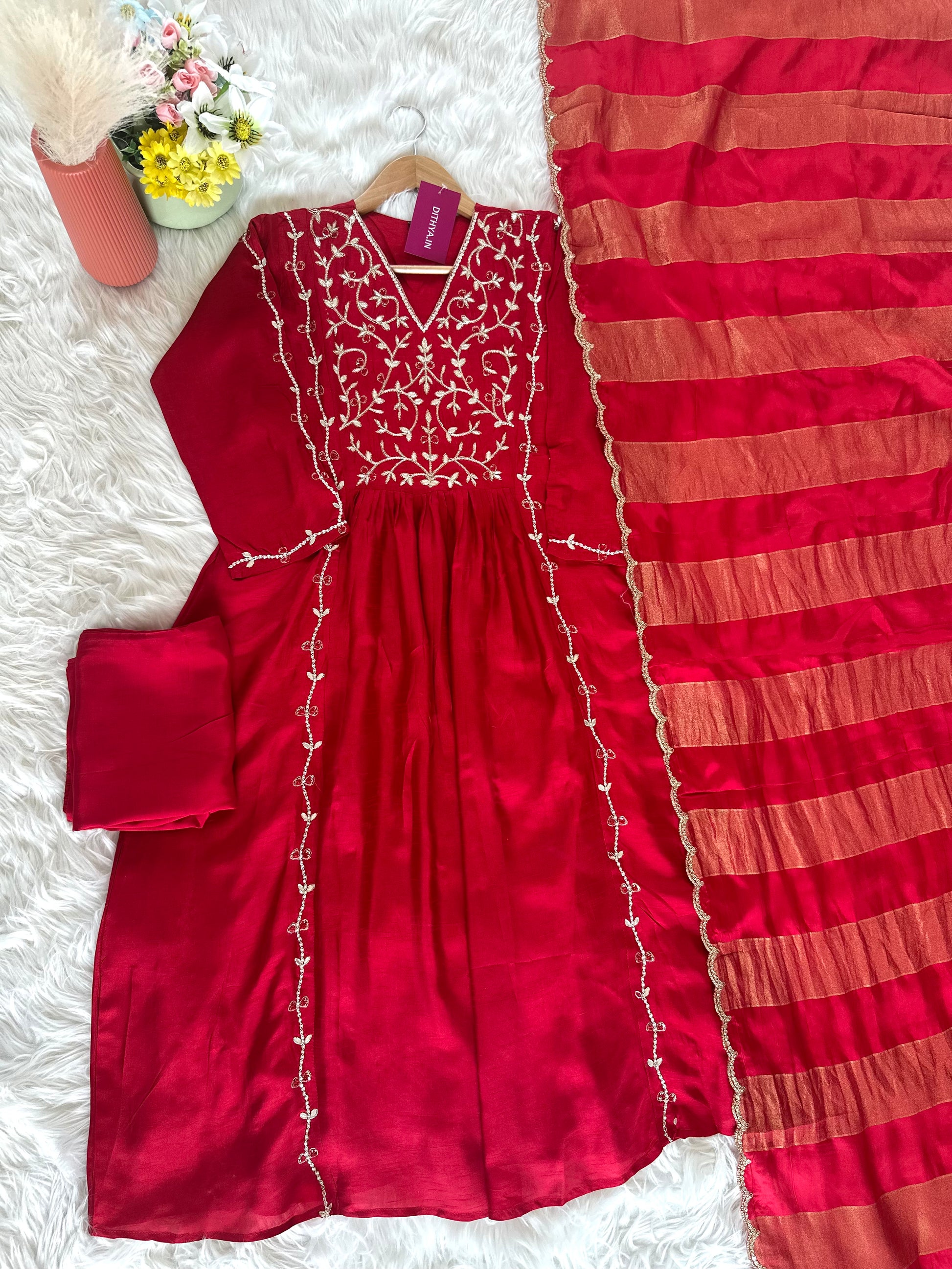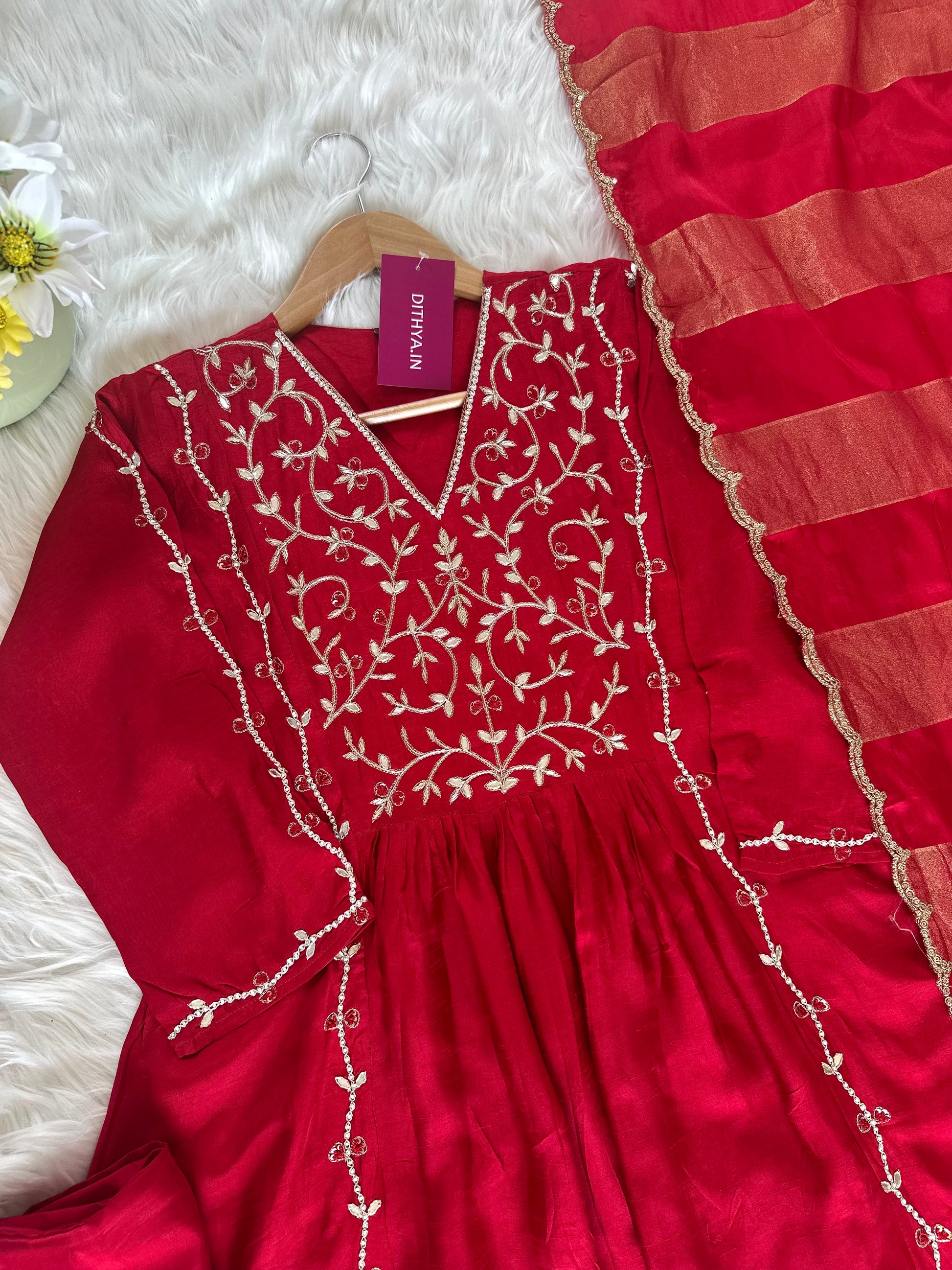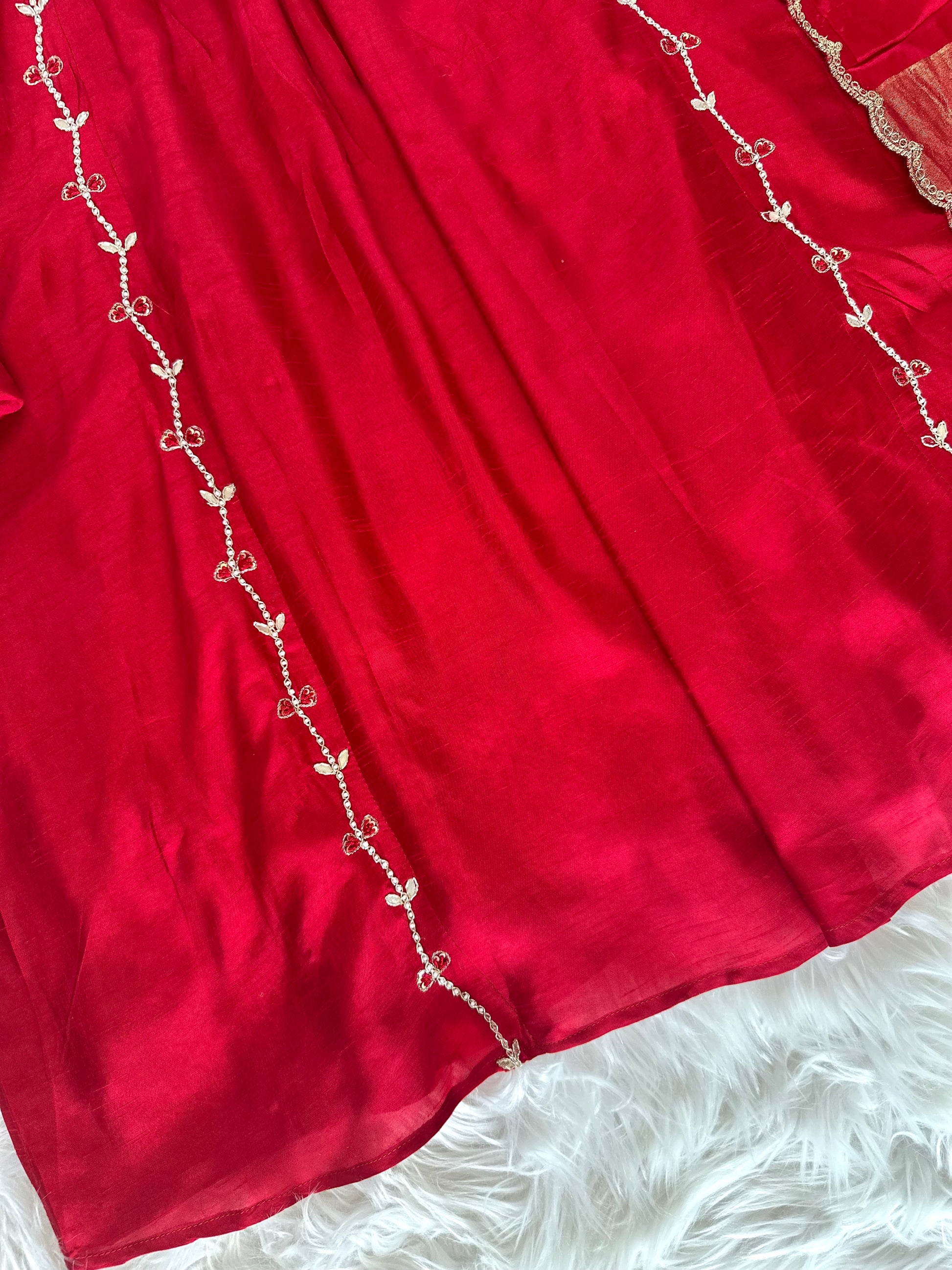 K419 - Russian silk handwork Aline Kurti with pants and dupatta