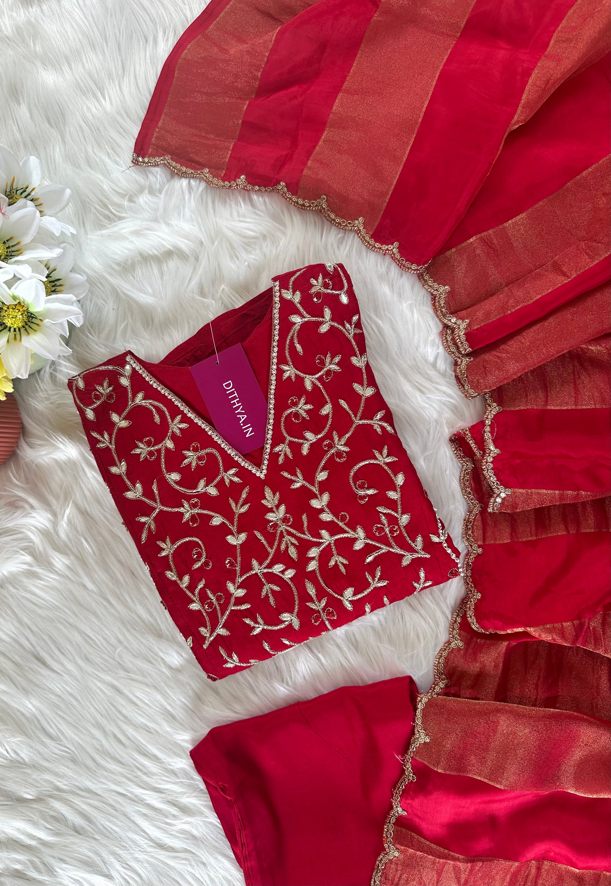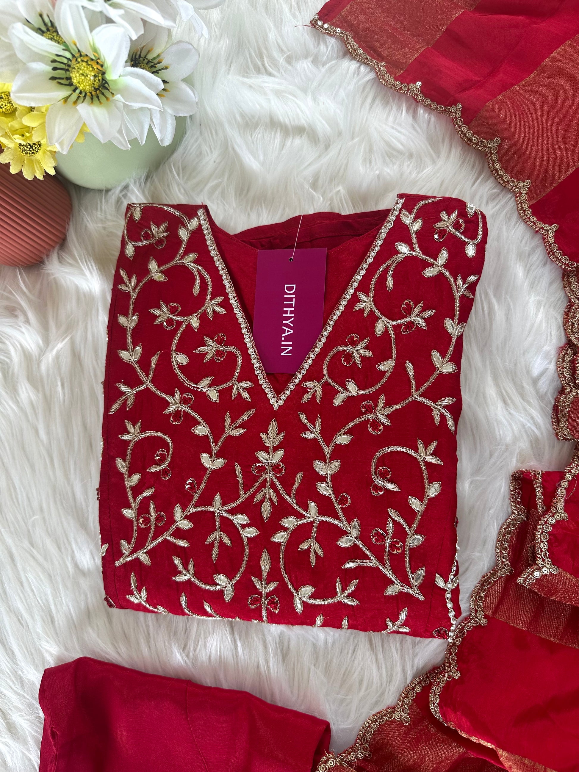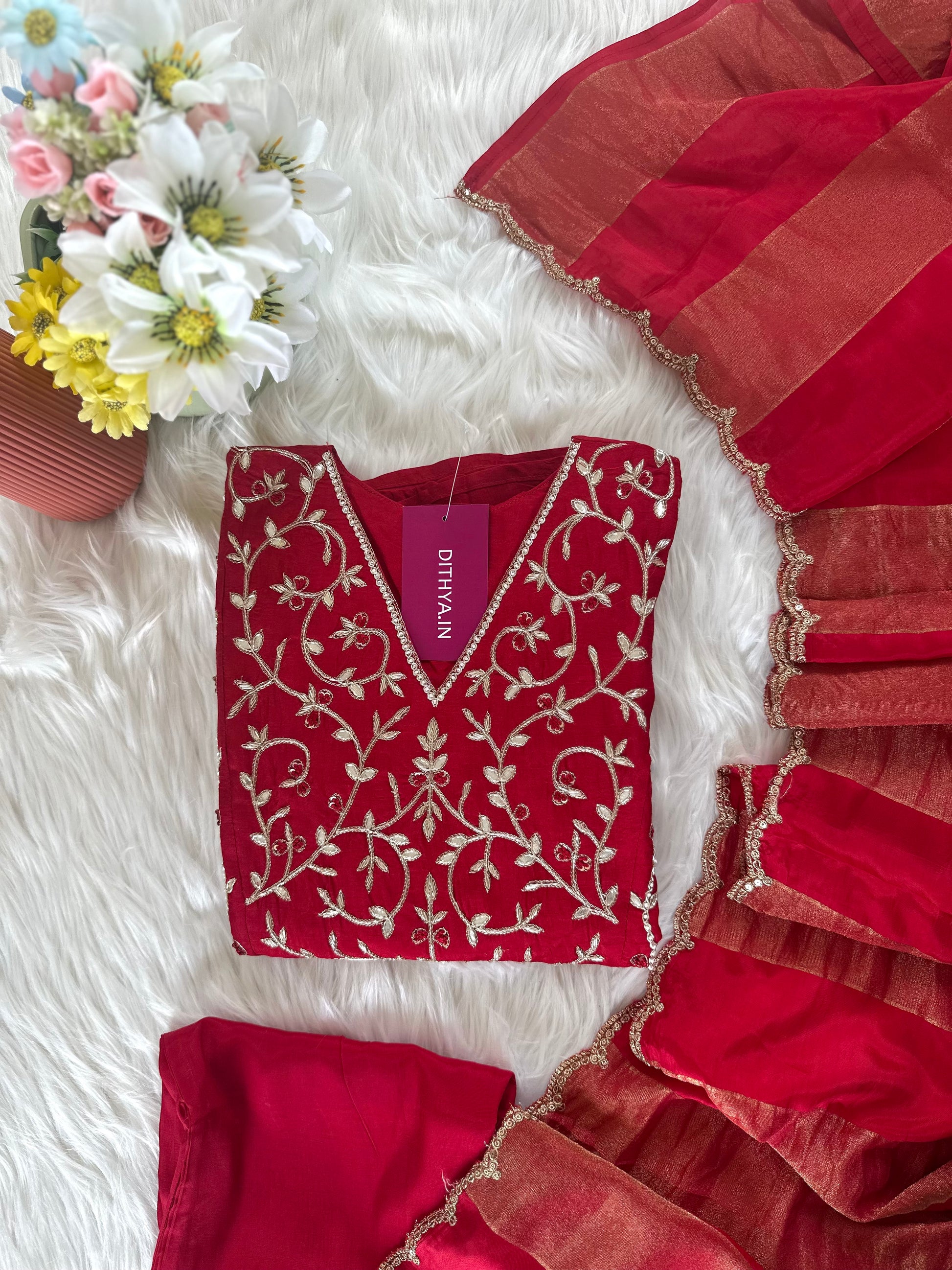 K419 - Russian silk handwork Aline Kurti with pants and dupatta