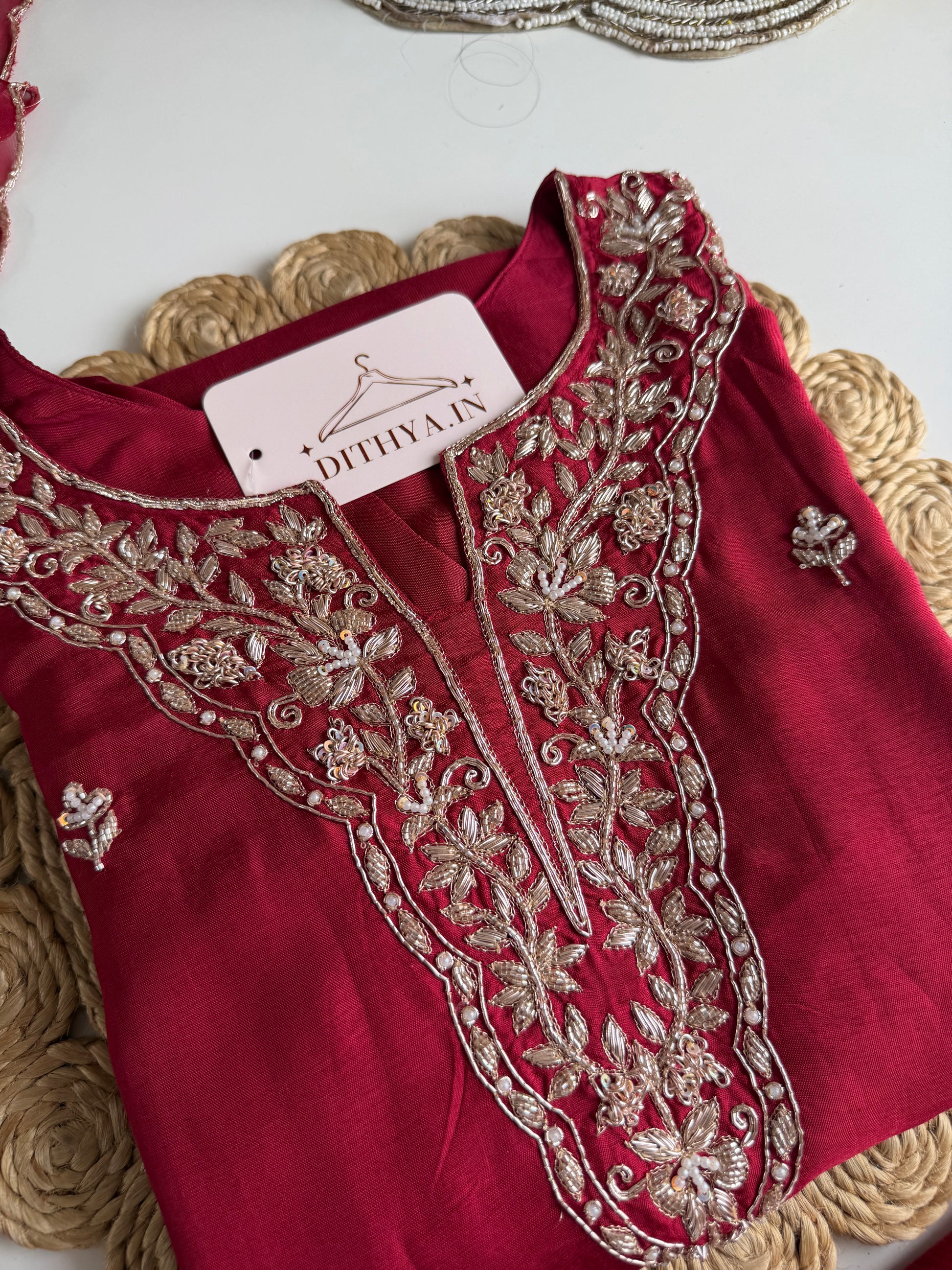K206 - Russian silk handwork aline Kurti with pants and dupatta