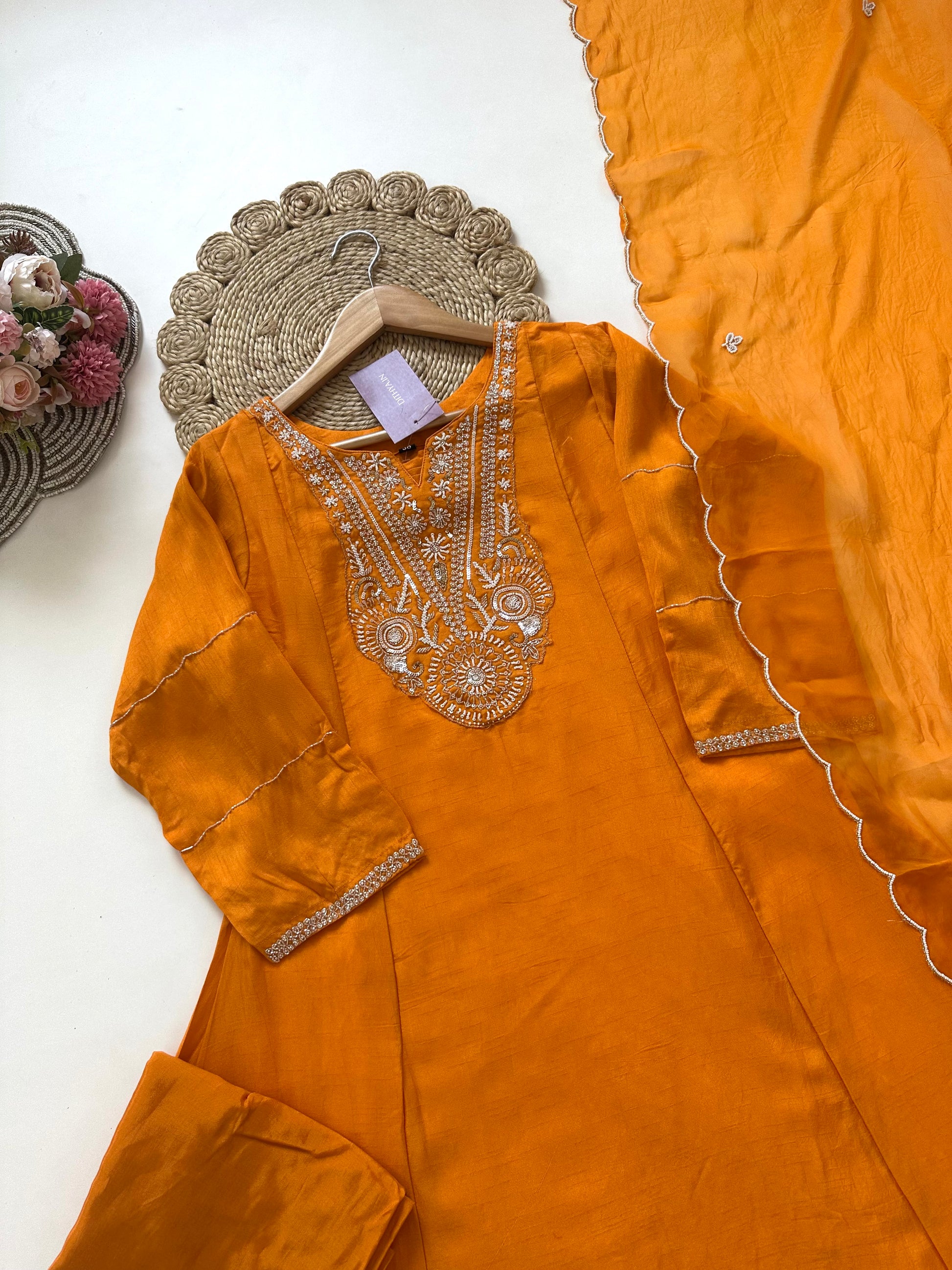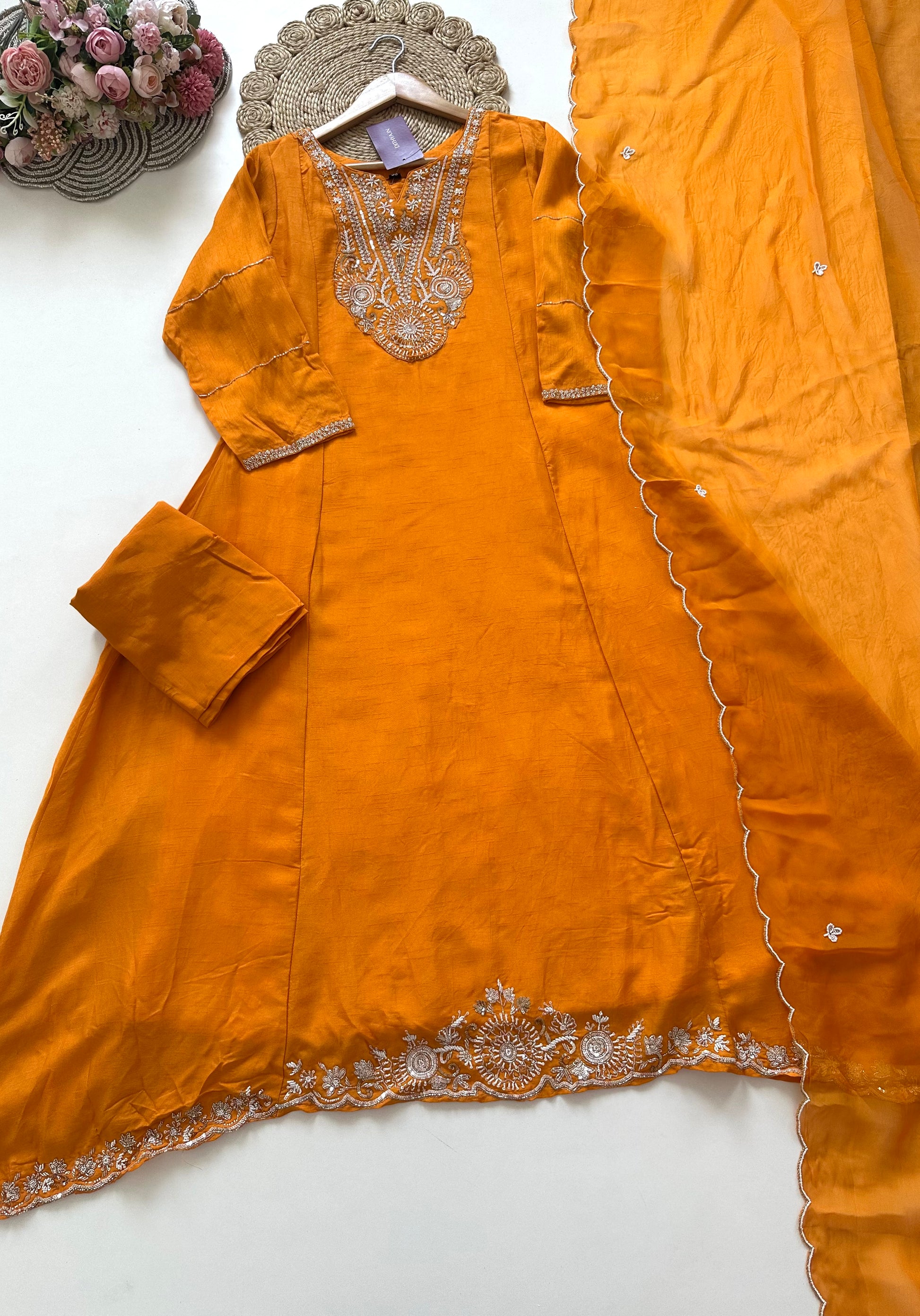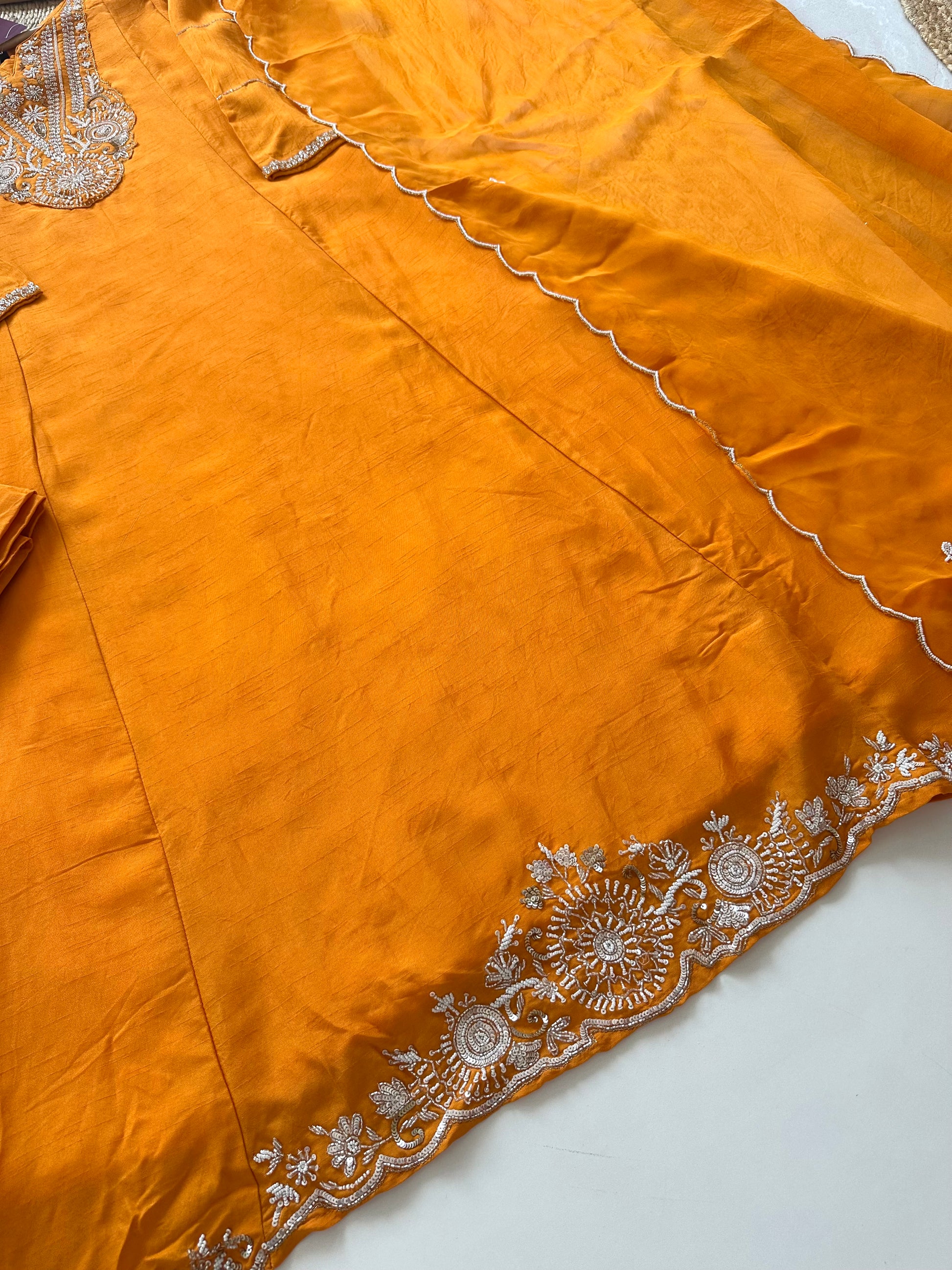 K097 - Russian silk handwork Anarkali with pants and dupatta