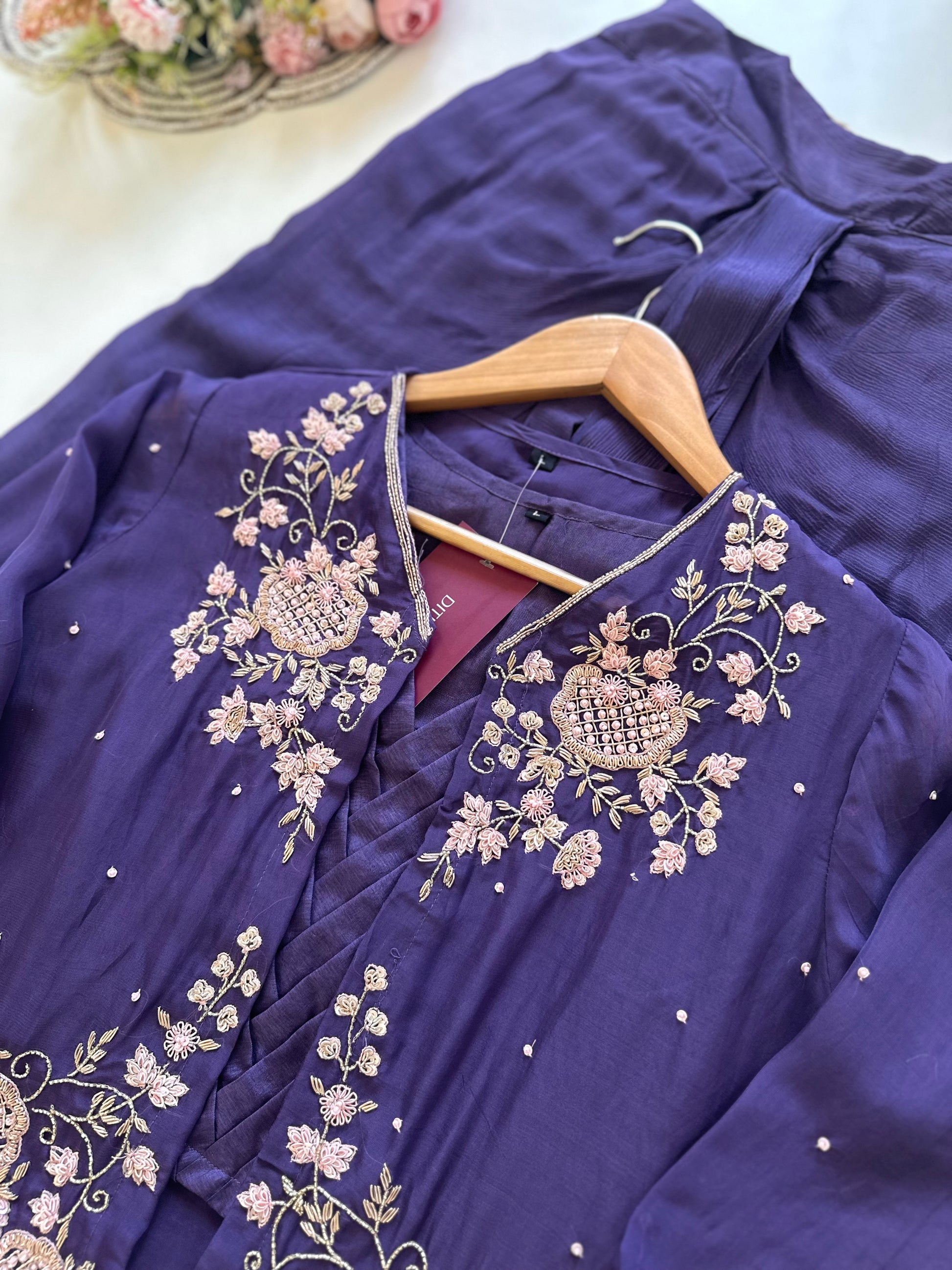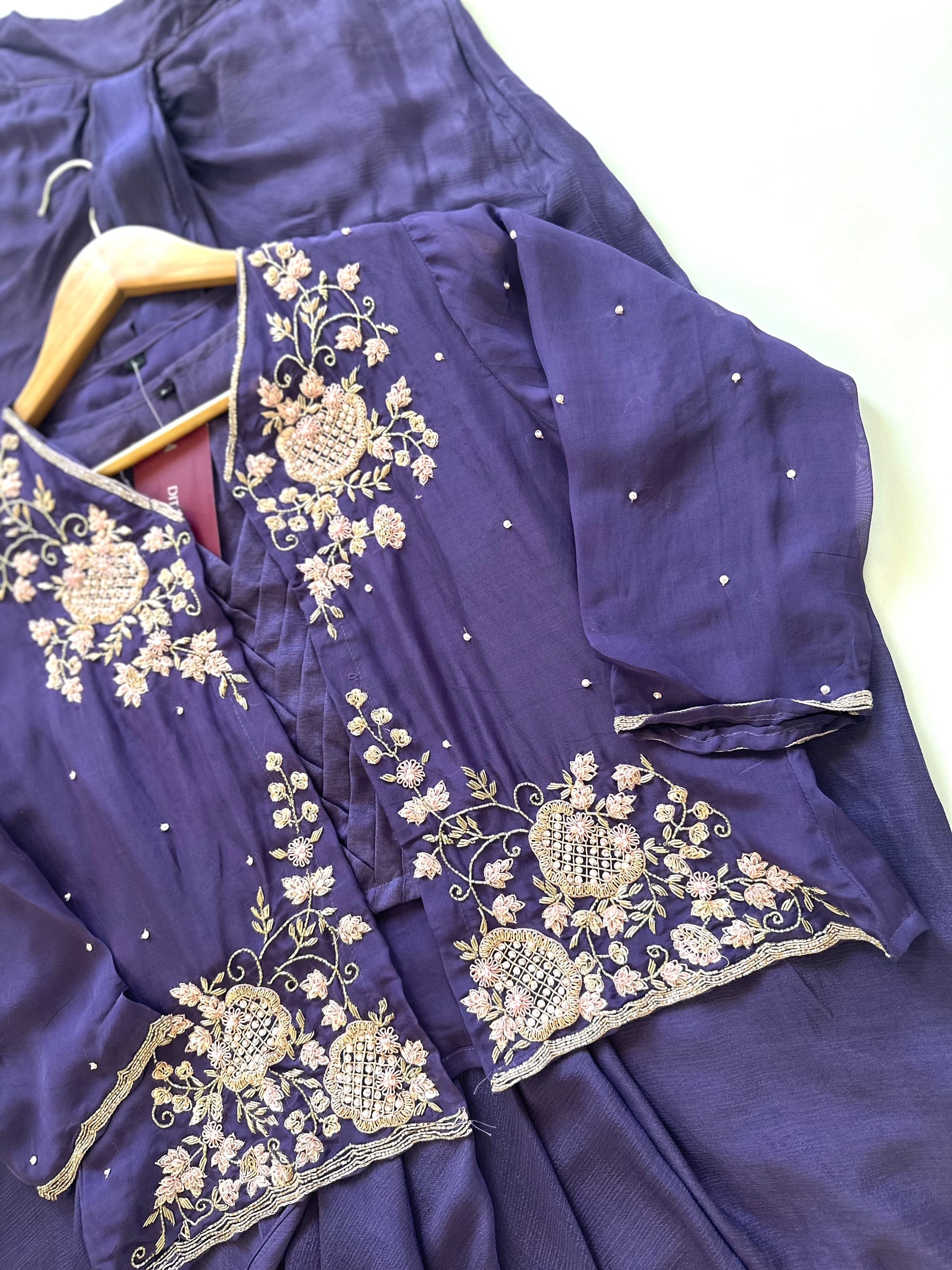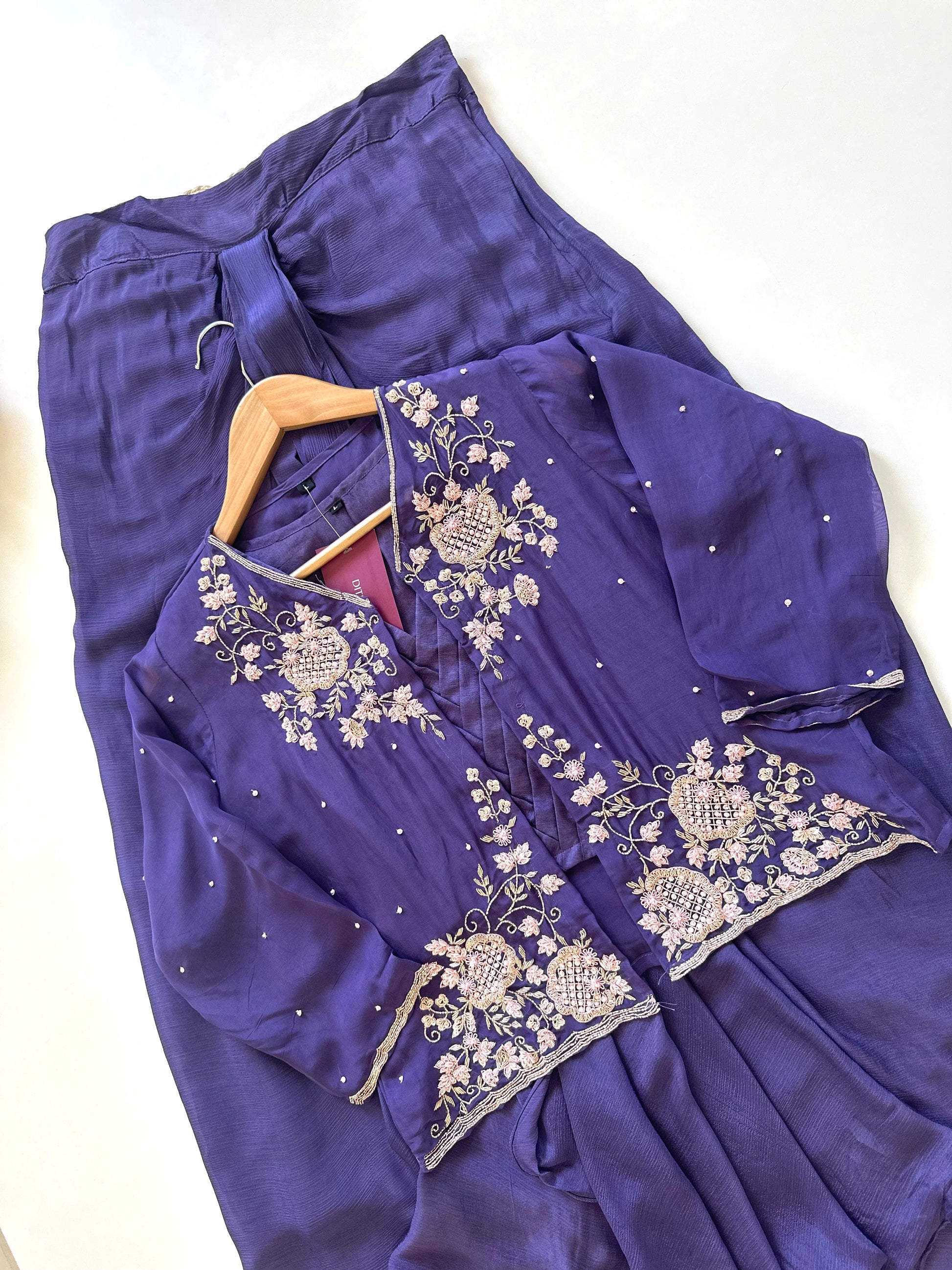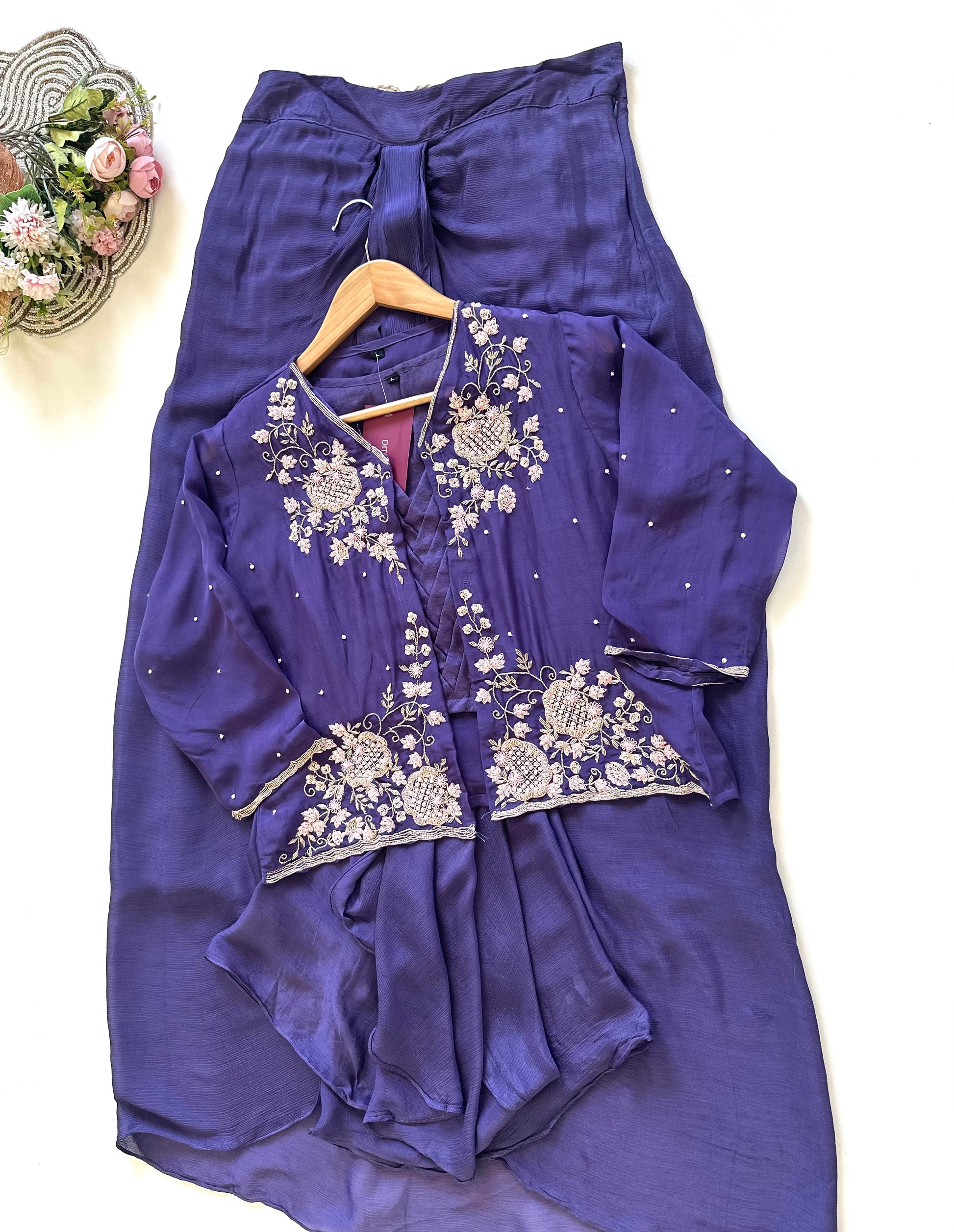 K359 - Russian silk handwork Blazer, crop top and cowl skirt