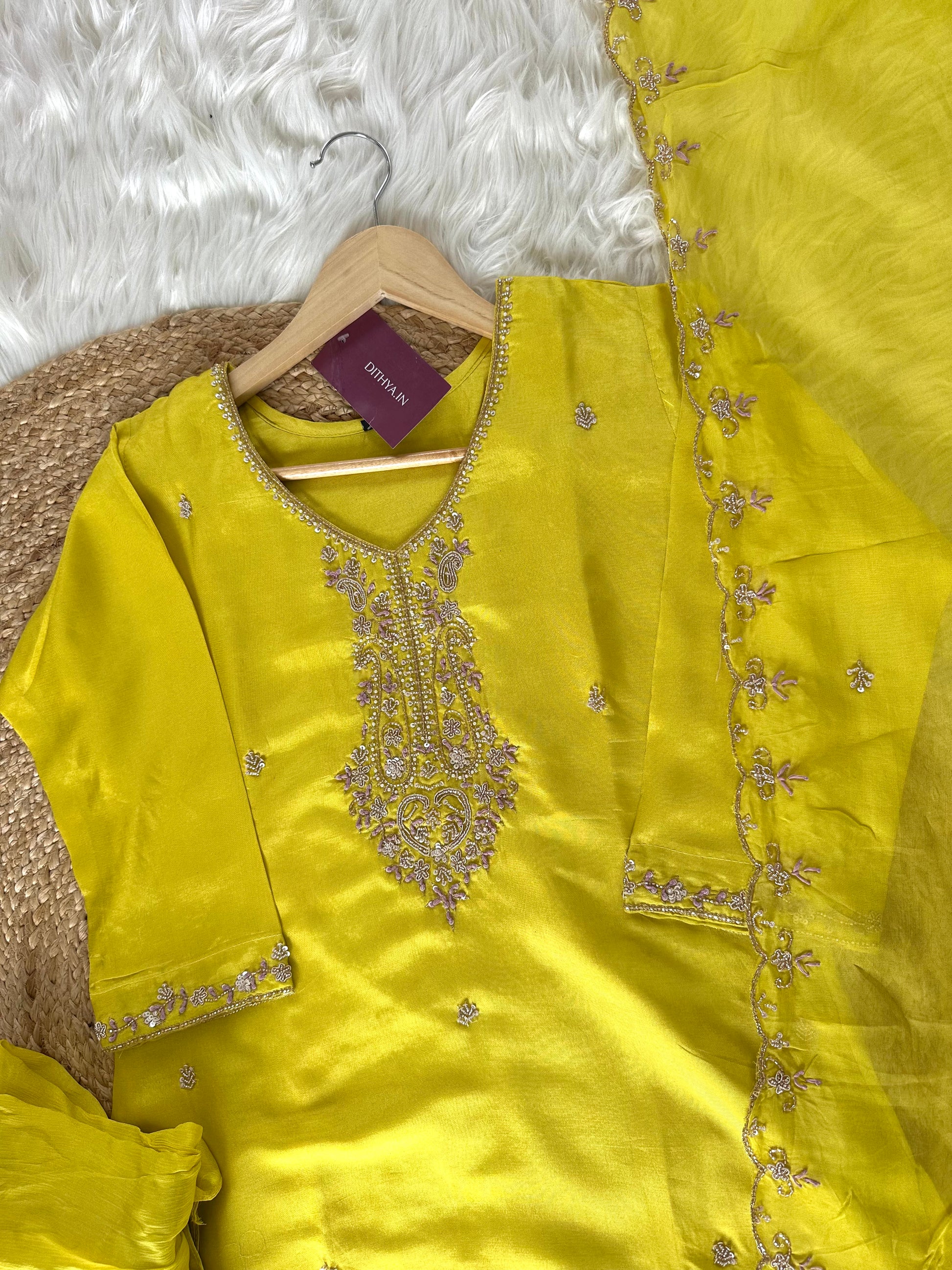 This K062 Russian silk handwork Kurti with sharara and dupatta is an exquisite combination of traditional craftsmanship and luxurious fabric. Made from high-quality Russian silk, this Kurti is adorned with intricate handwork, making it a unique and elegant piece. Complete the look with the matching sharara and dupatta for a stunning ensemble.