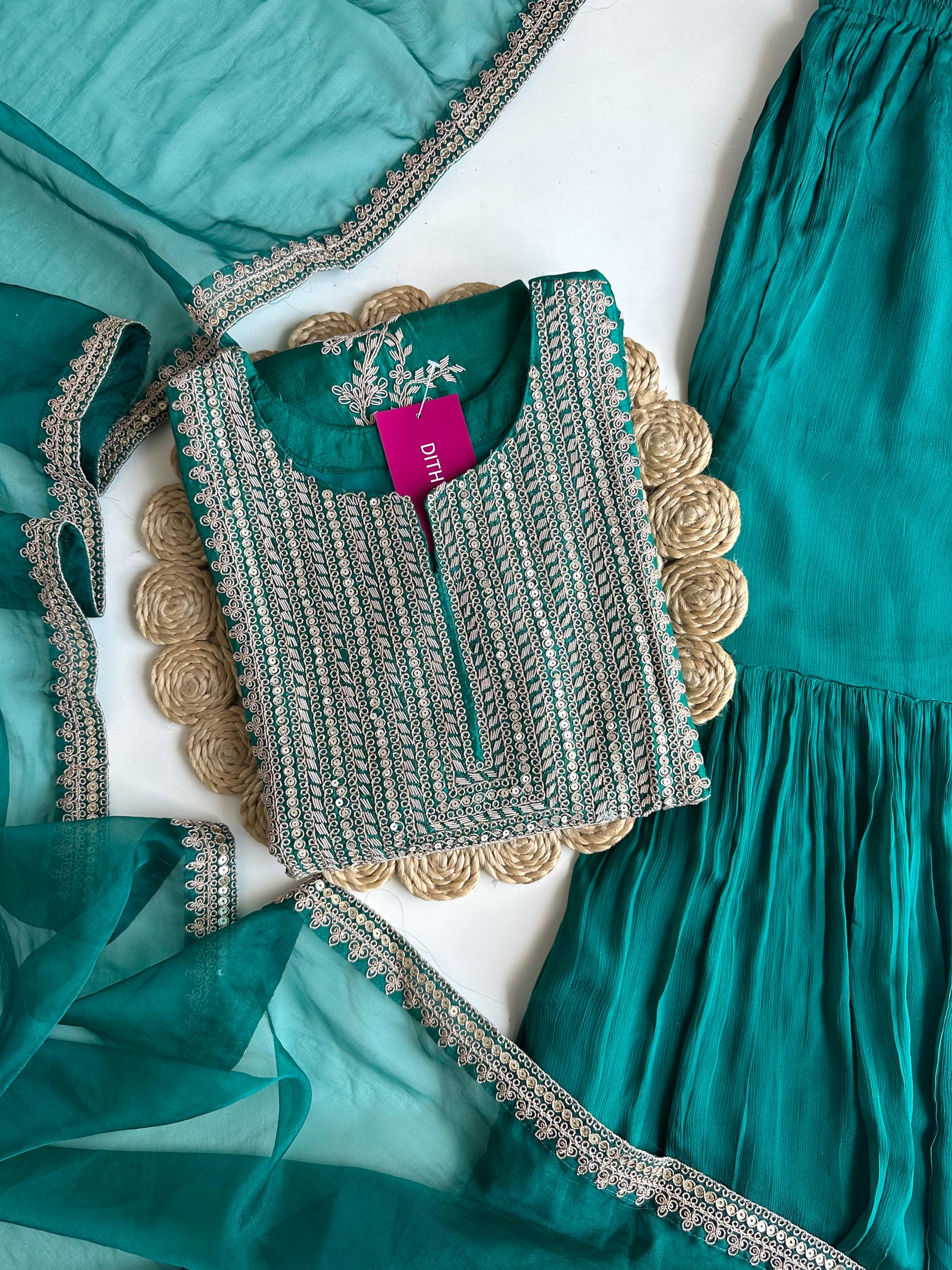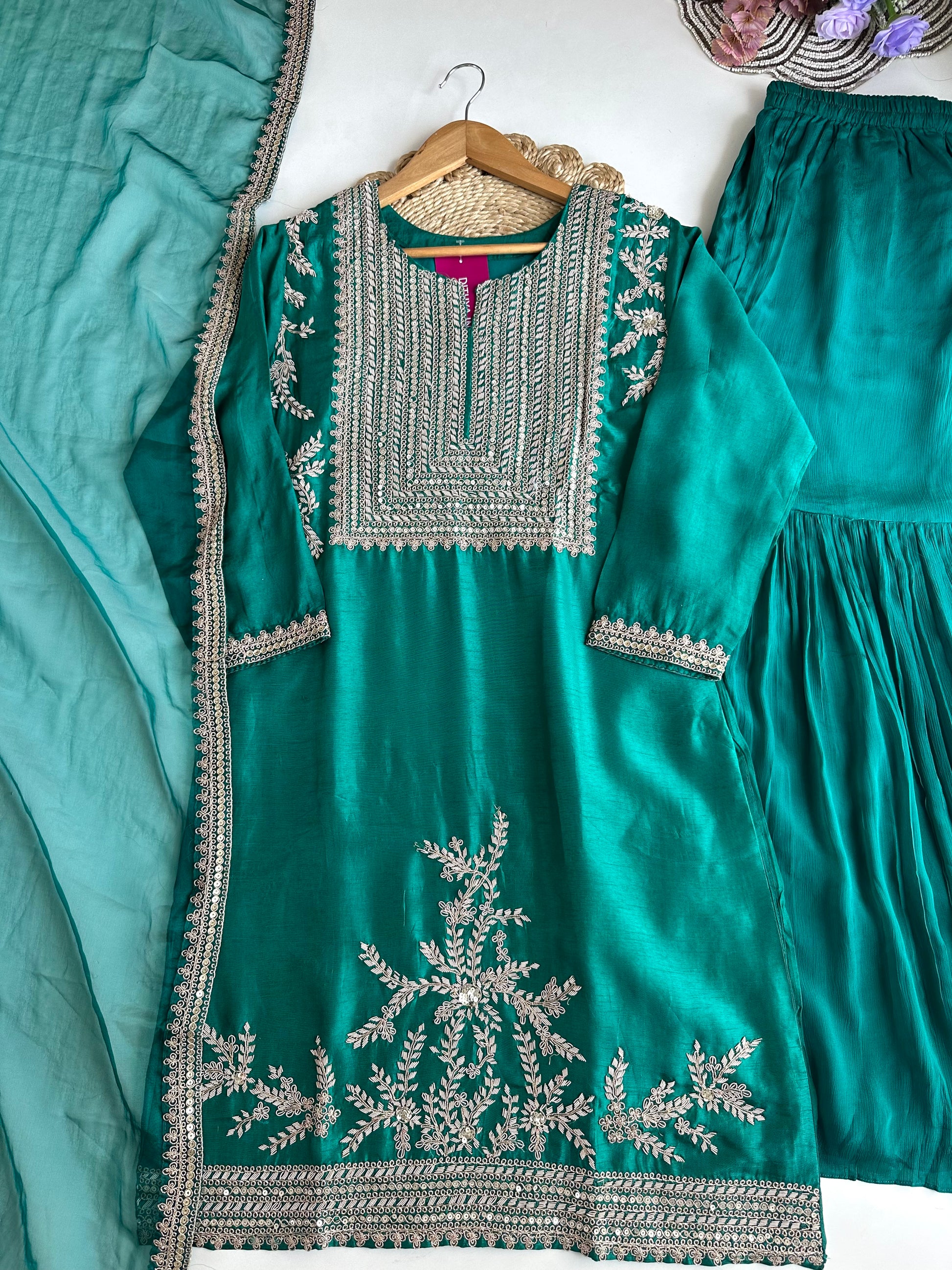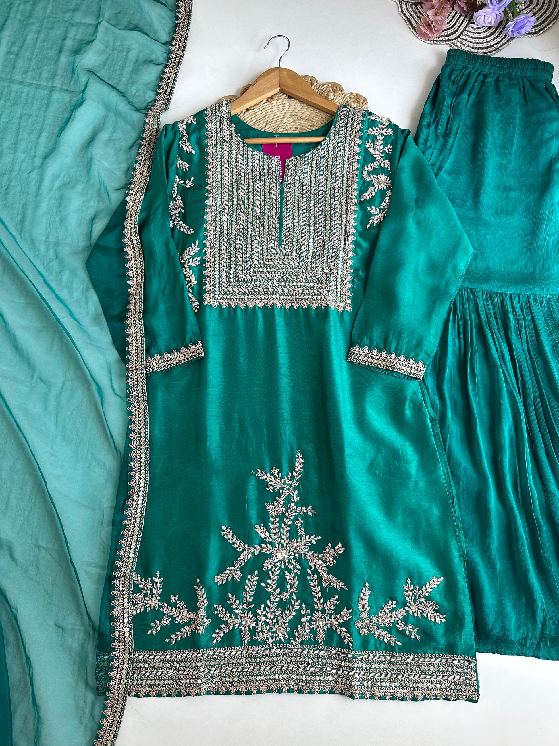 K199 - Russian silk handwork Kurti with sharara and dupatta