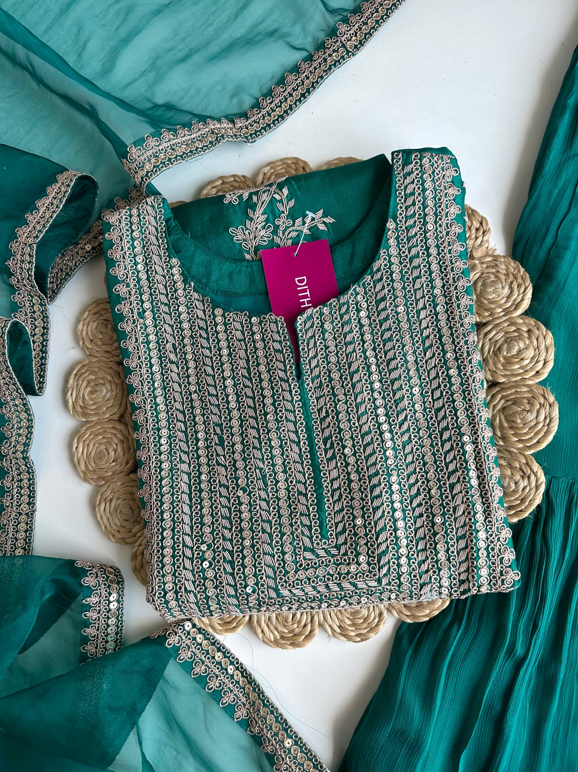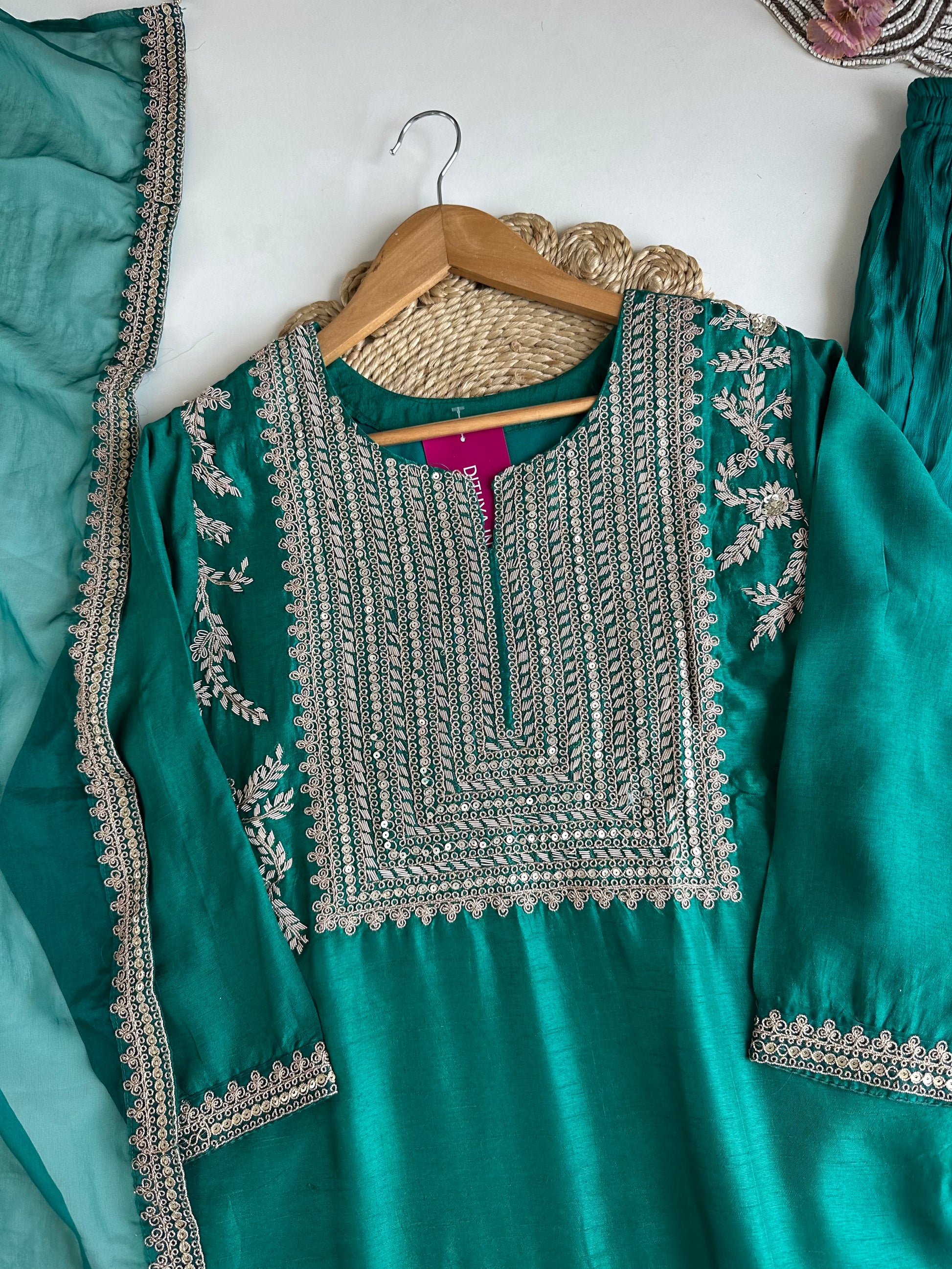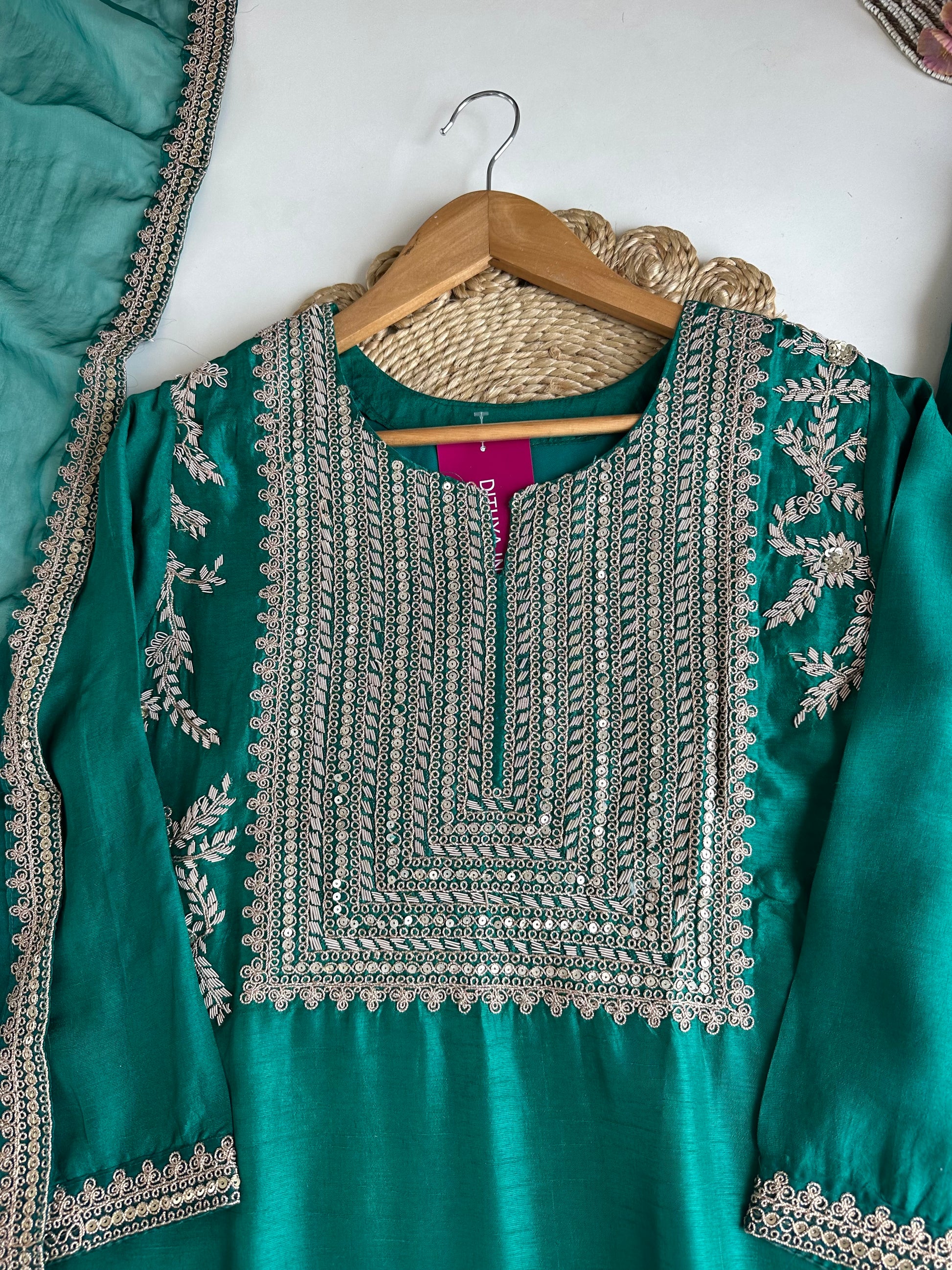 K199 - Russian silk handwork Kurti with sharara and dupatta