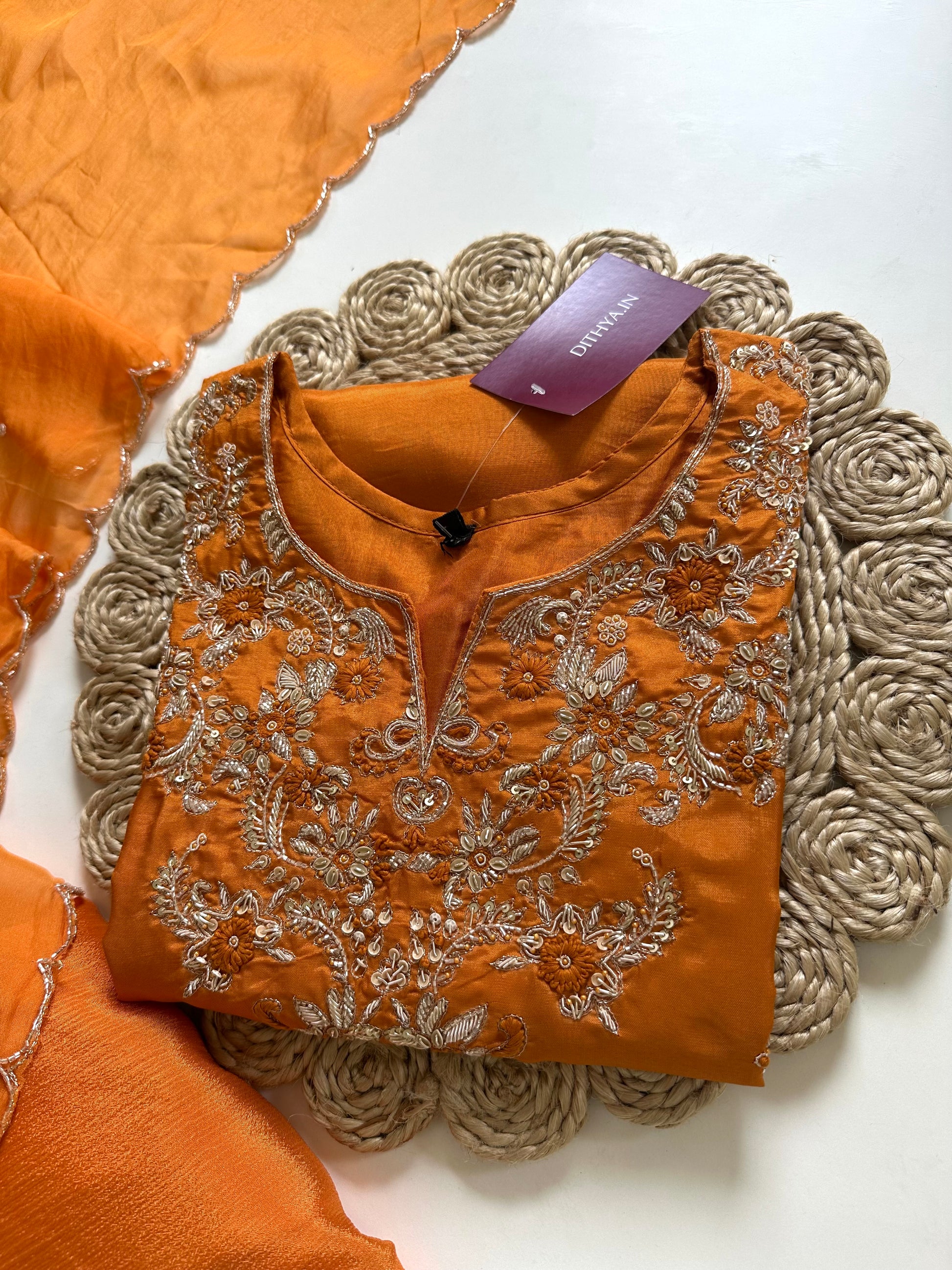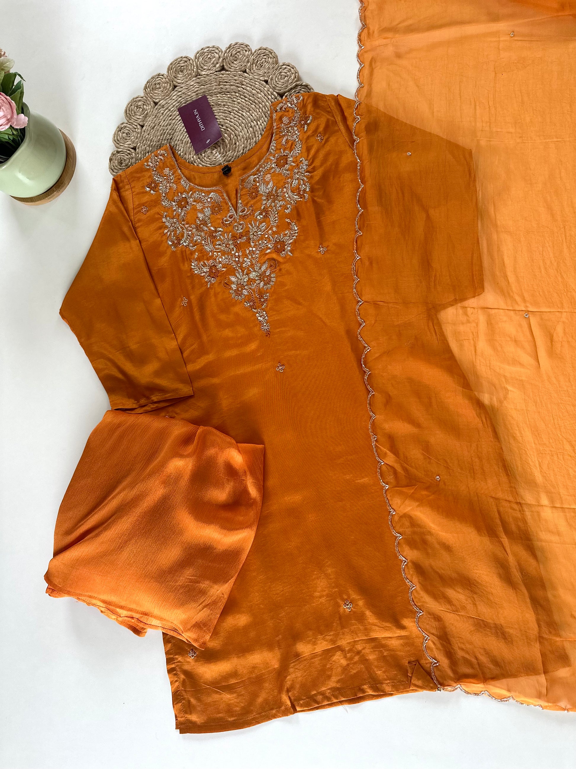 K051 - Russian silk handwork short kurti with sharara and dupatta