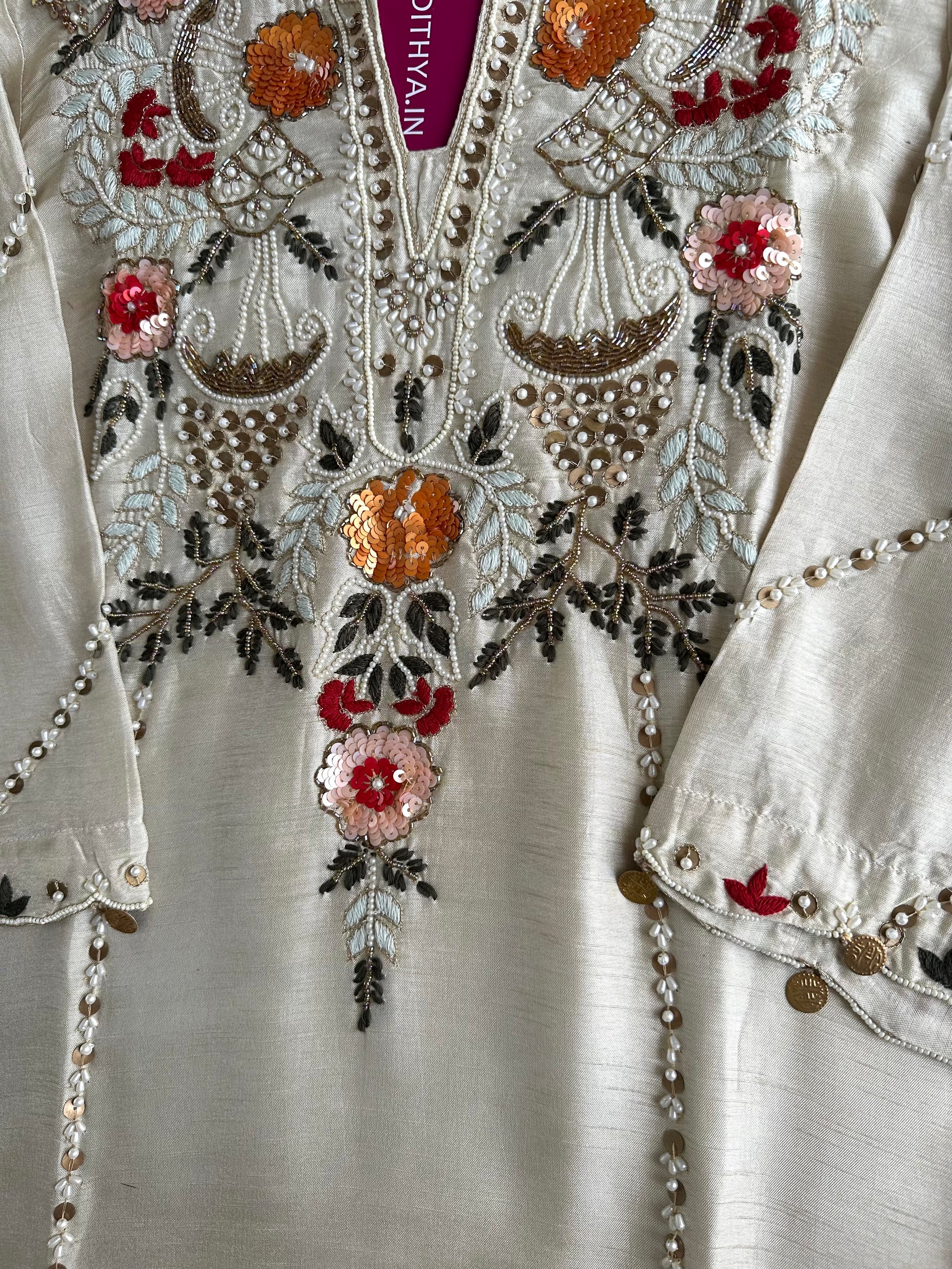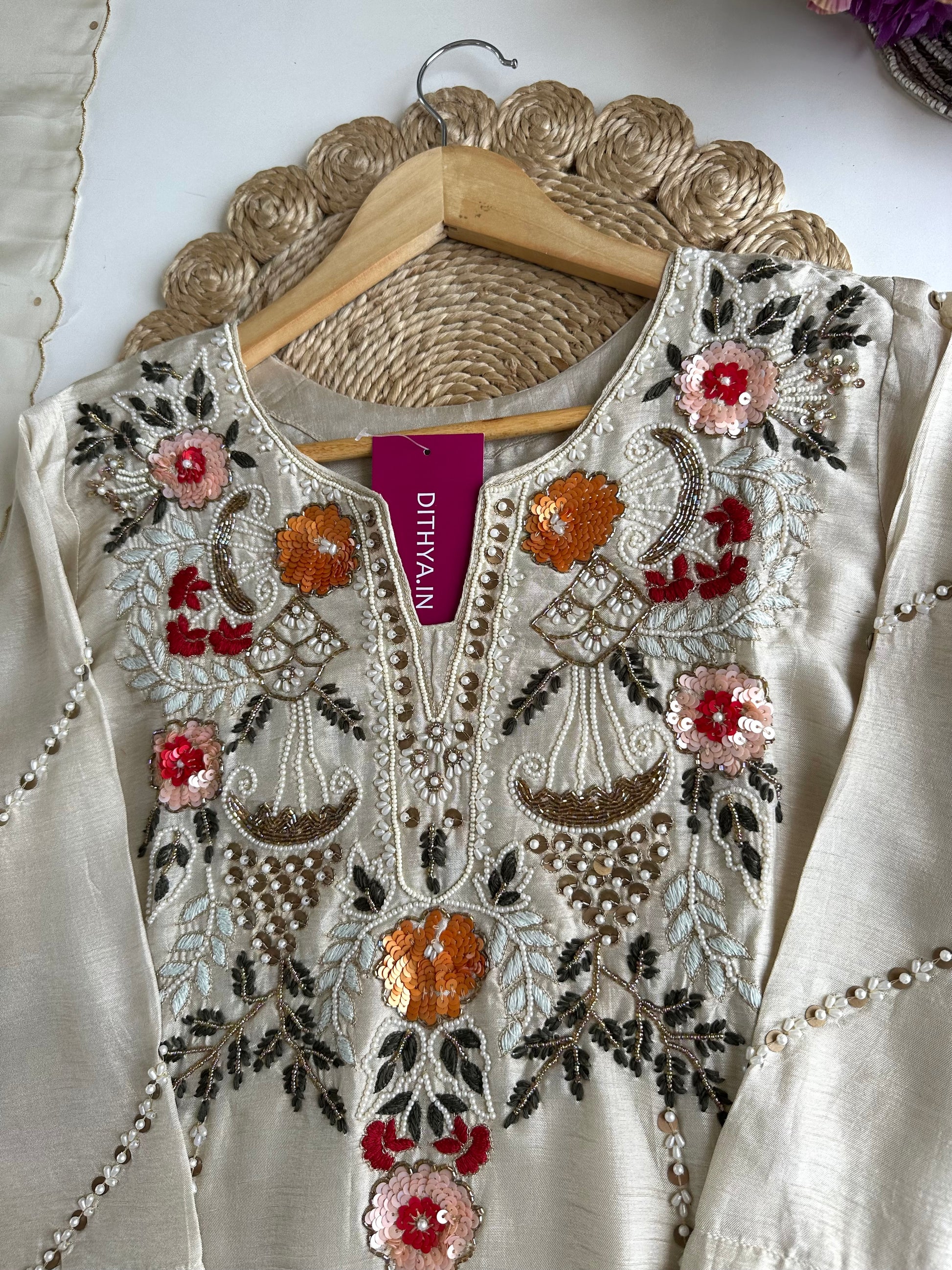 K332 - Russian silk handwork straight Kurti with pants and dupatta