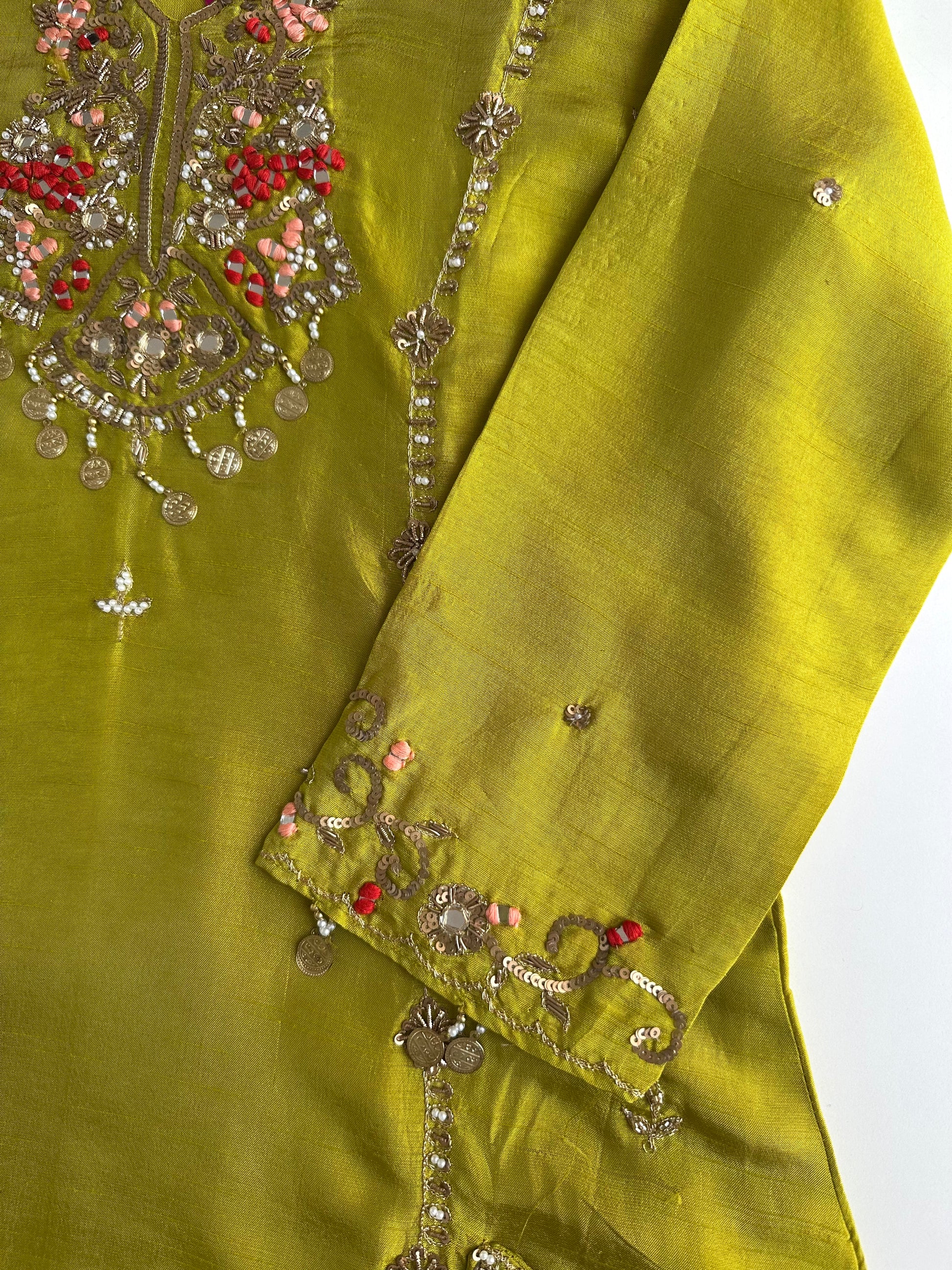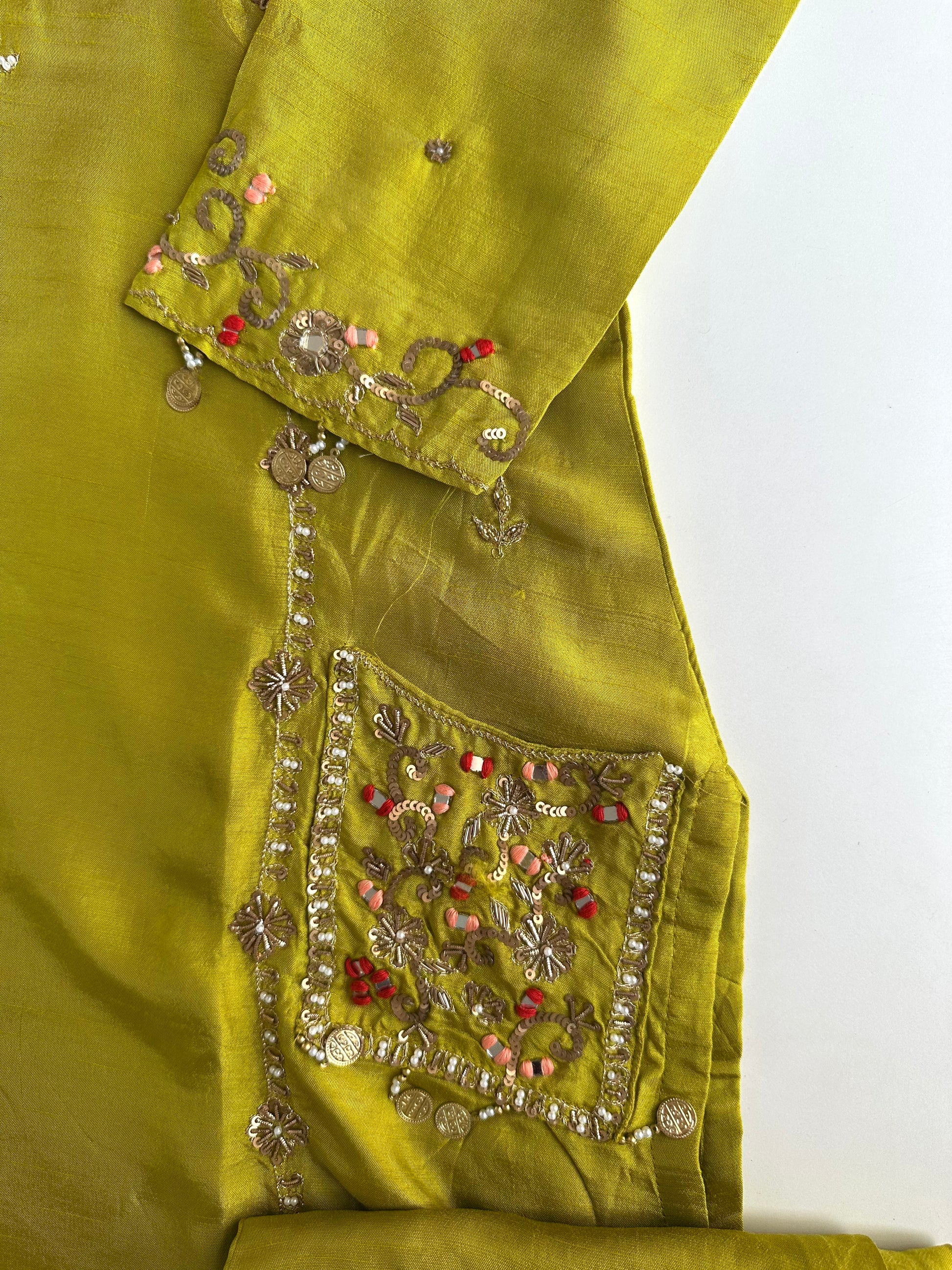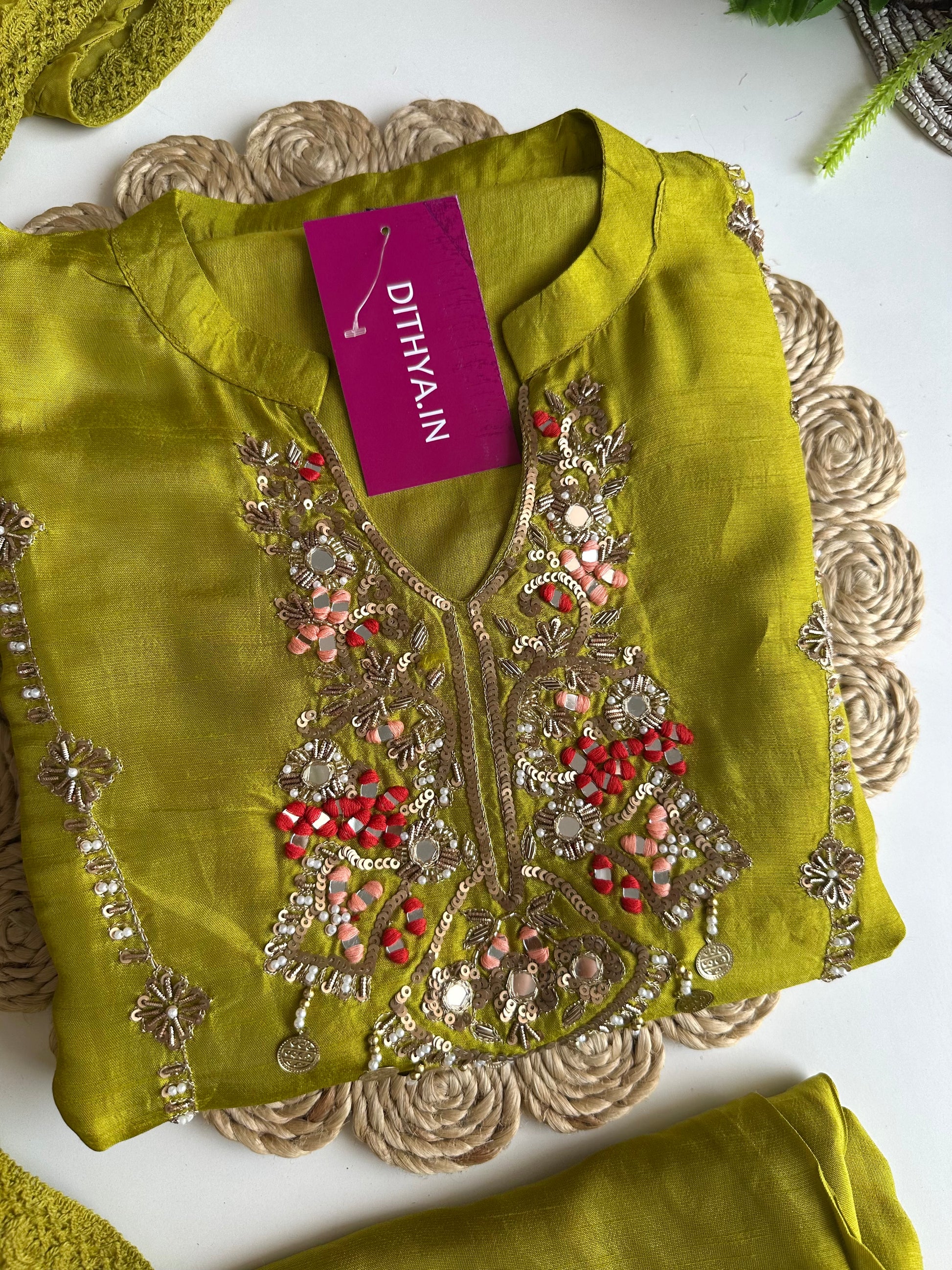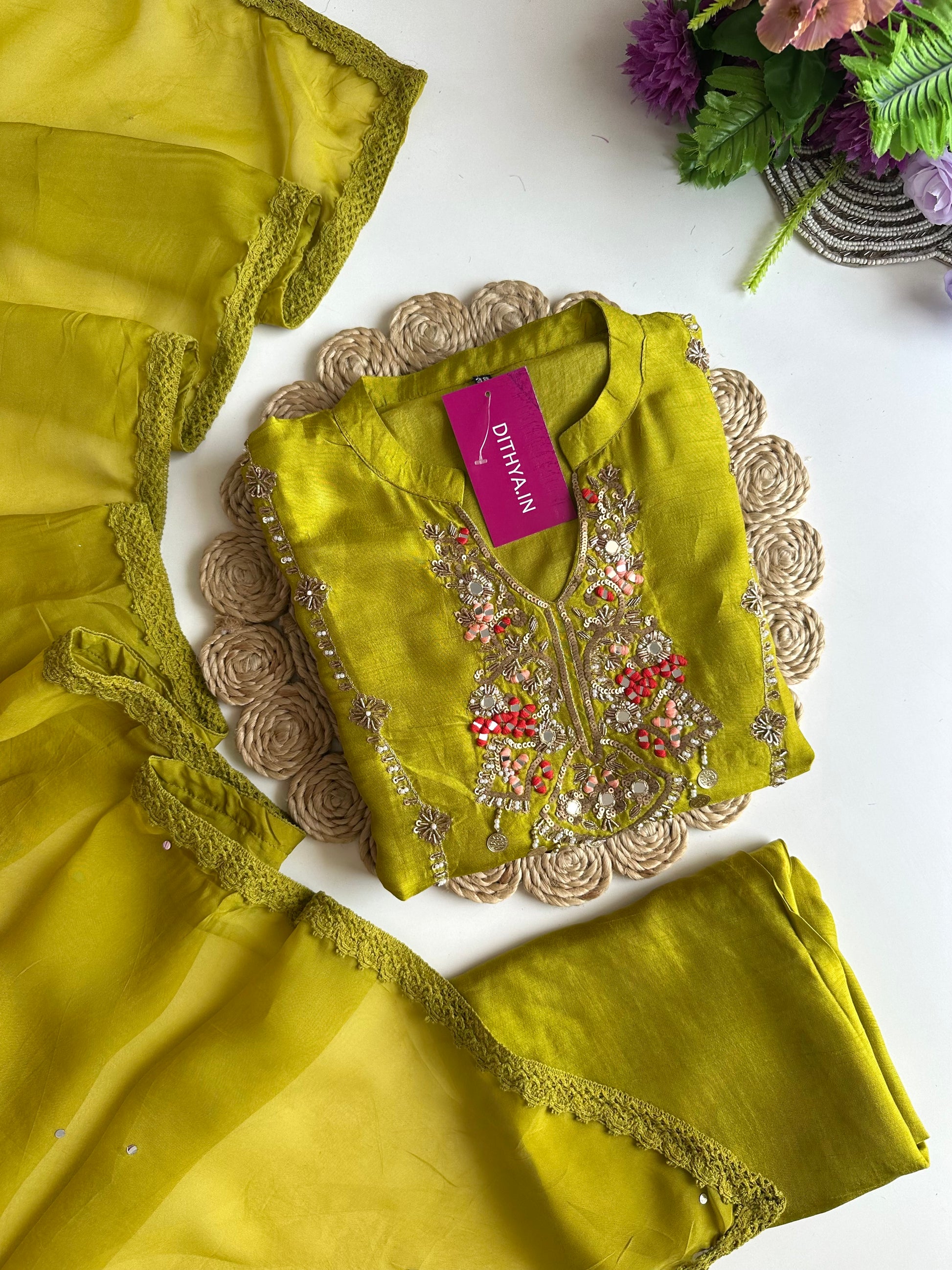 K146 - Russian silk handwork straight Kurti with pants and dupatta