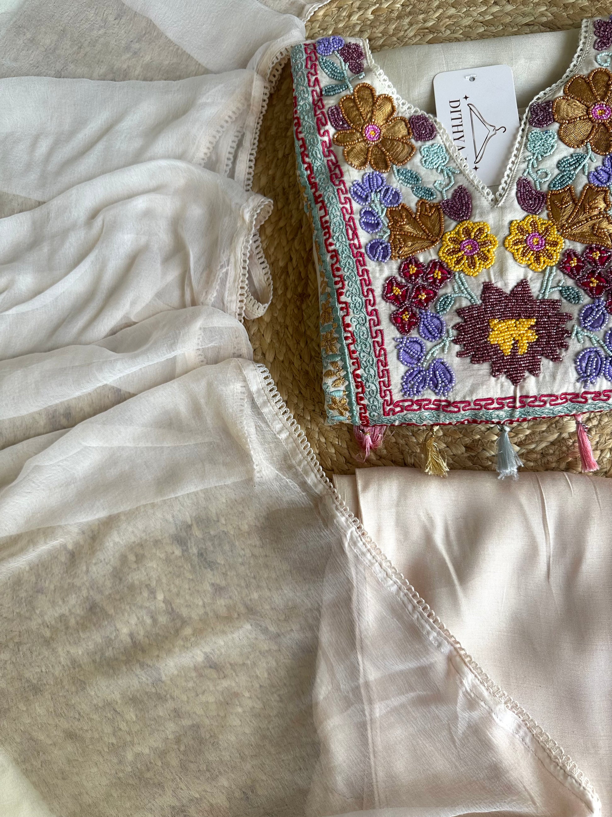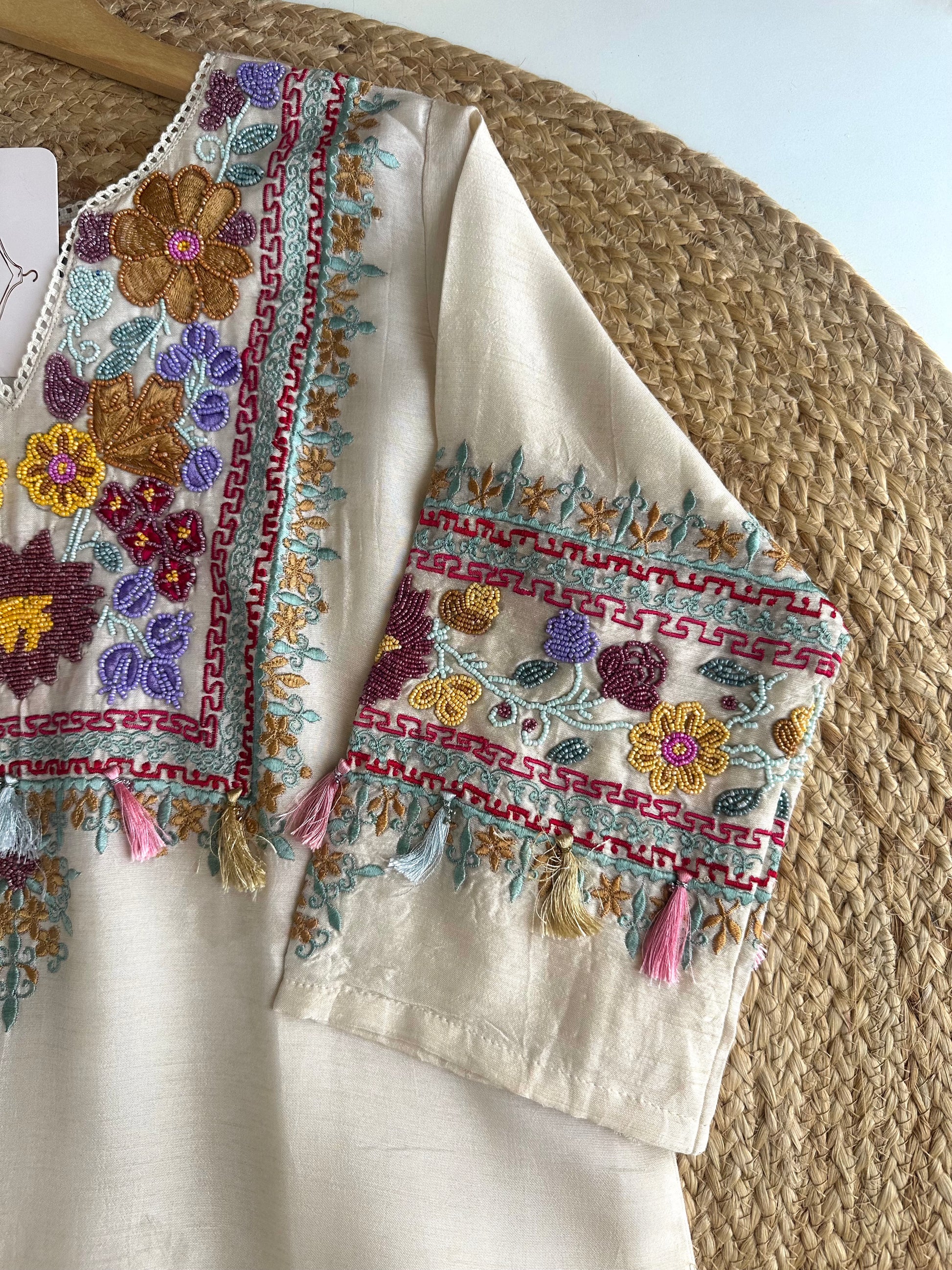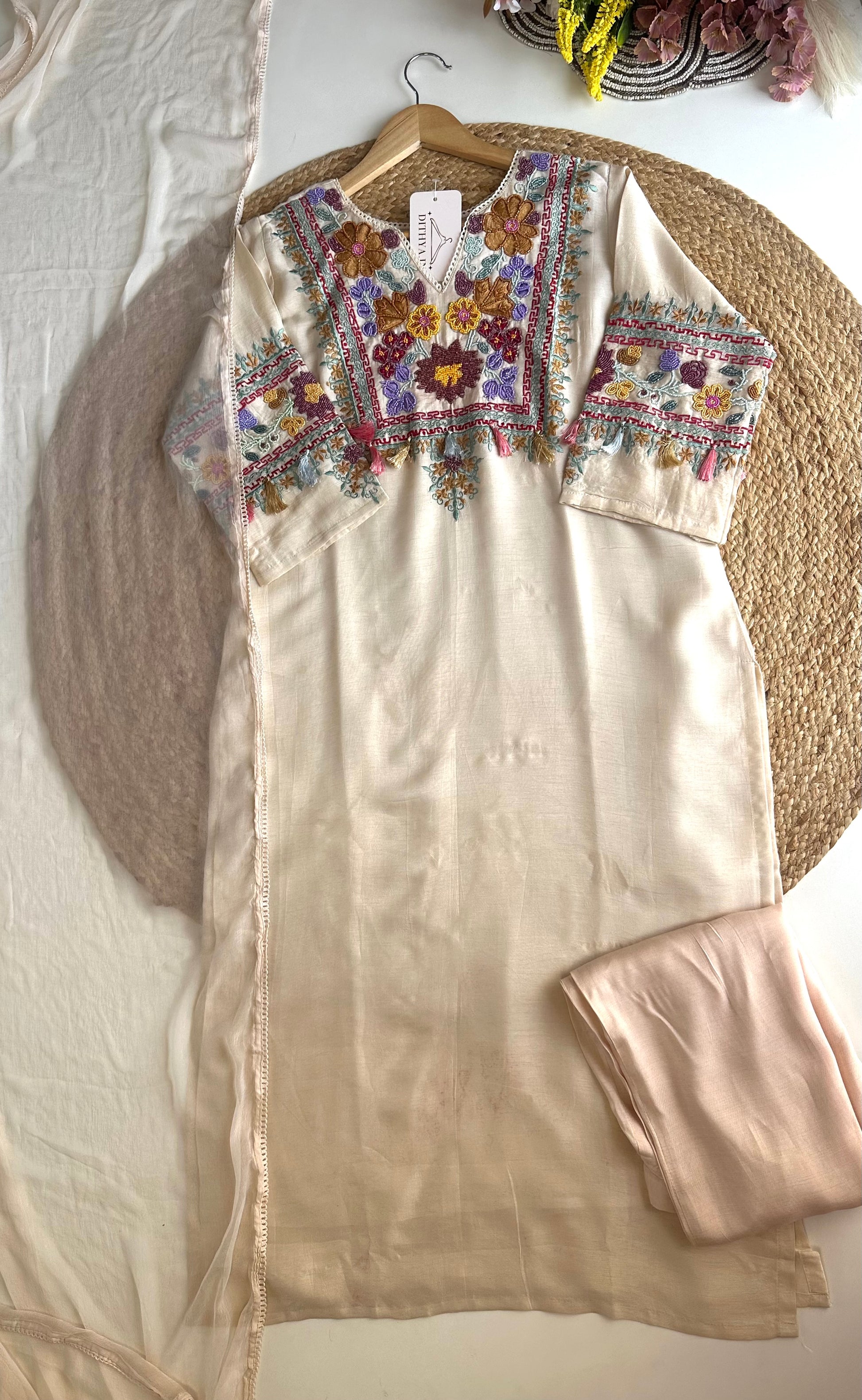 K461 - Russian silk handwork straight Kurti with pants and dupatta