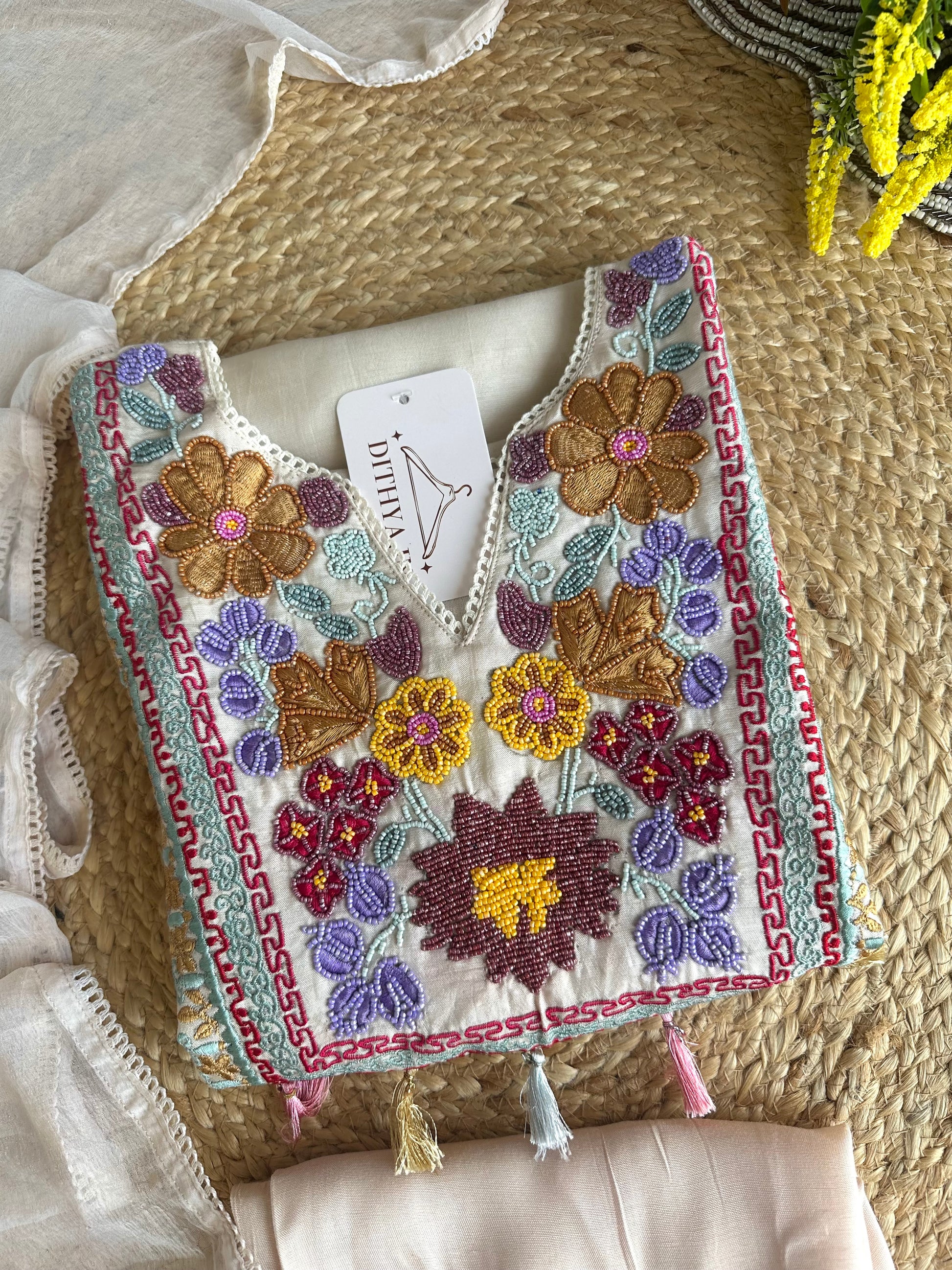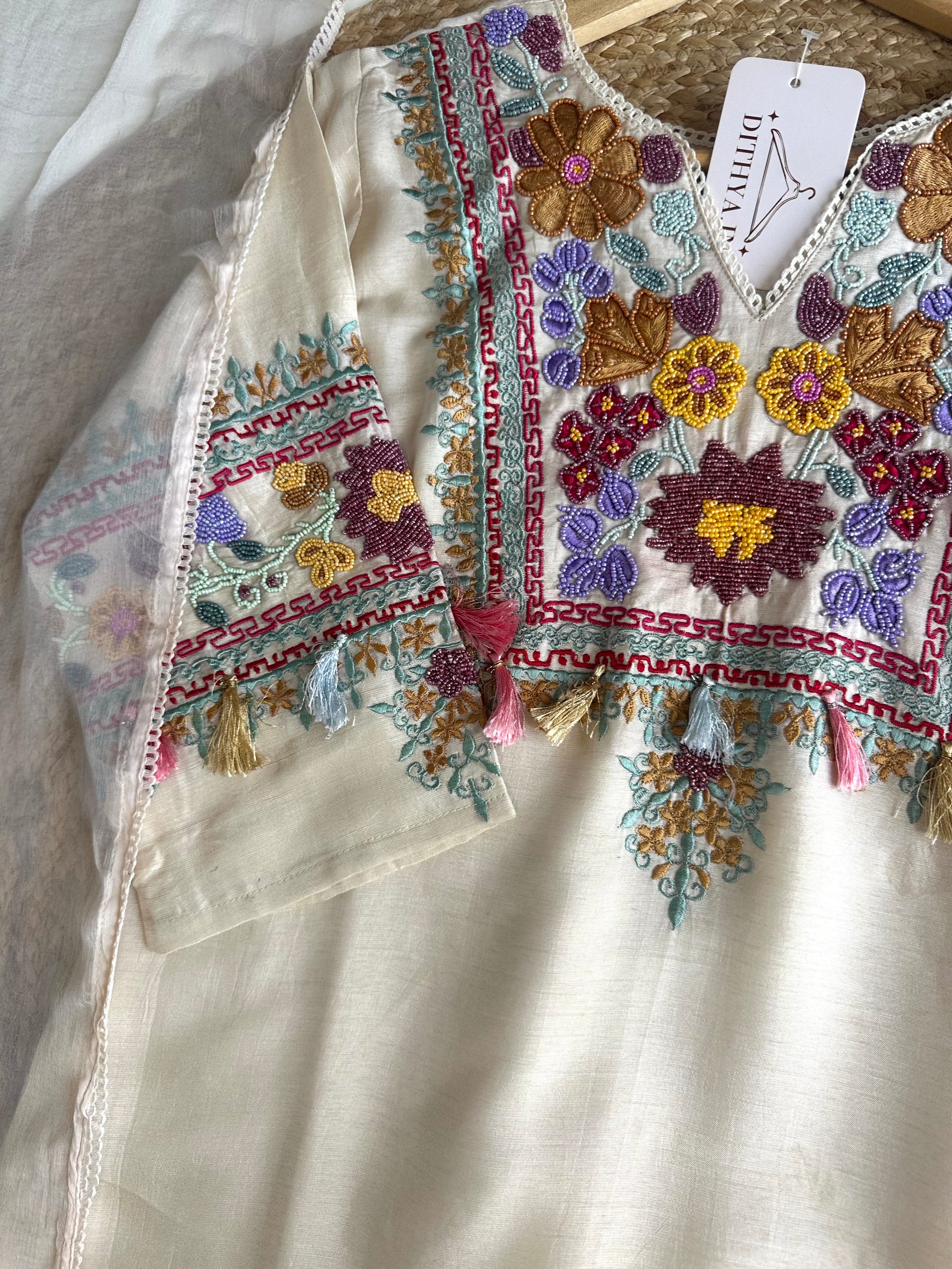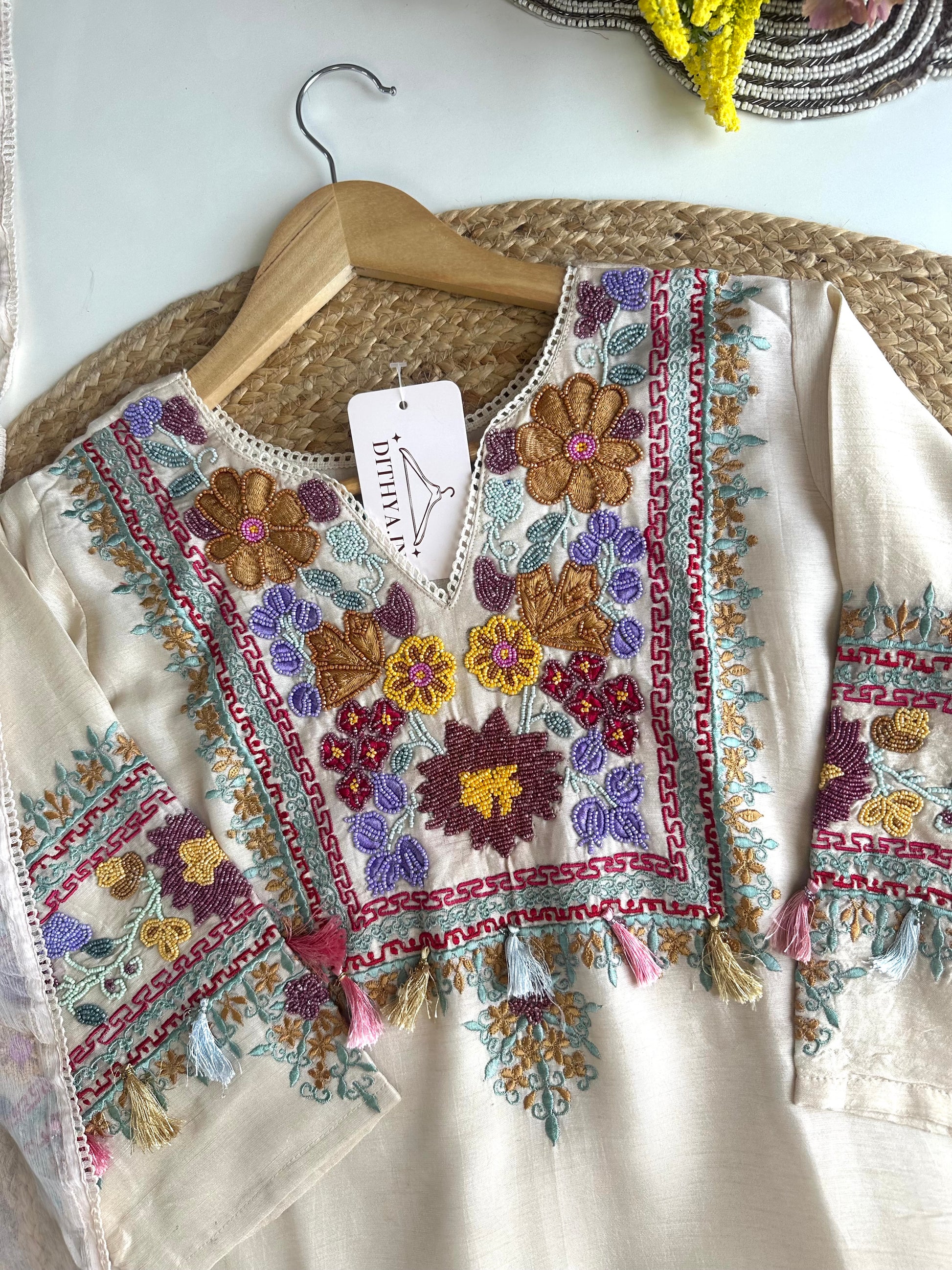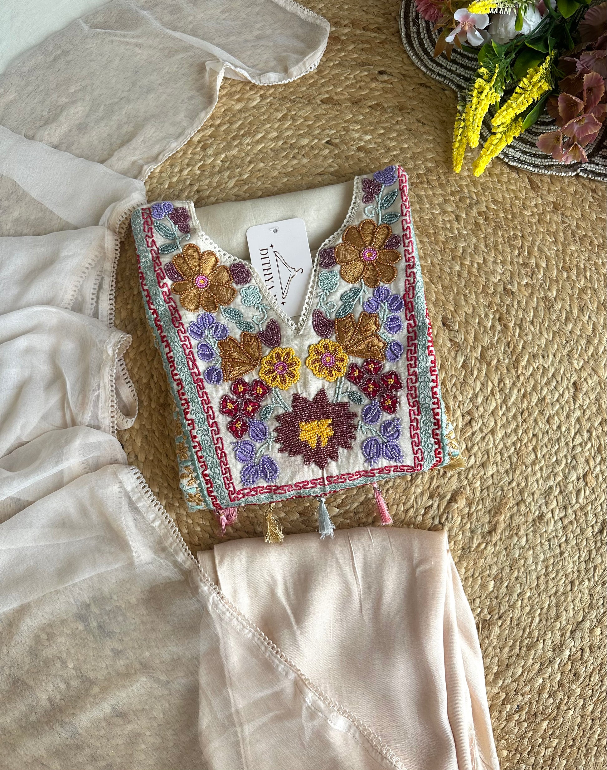 K461 - Russian silk handwork straight Kurti with pants and dupatta