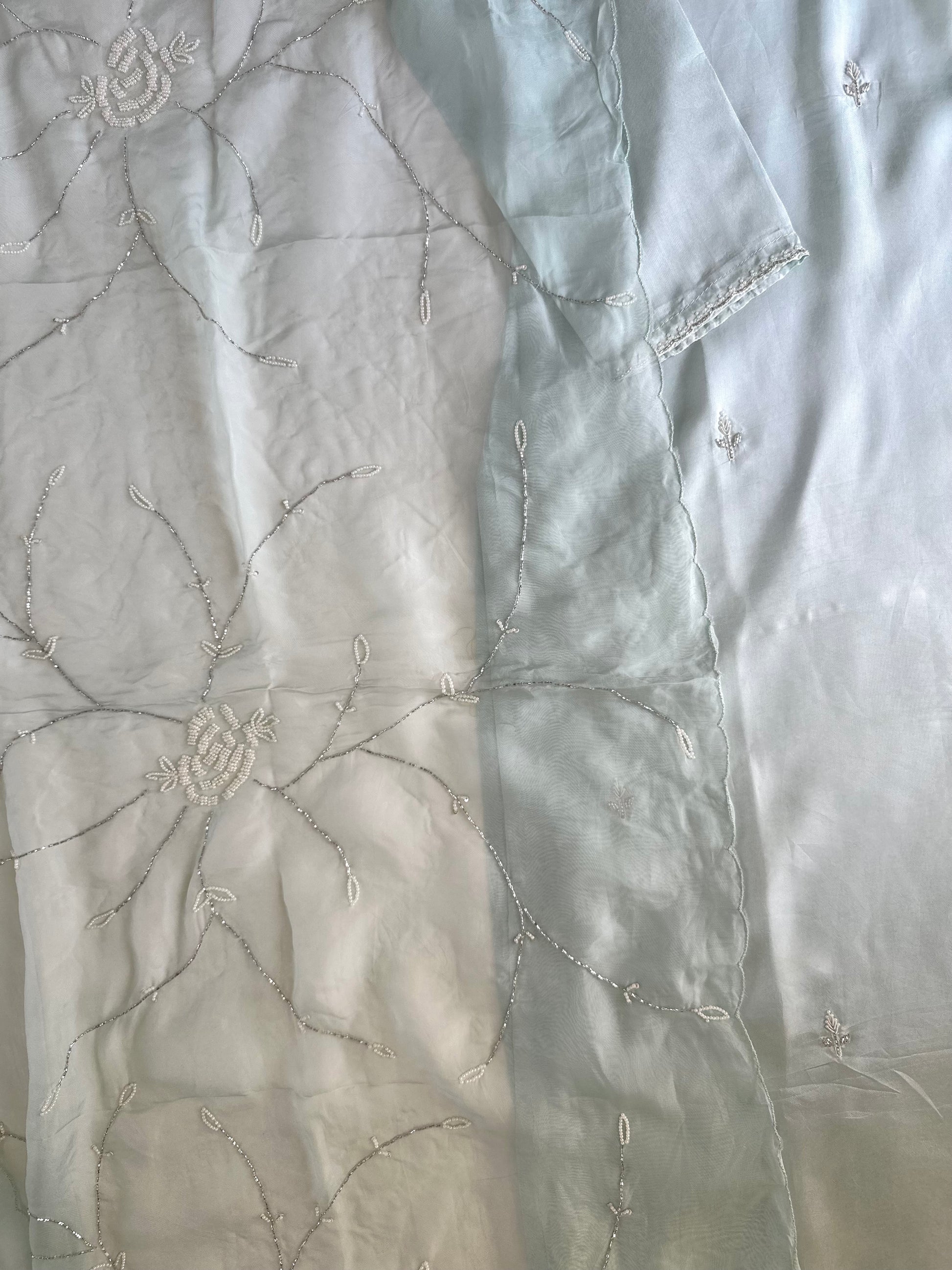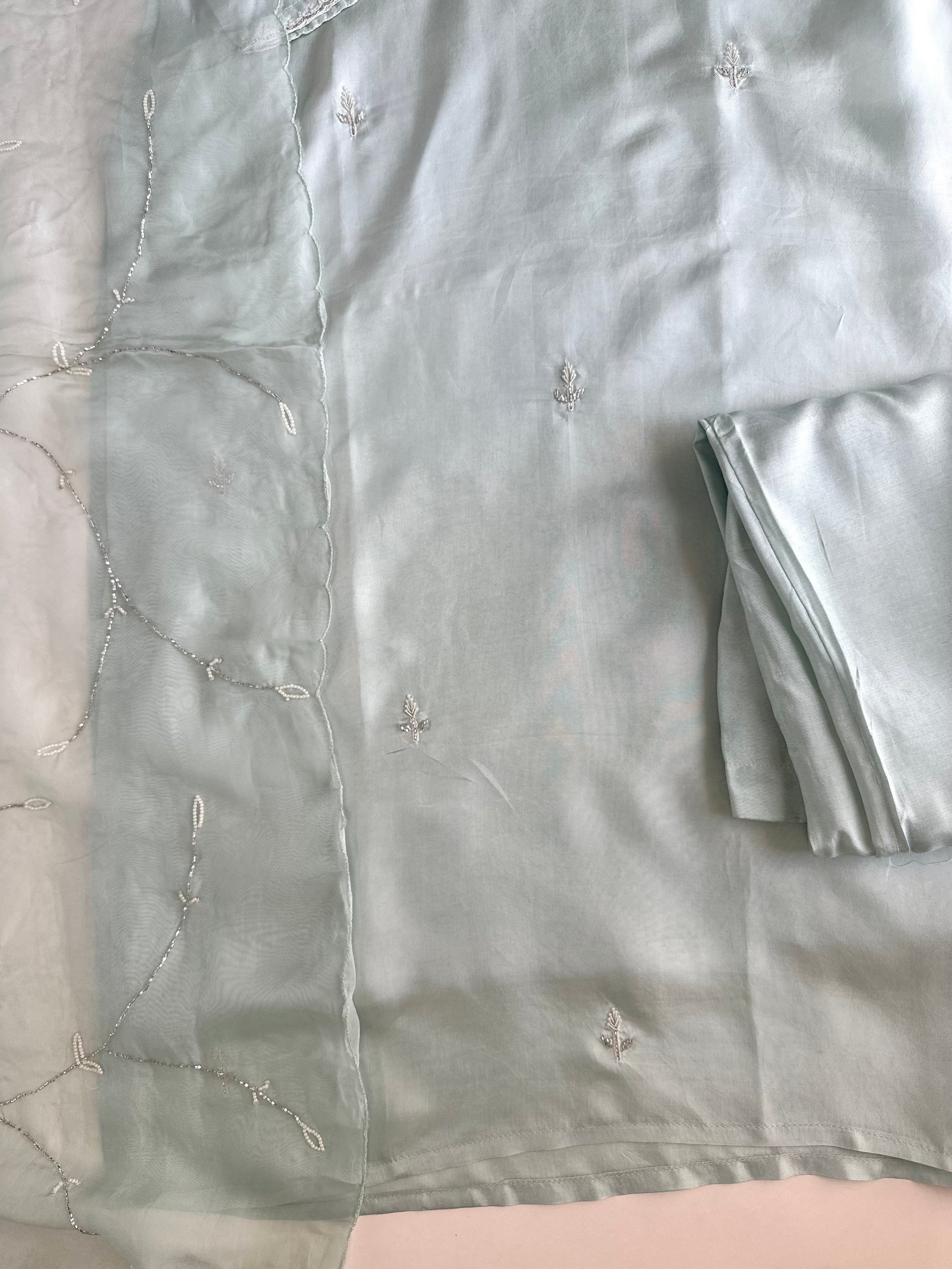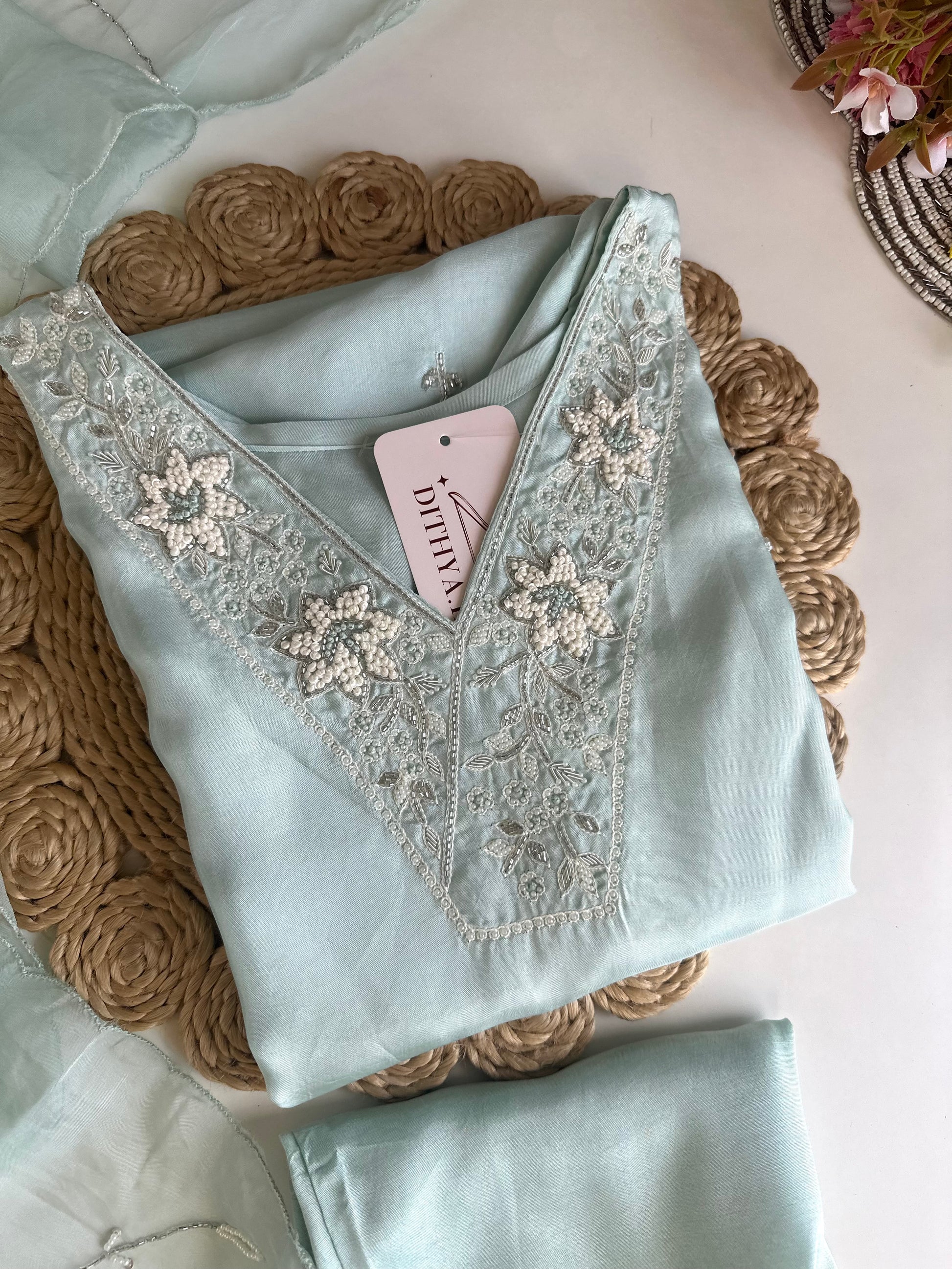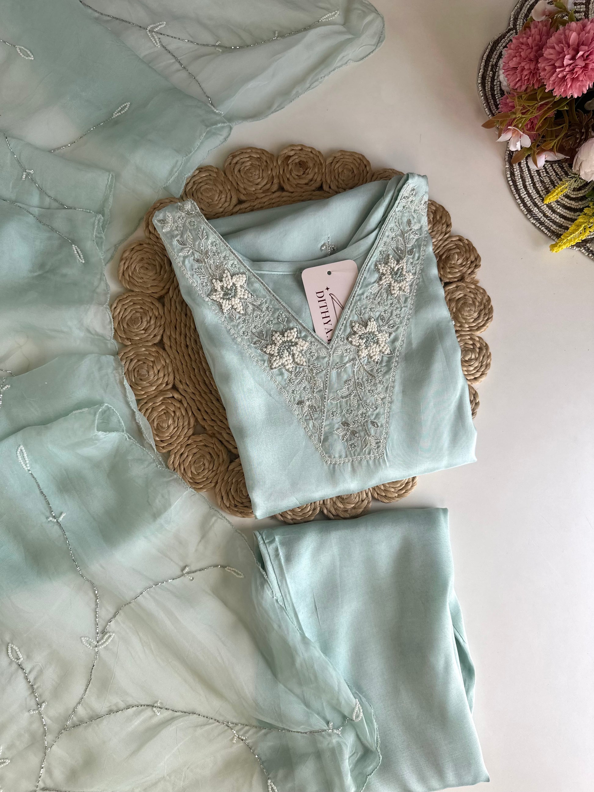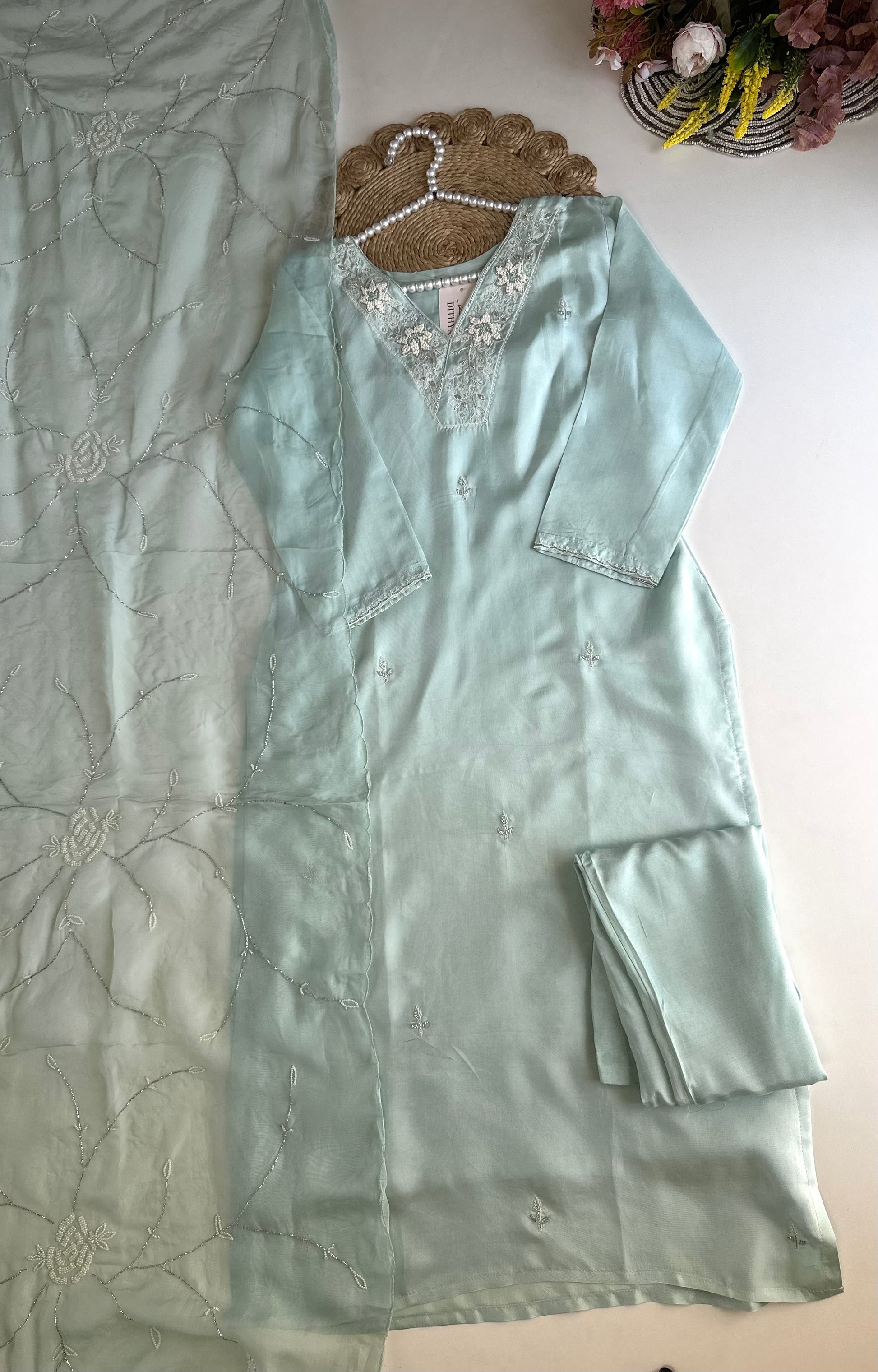 K472 - Russian silk handwork straight Kurti with pants and dupatta