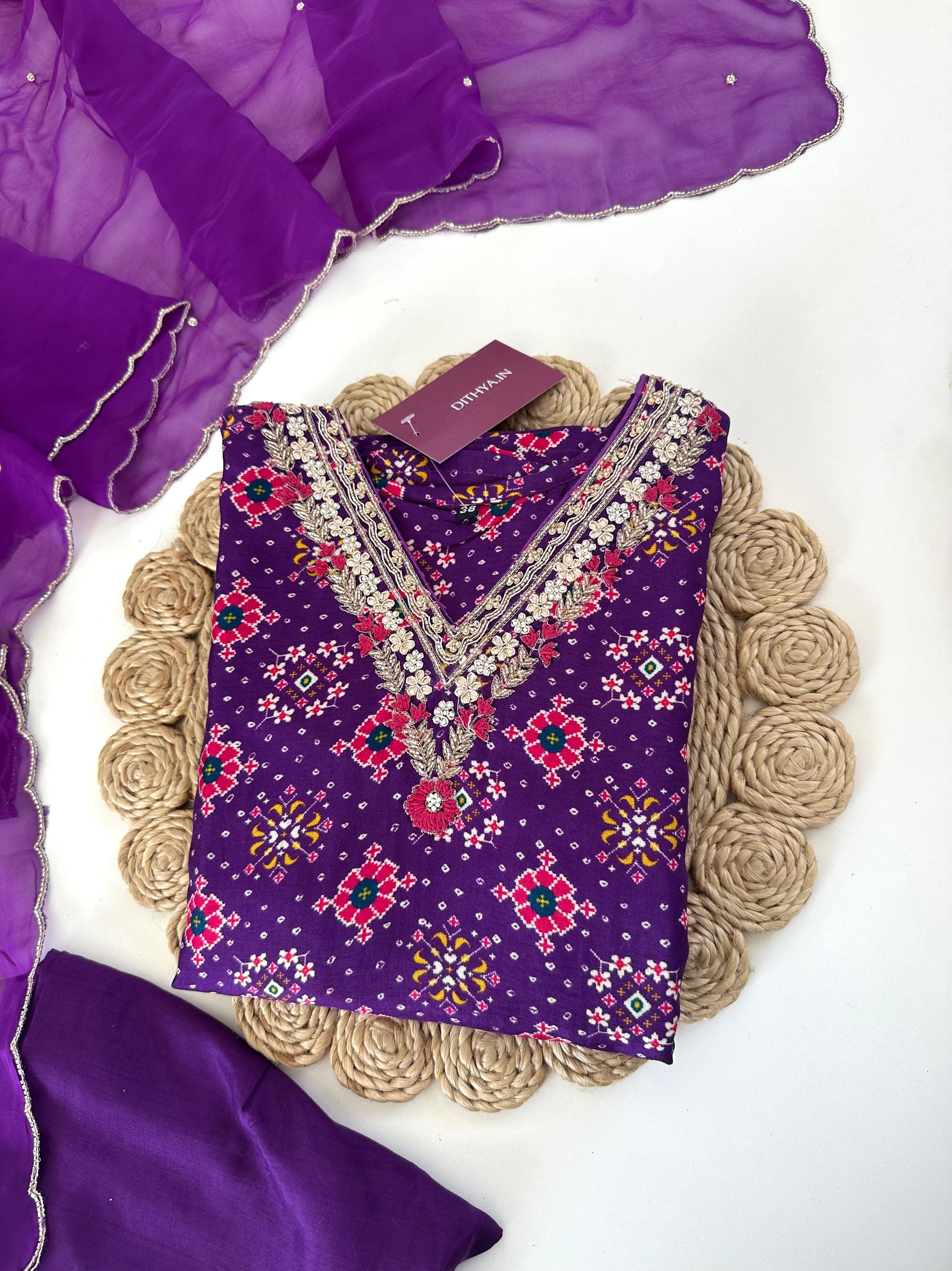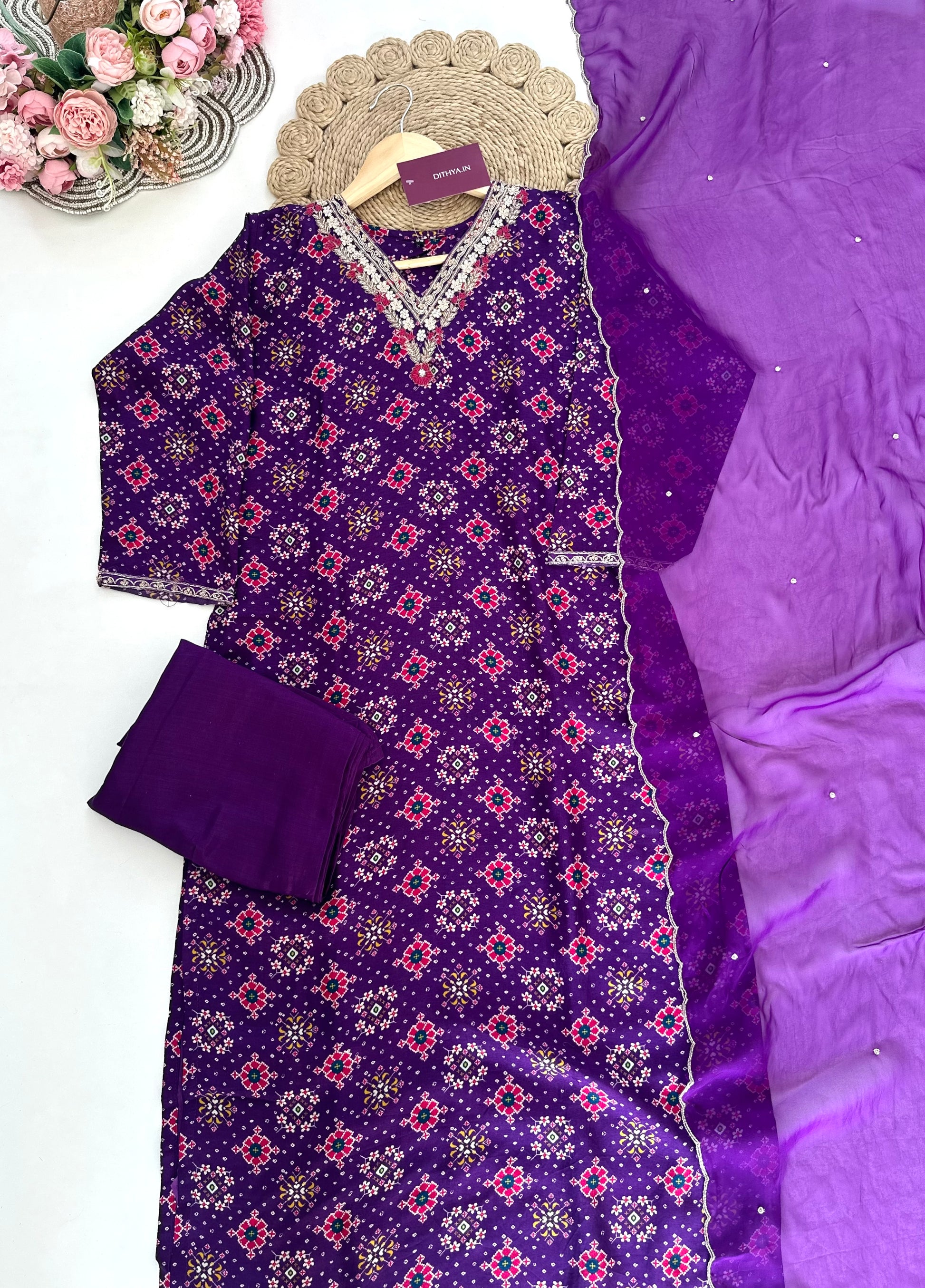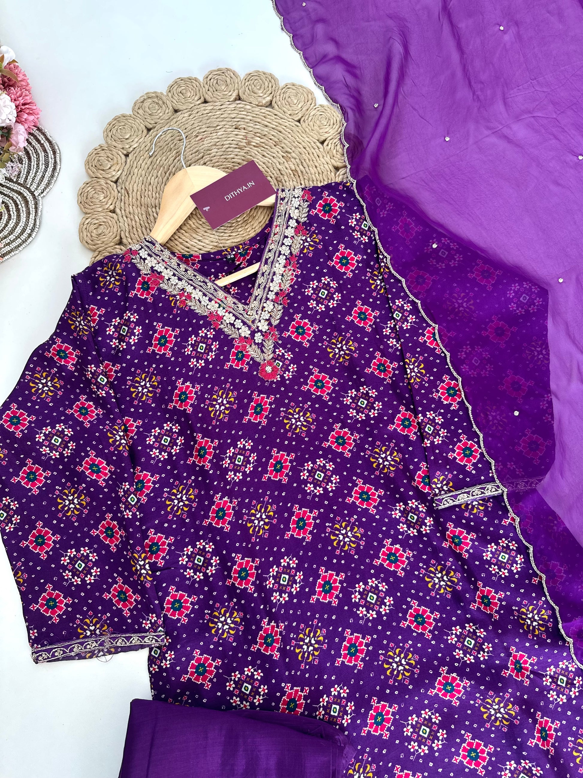 Experience elegance and comfort with our Patola printed straight kurti paired with flattering pants and a luxurious dupatta. Made from Russian silk, this outfit boasts a unique Patola print, adding a touch of sophistication to your wardrobe. Perfect for any occasion, this set will make you stand out with its timeless design.