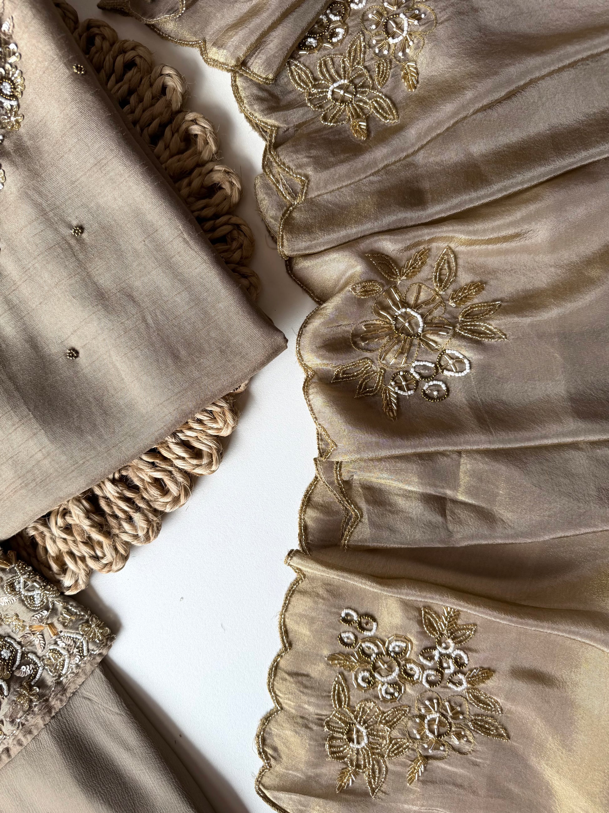 K419 - Russian silk short Kurti with palazzo and tissue silk dupatta