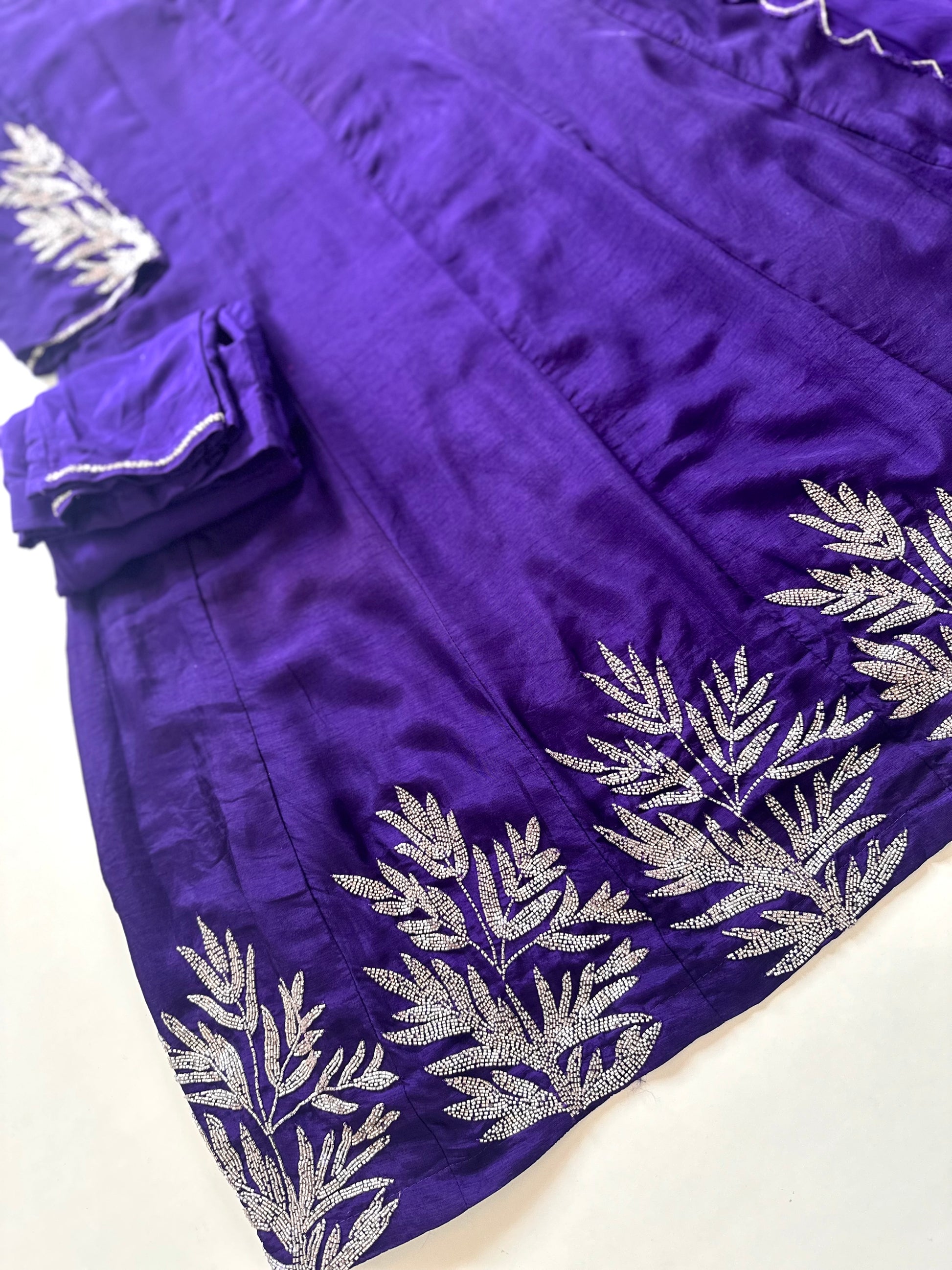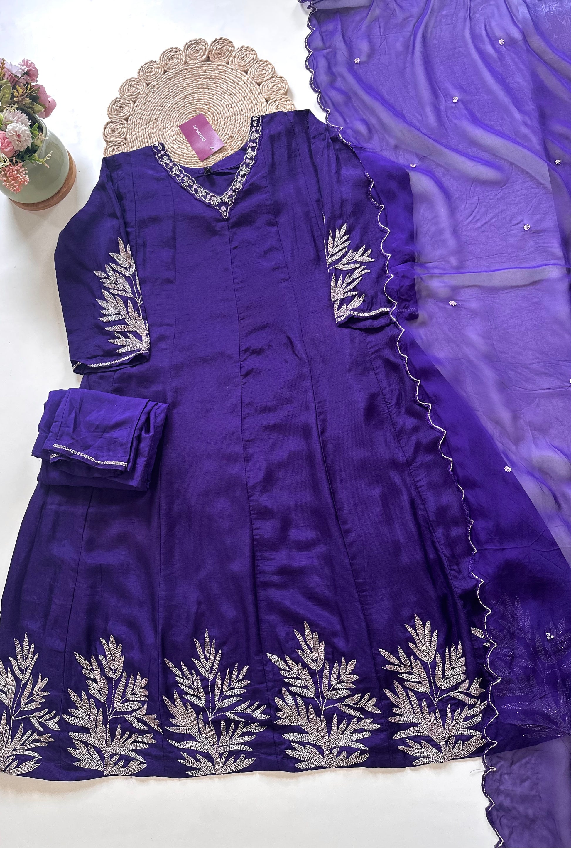 K113 - Russian silk Zardosi work Anarkali with pants and dupatta .