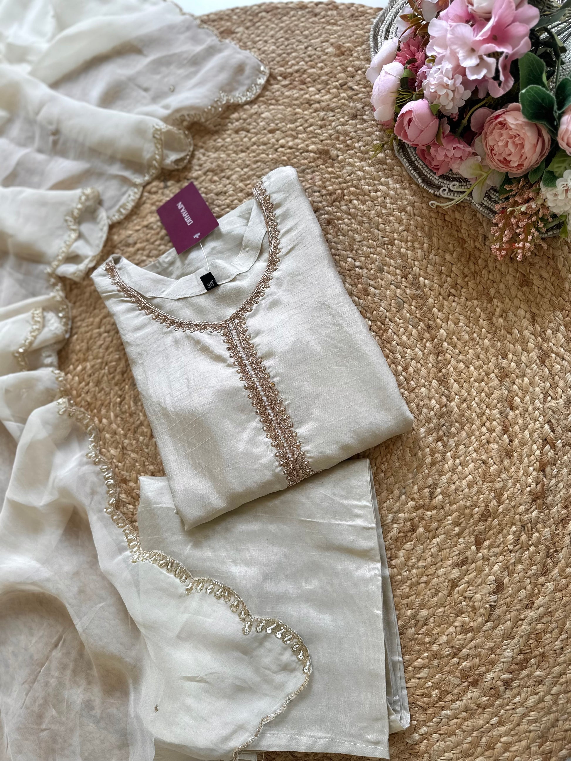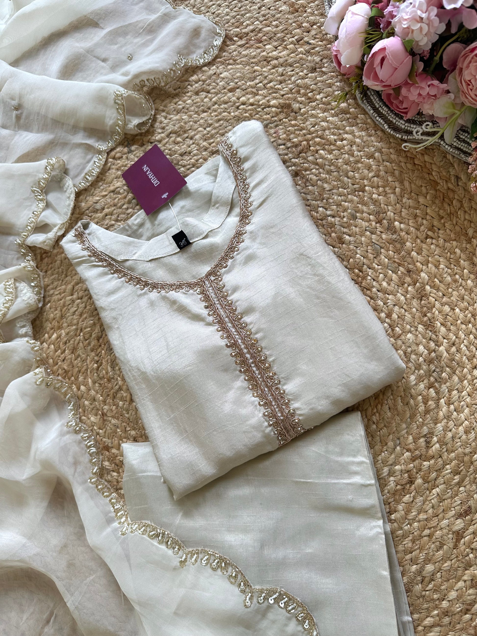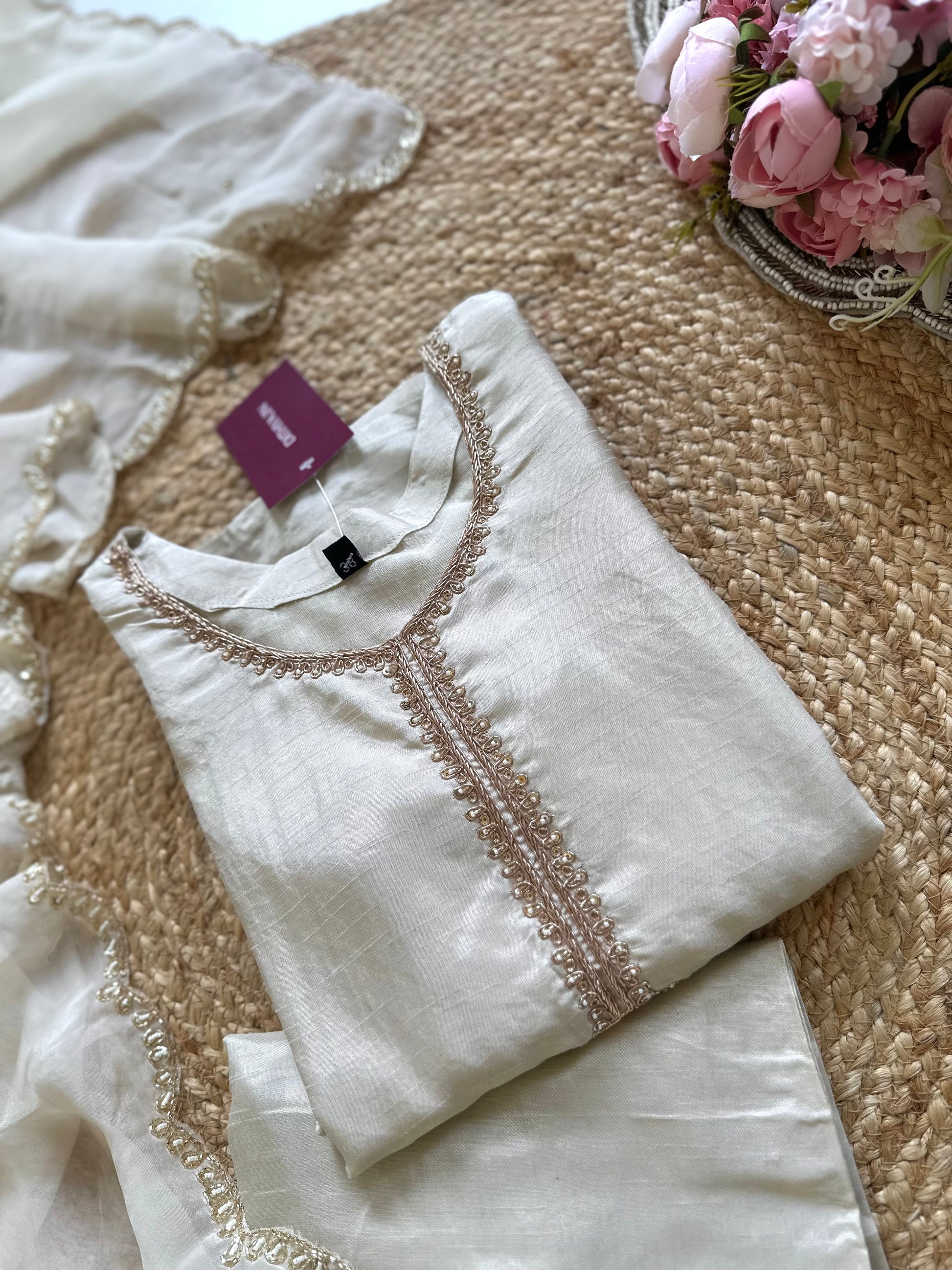 K224 - Russian silk Zardosi work straight kurti with palazzo and dupatta .