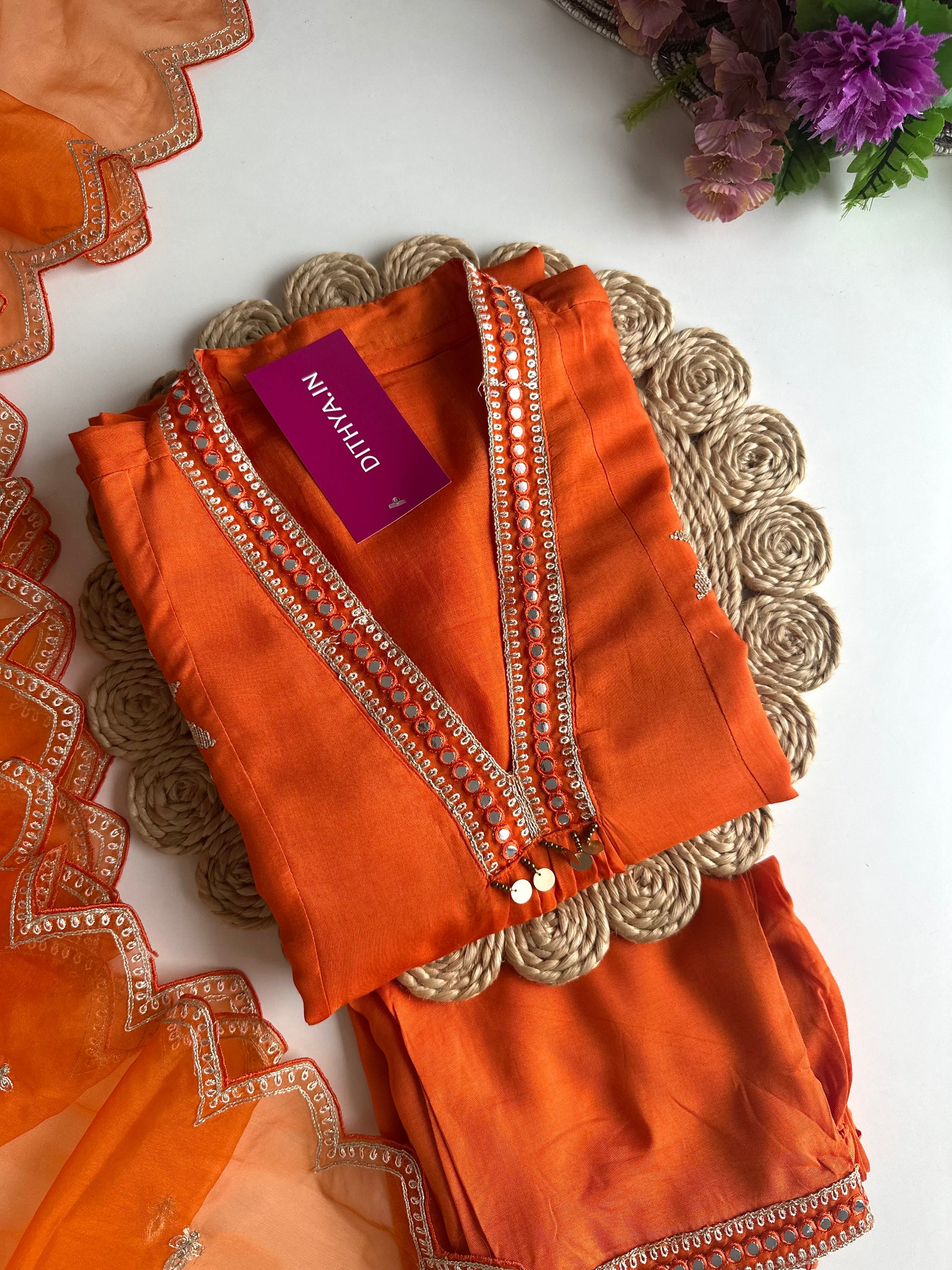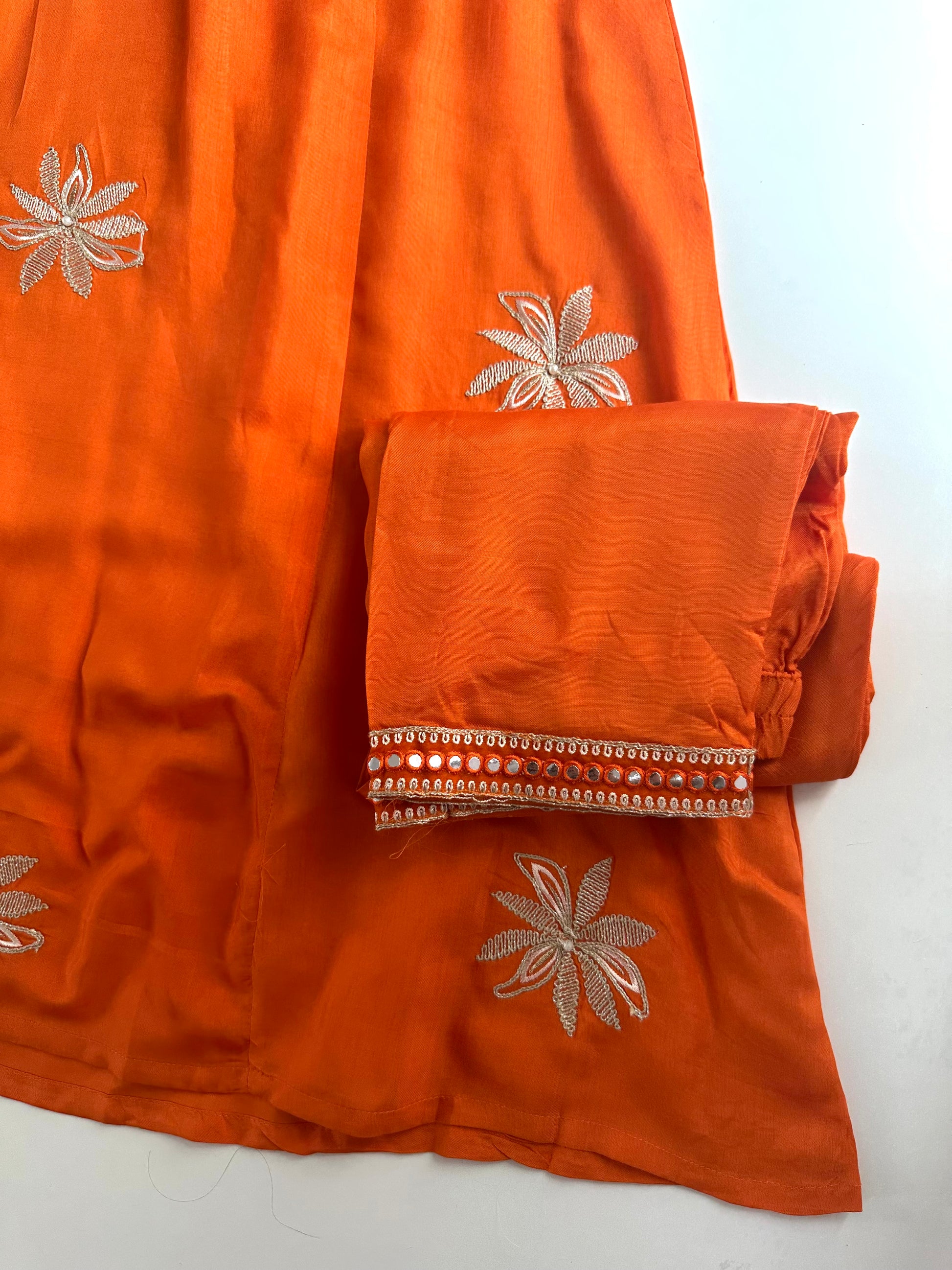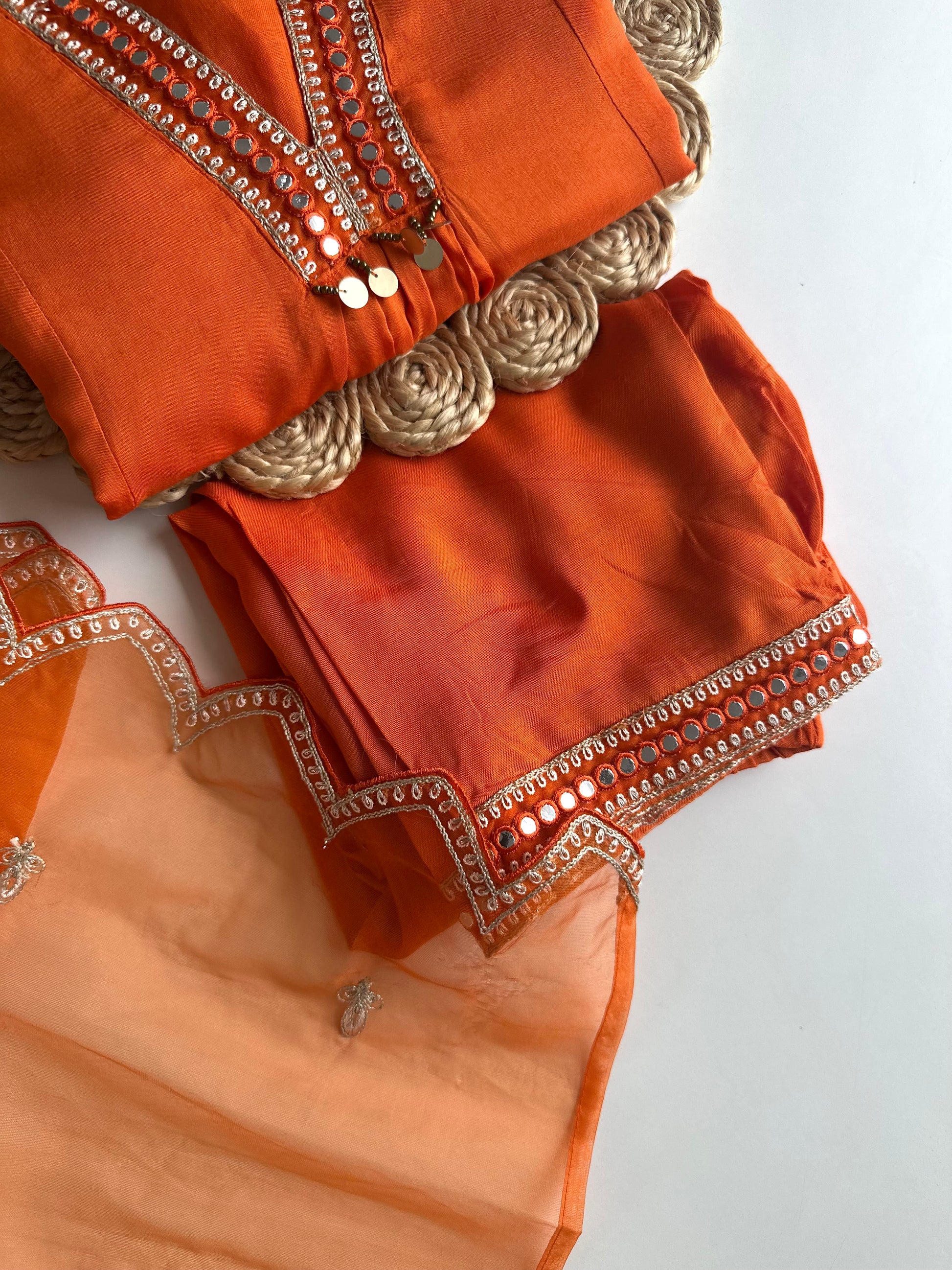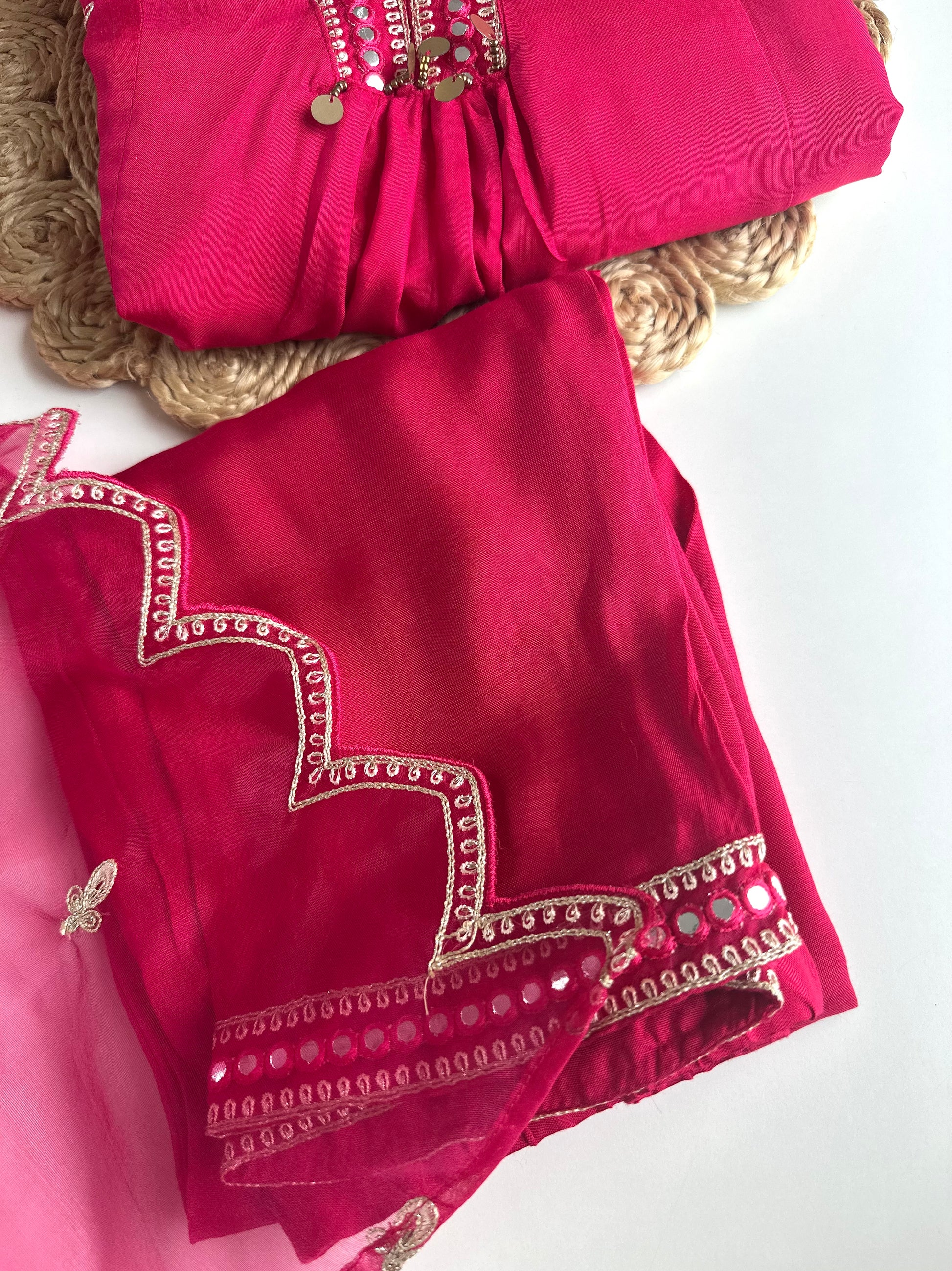 This exquisite Russian silk zari Anarkali comes with a matching pair of pants and dupatta, available in two stunning colours. The intricate zari work adds a touch of elegance to this traditional ensemble. Perfect for special occasions, this outfit is designed to make you stand out in a crowd.