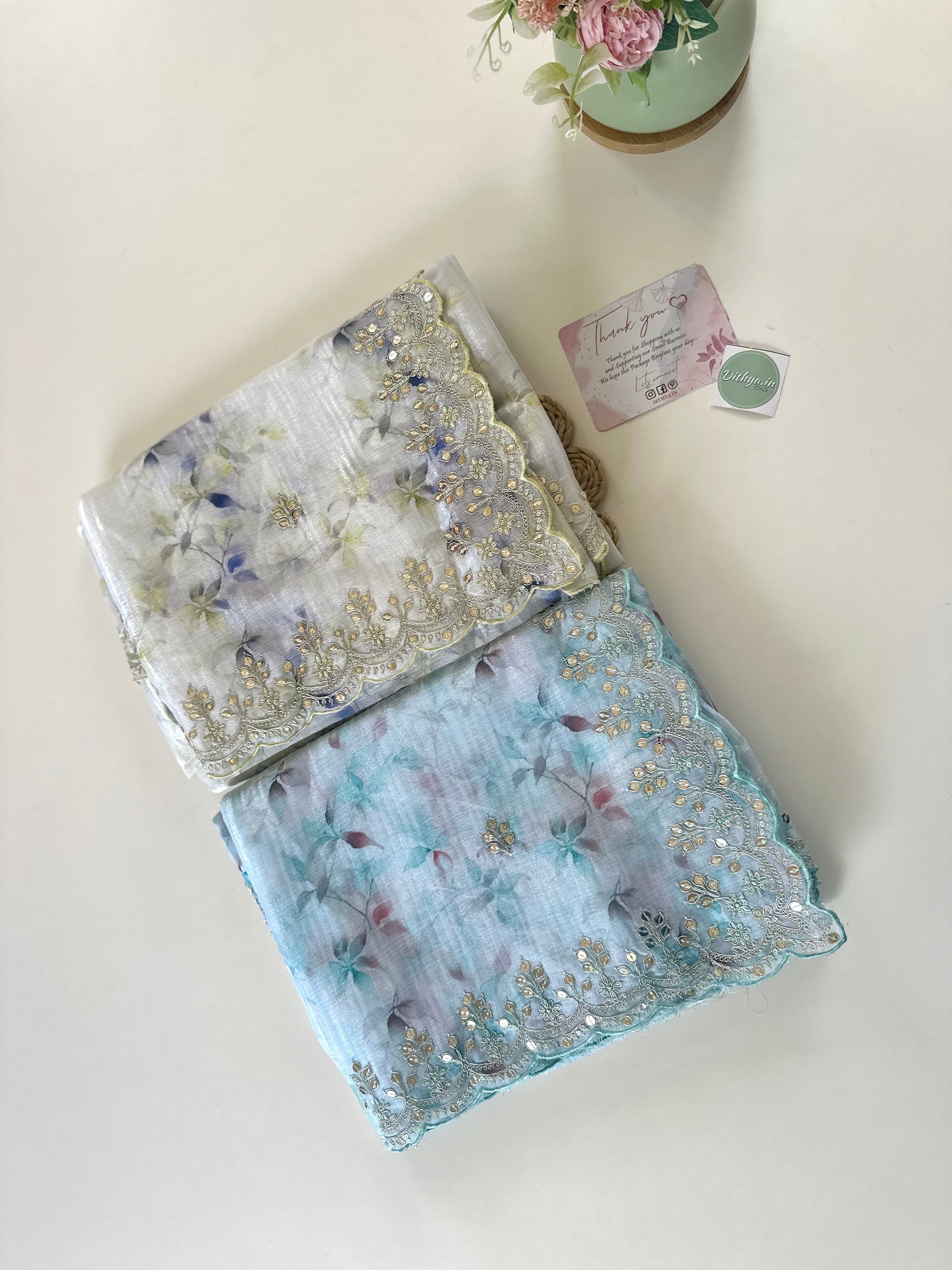 These stunning Floral Organza Sarees come in 2 beautiful colours. Made from high-quality fabric, they offer a light and airy texture that is perfect for any occasion. With a delicate floral pattern, these sarees exude elegance and grace. Elevate your style with 2 colour options that are sure to turn heads.