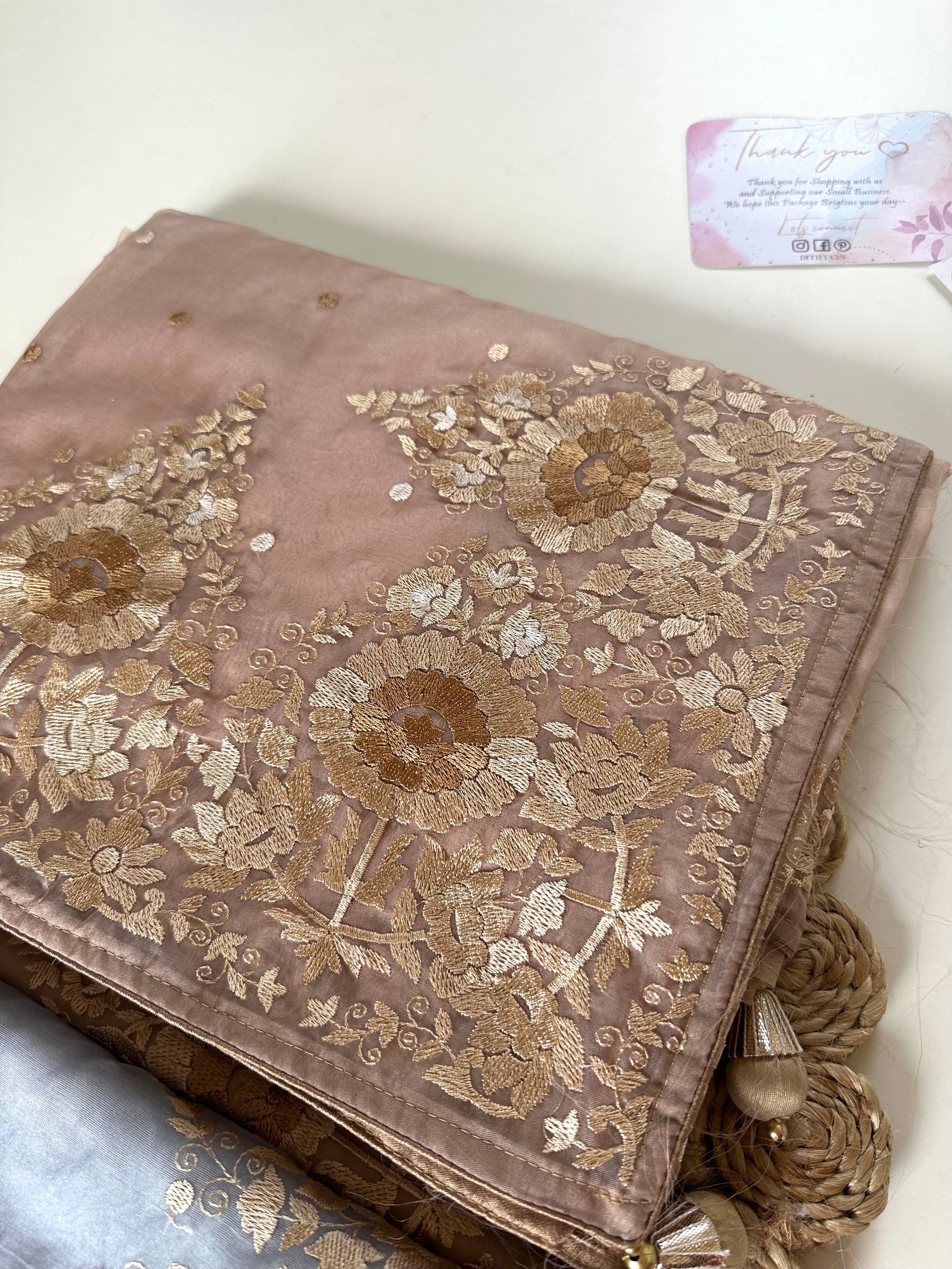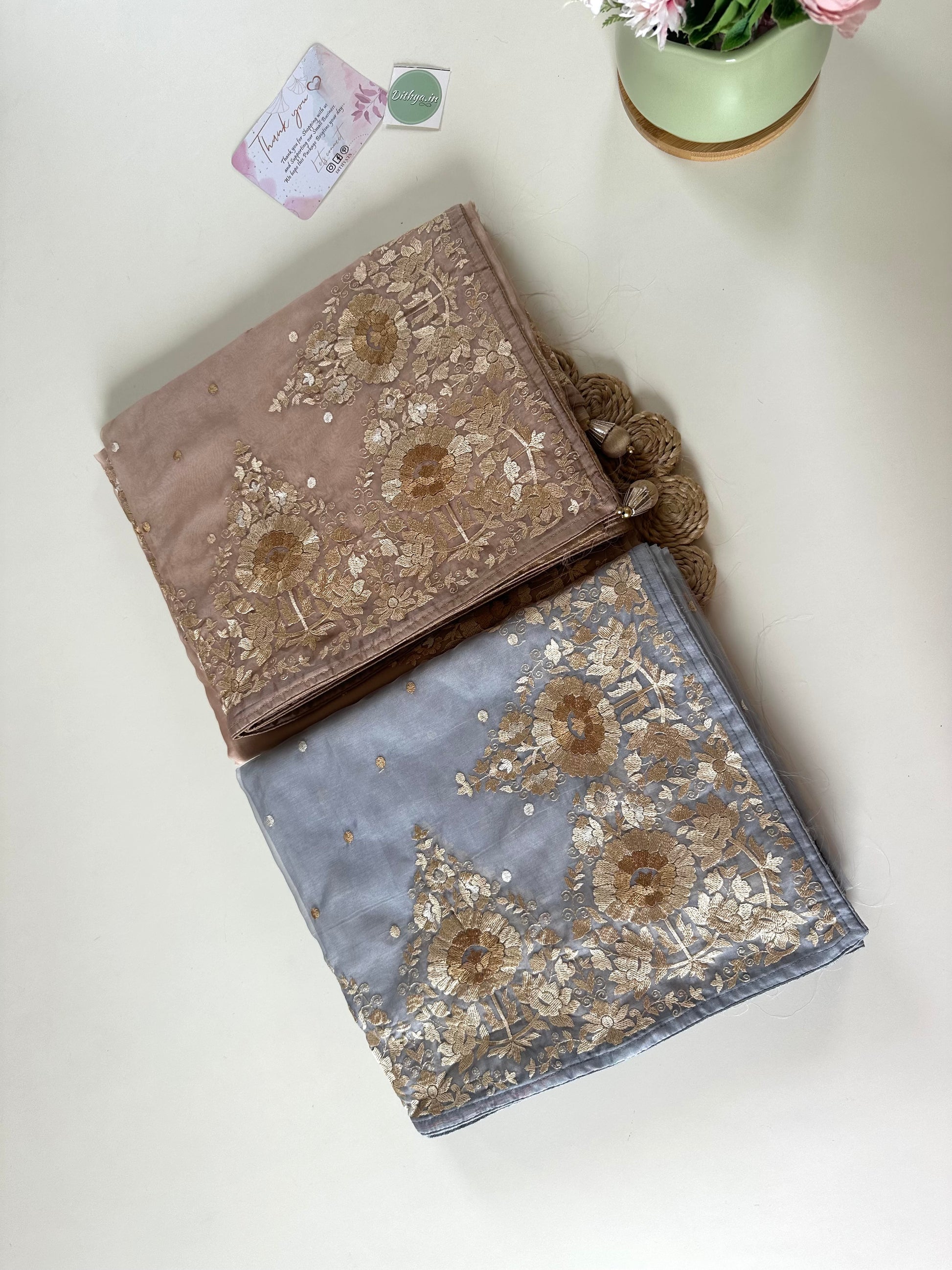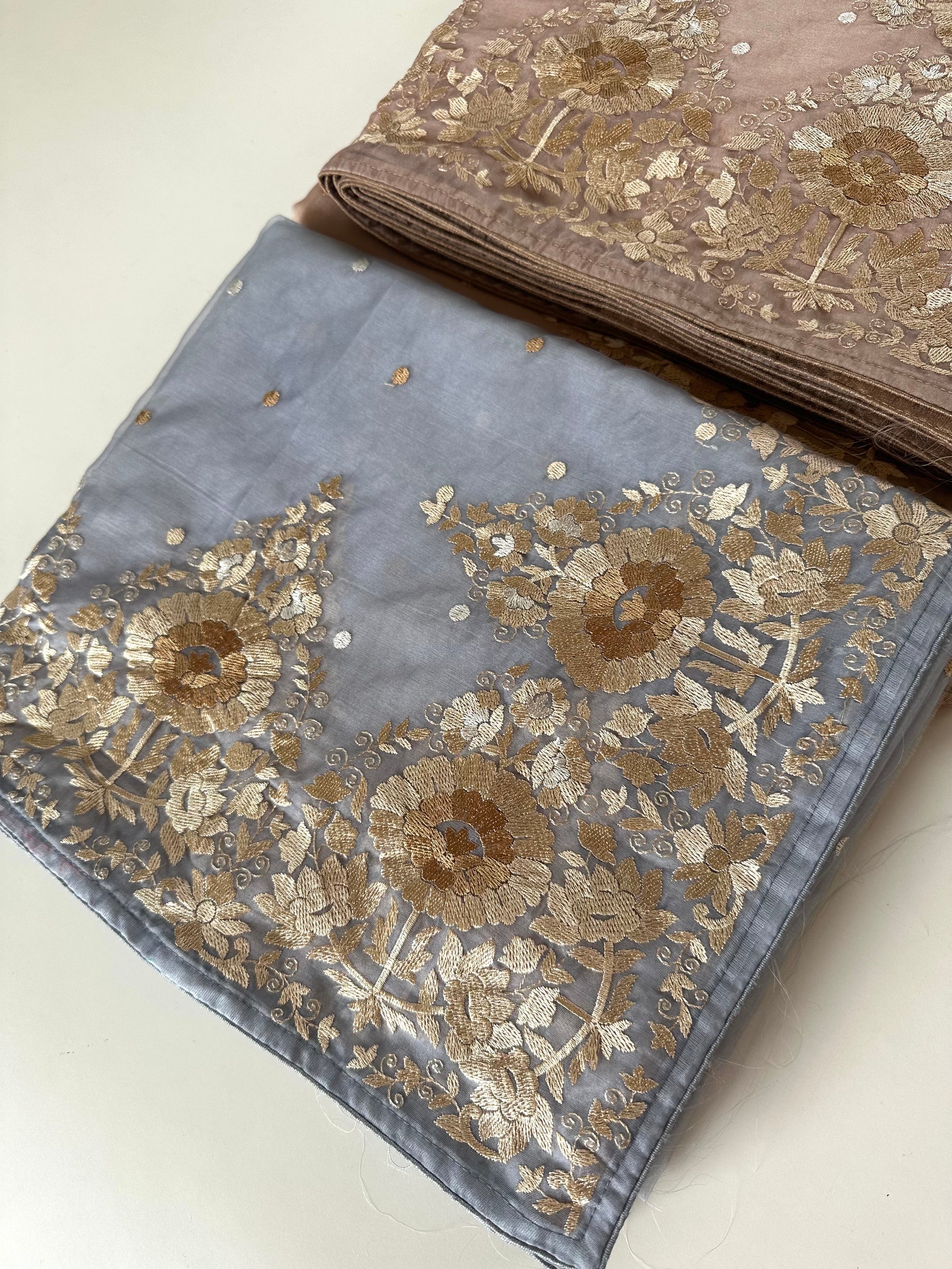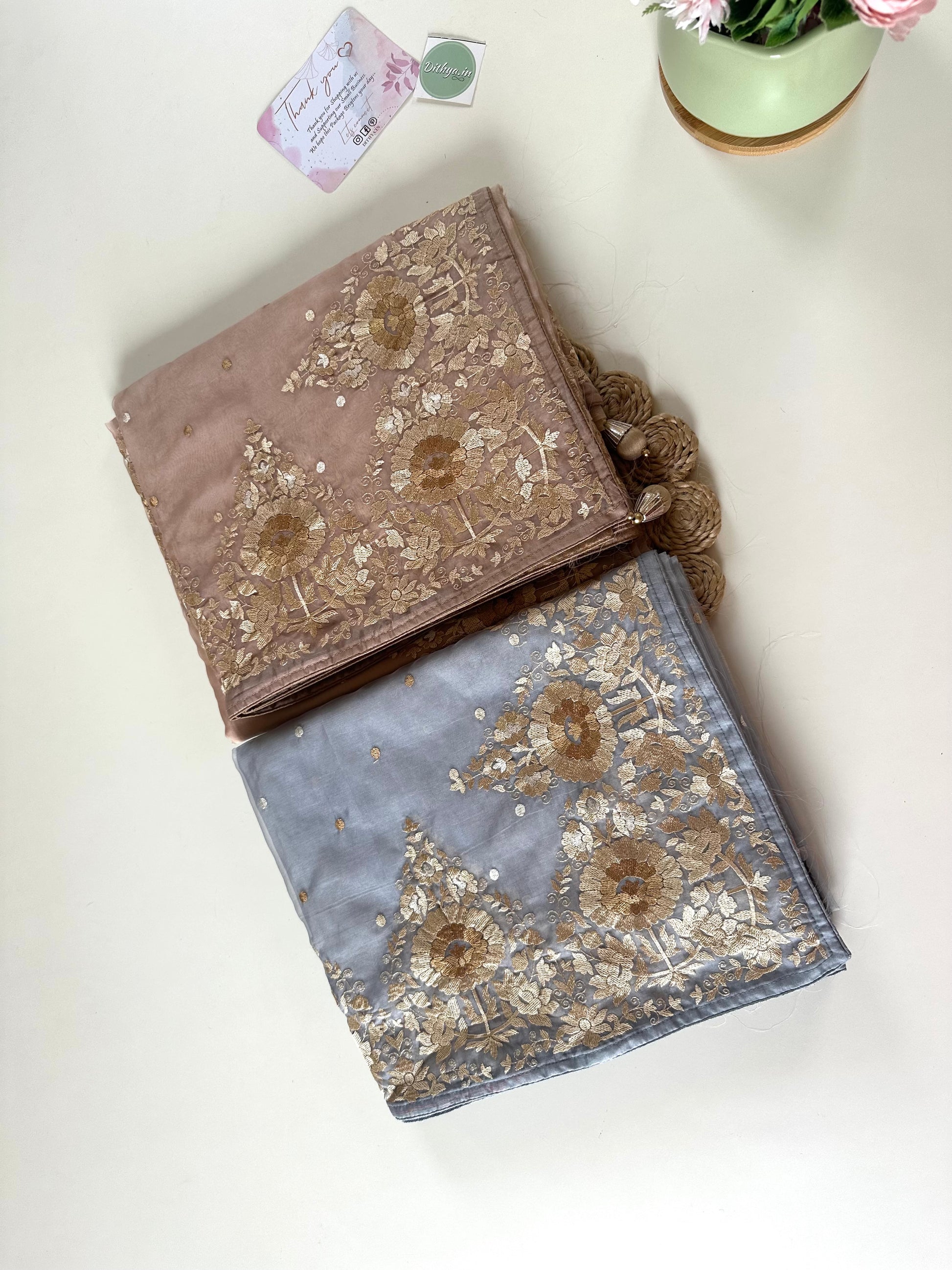 This Soft Organza Hand Embroidered Saree in 2 colours is a must-have for any saree lover. The delicate organza fabric boasts intricate hand embroidery, adding a touch of elegance and sophistication. Available in 2 stunning colours, this saree is perfect for any occasion and will surely make you stand out in a crowd.
