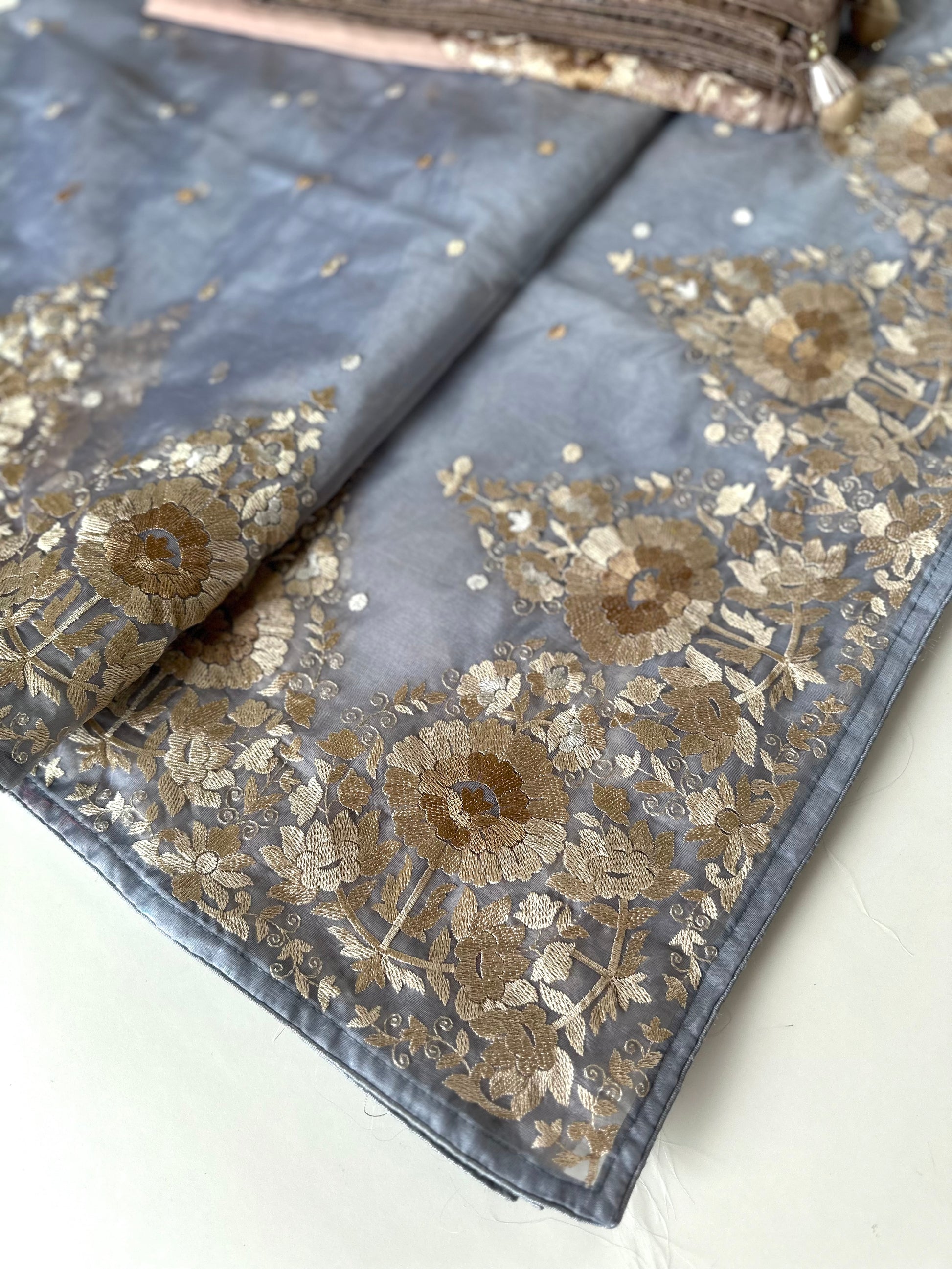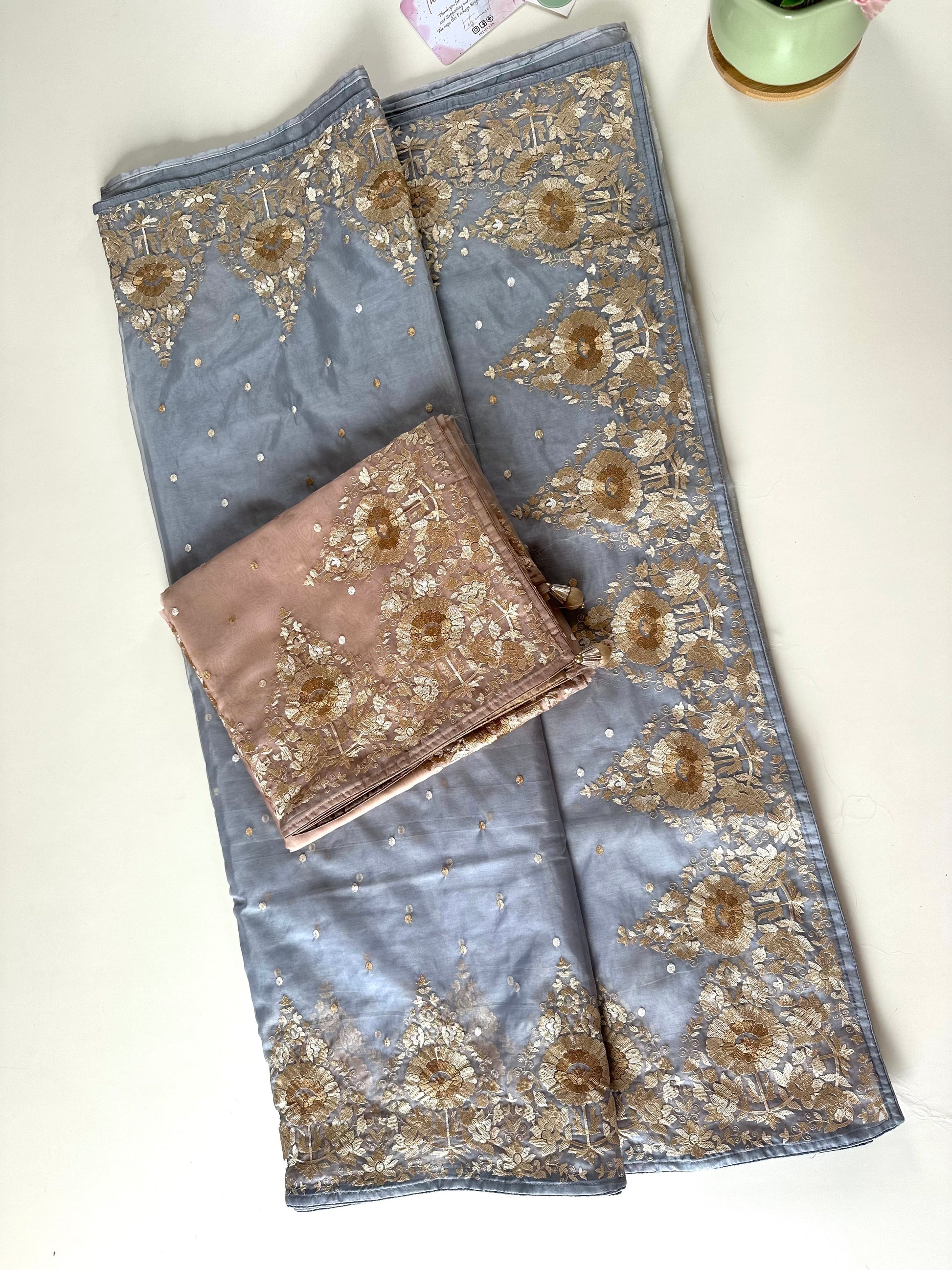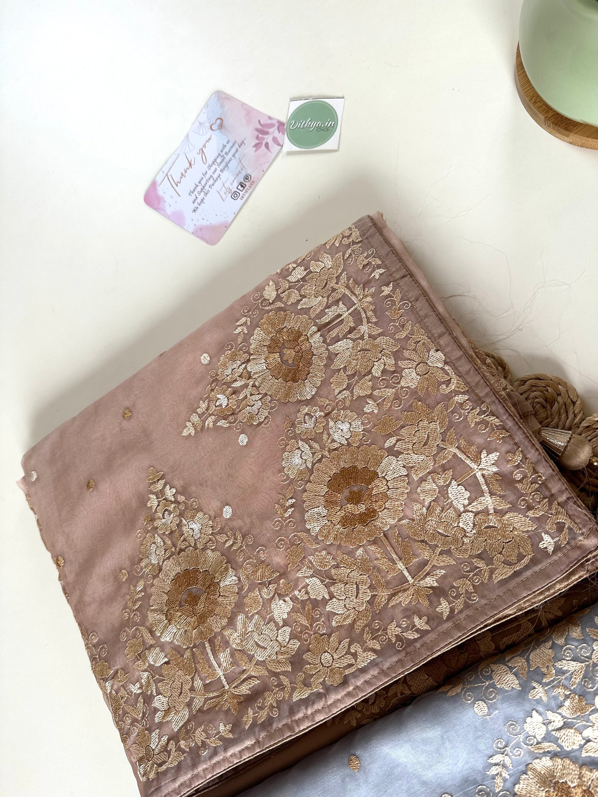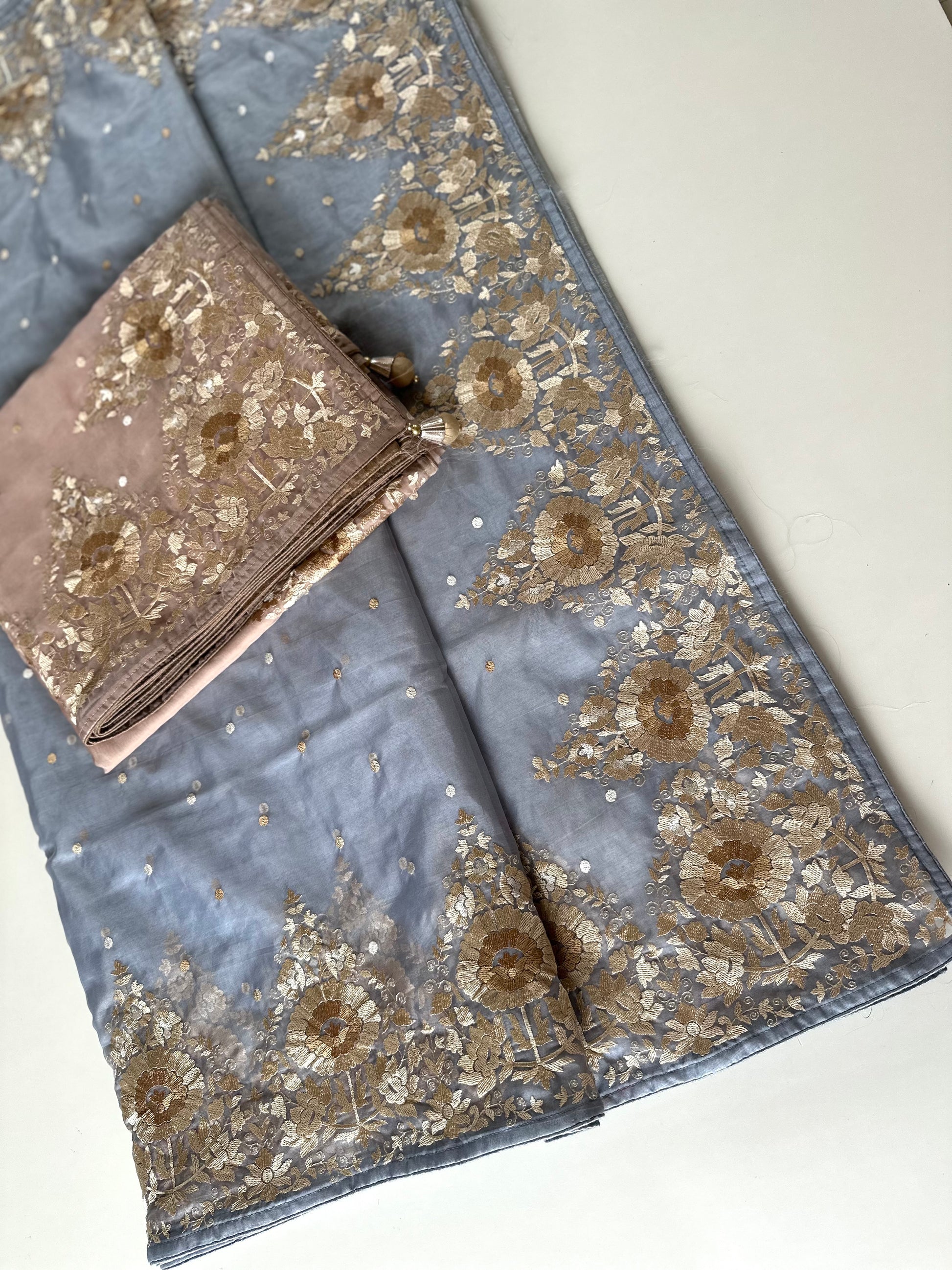 This Soft Organza Hand Embroidered Saree in 2 colours is a must-have for any saree lover. The delicate organza fabric boasts intricate hand embroidery, adding a touch of elegance and sophistication. Available in 2 stunning colours, this saree is perfect for any occasion and will surely make you stand out in a crowd.
