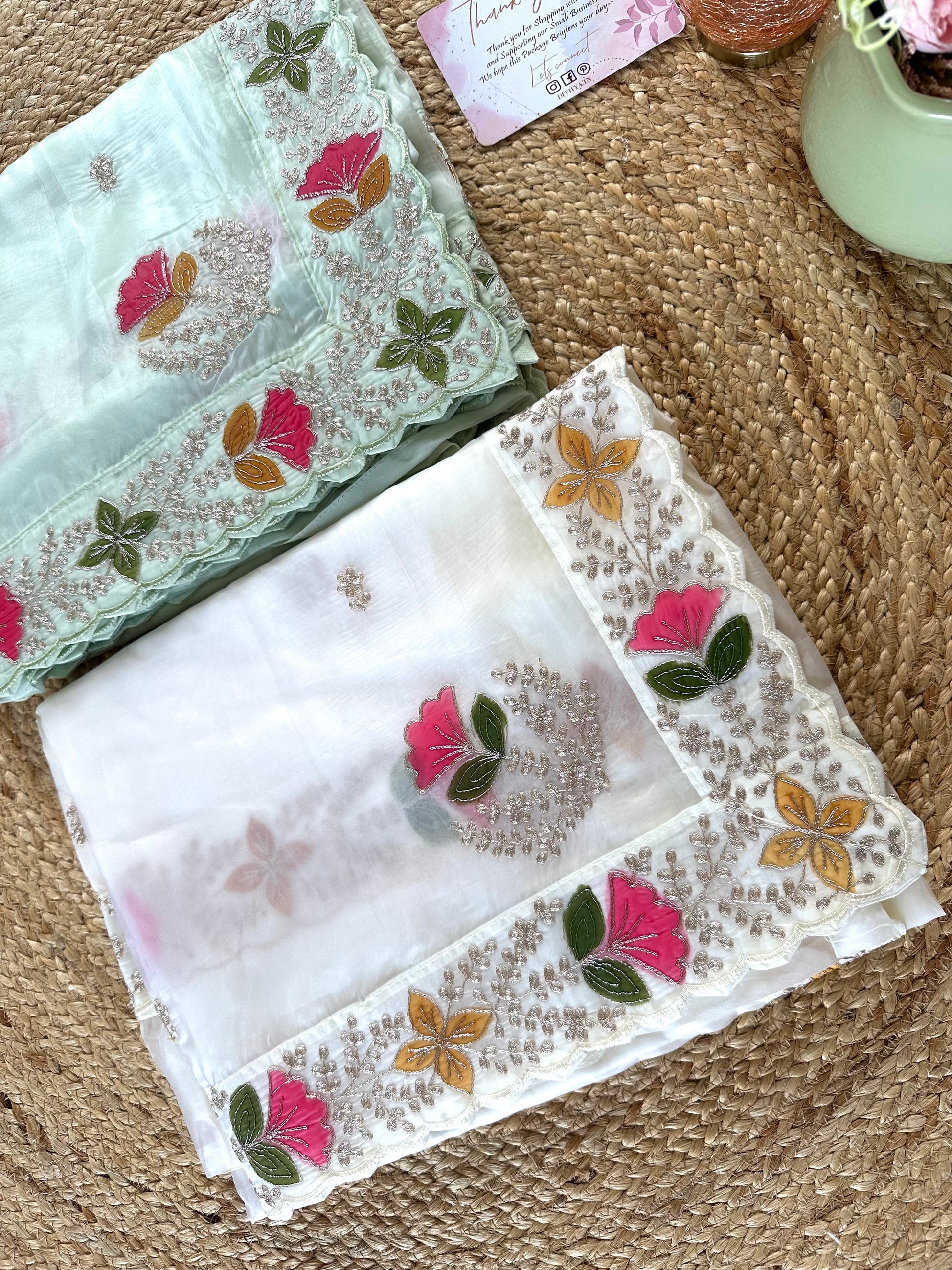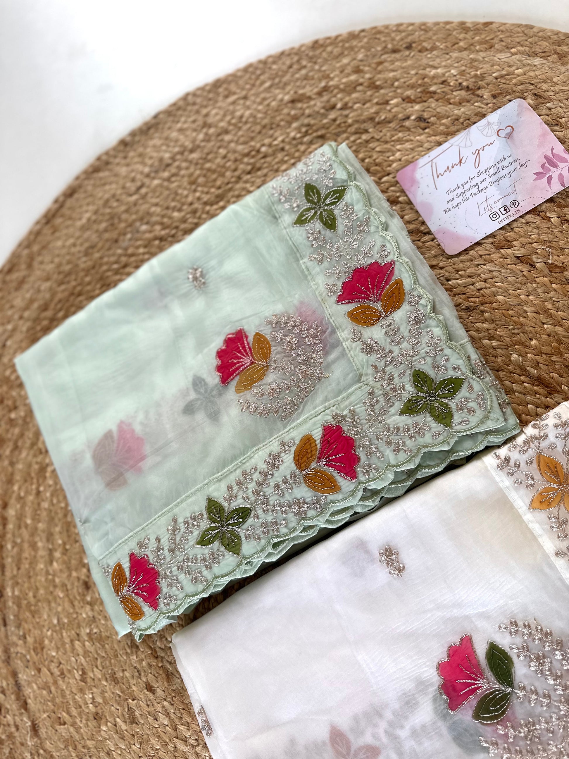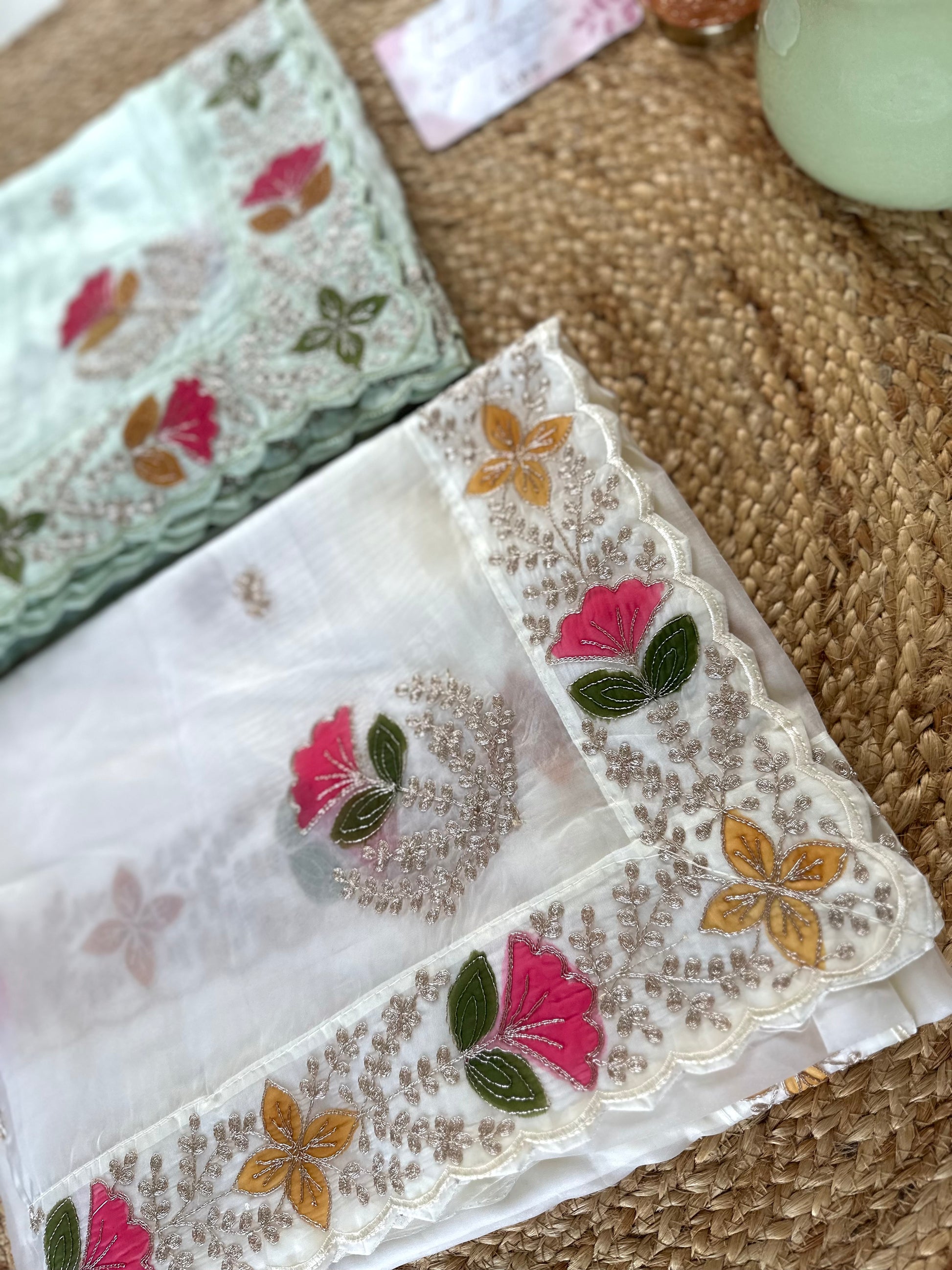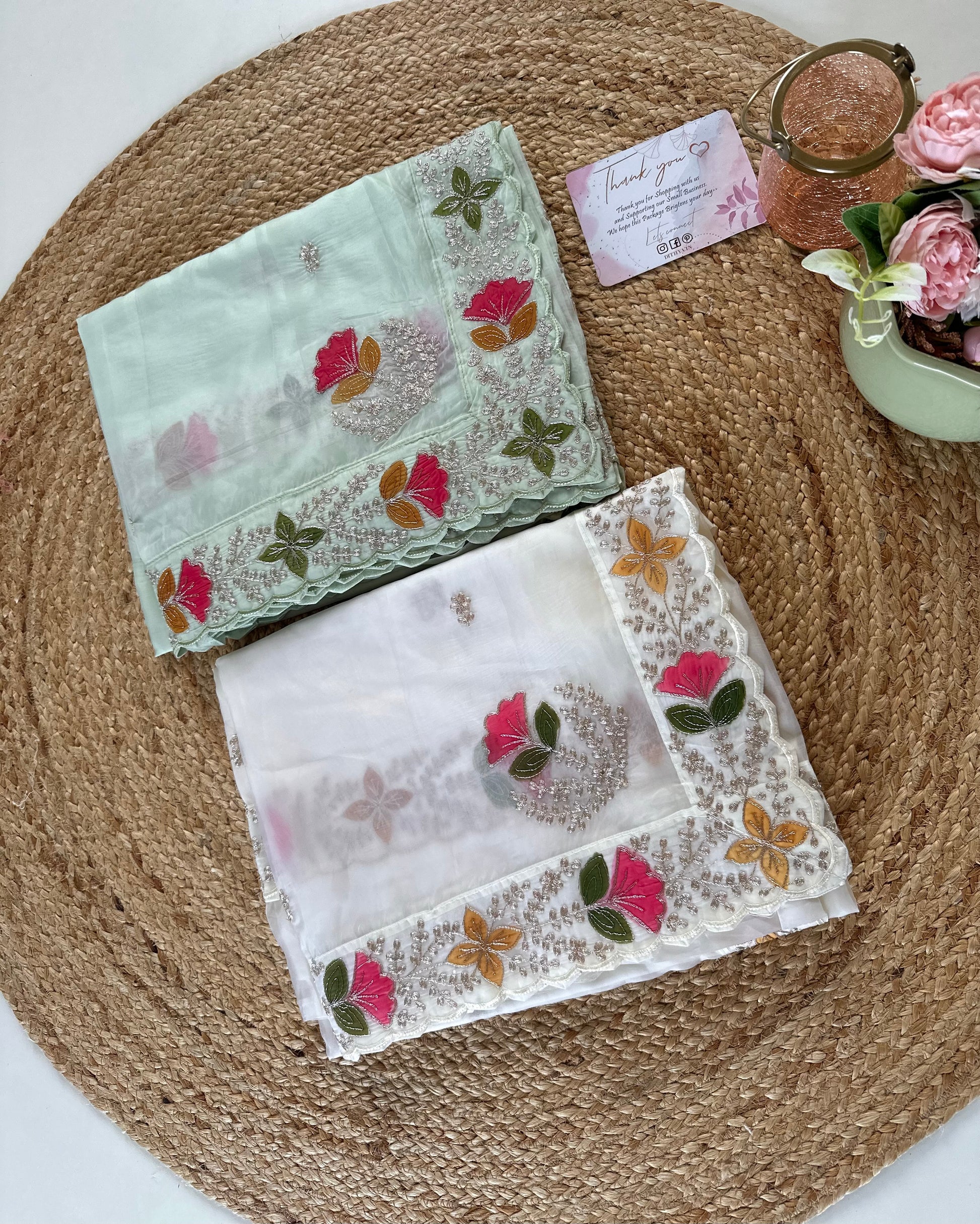 Introducing the Soft Organza pita work saree, available in 2 stunning colours. Made with soft and luxurious Organza fabric, this saree features intricate pita work that adds an extra touch of elegance. Elevate your style with this versatile and timeless saree.