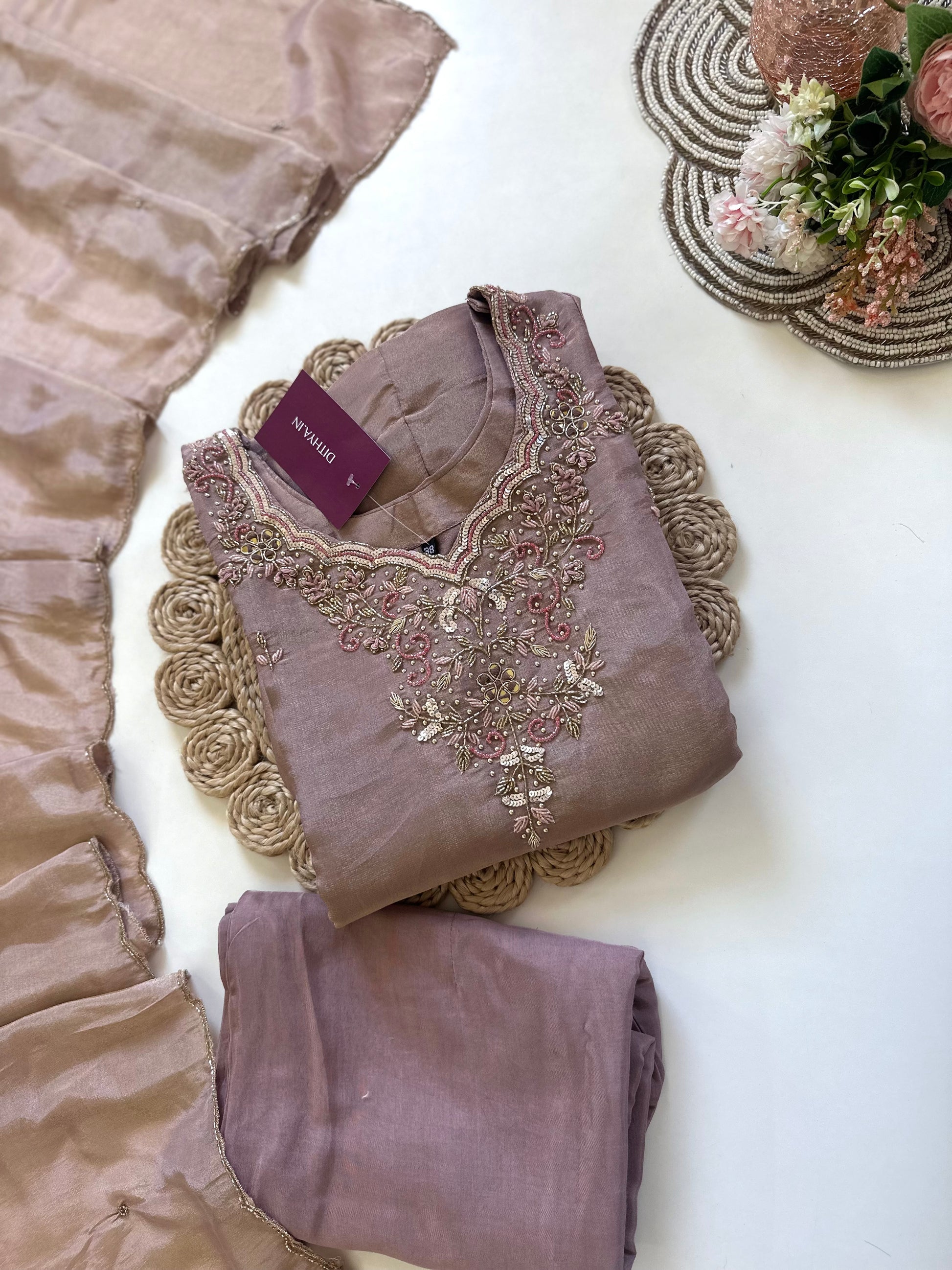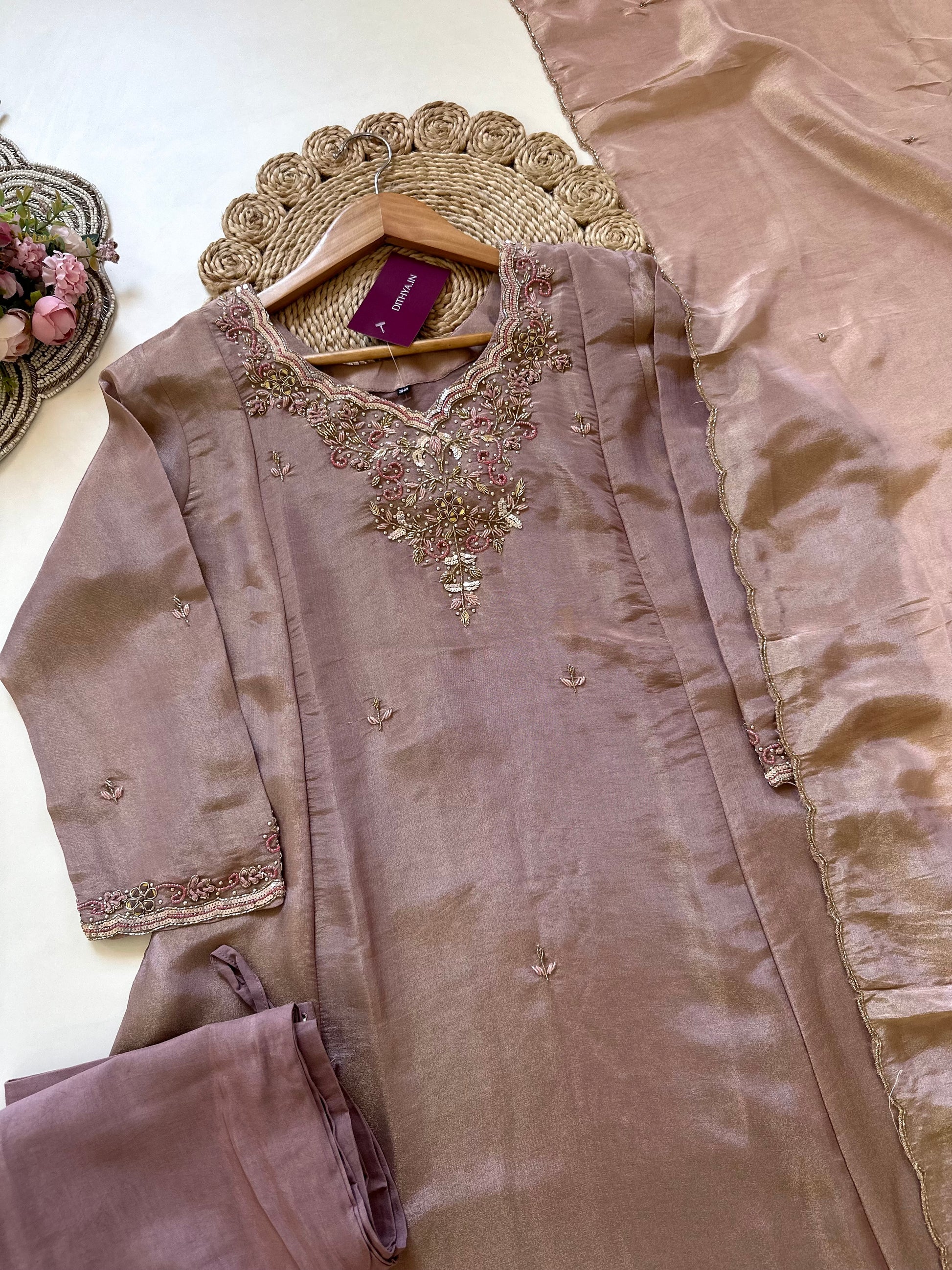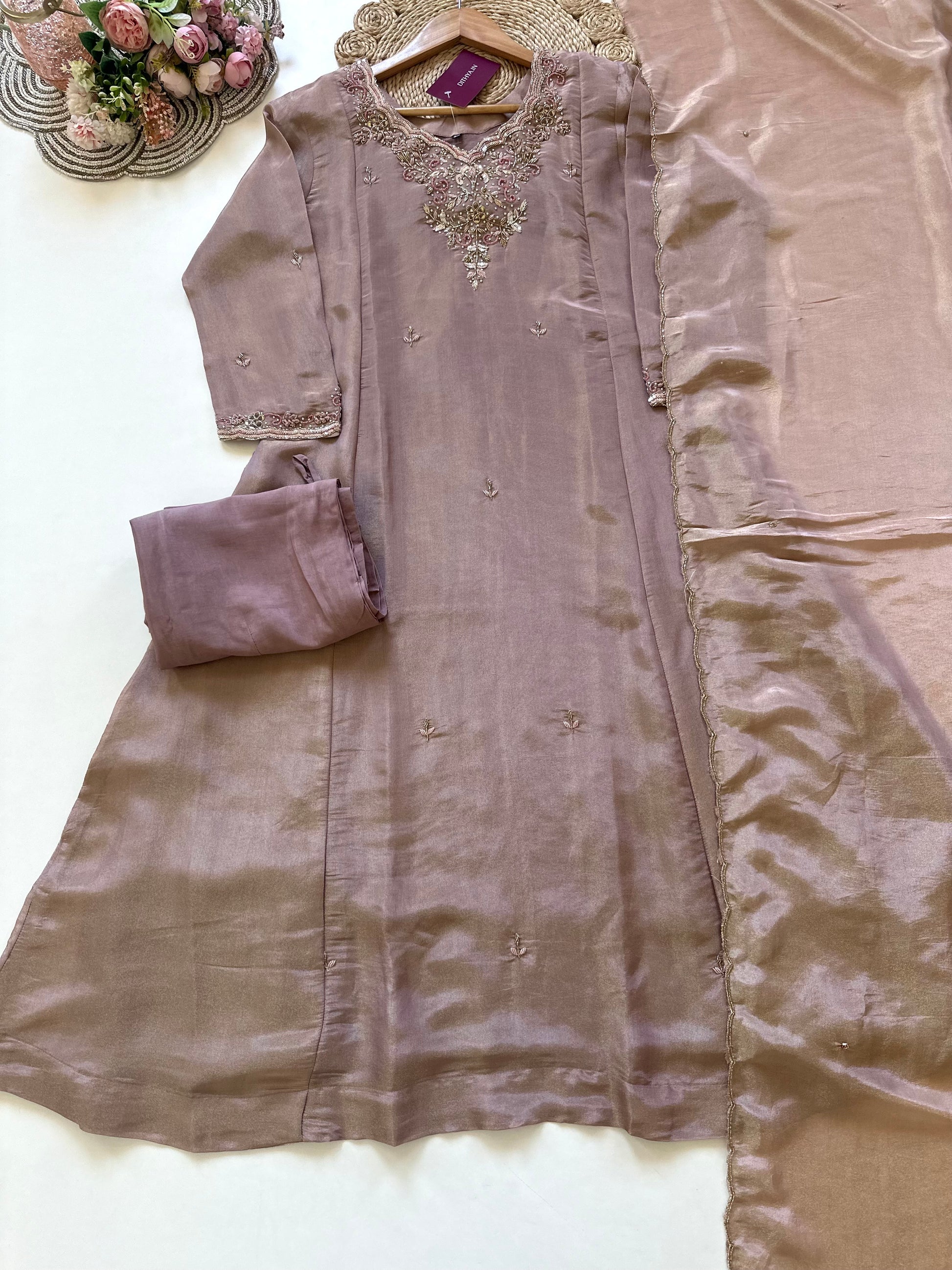 K006 - Tissue silk Handwork Anarkali with pants and dupatta