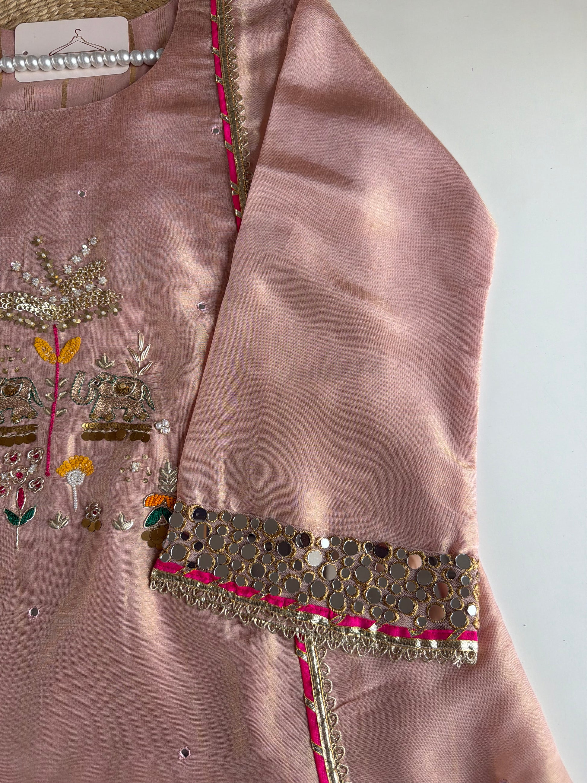 K655 - Tissue silk handwork Anarkali with pants and dupatta