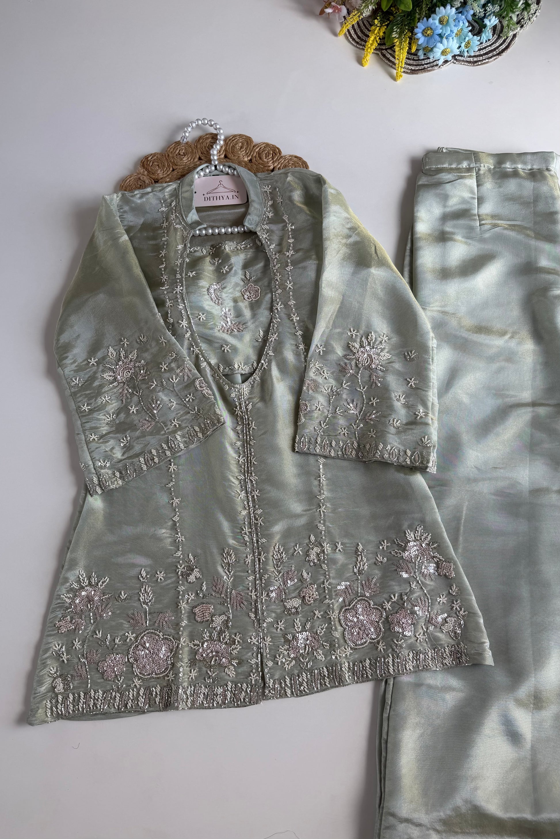 K140 - Tissue silk handwork coord set (Inner and palazzo)