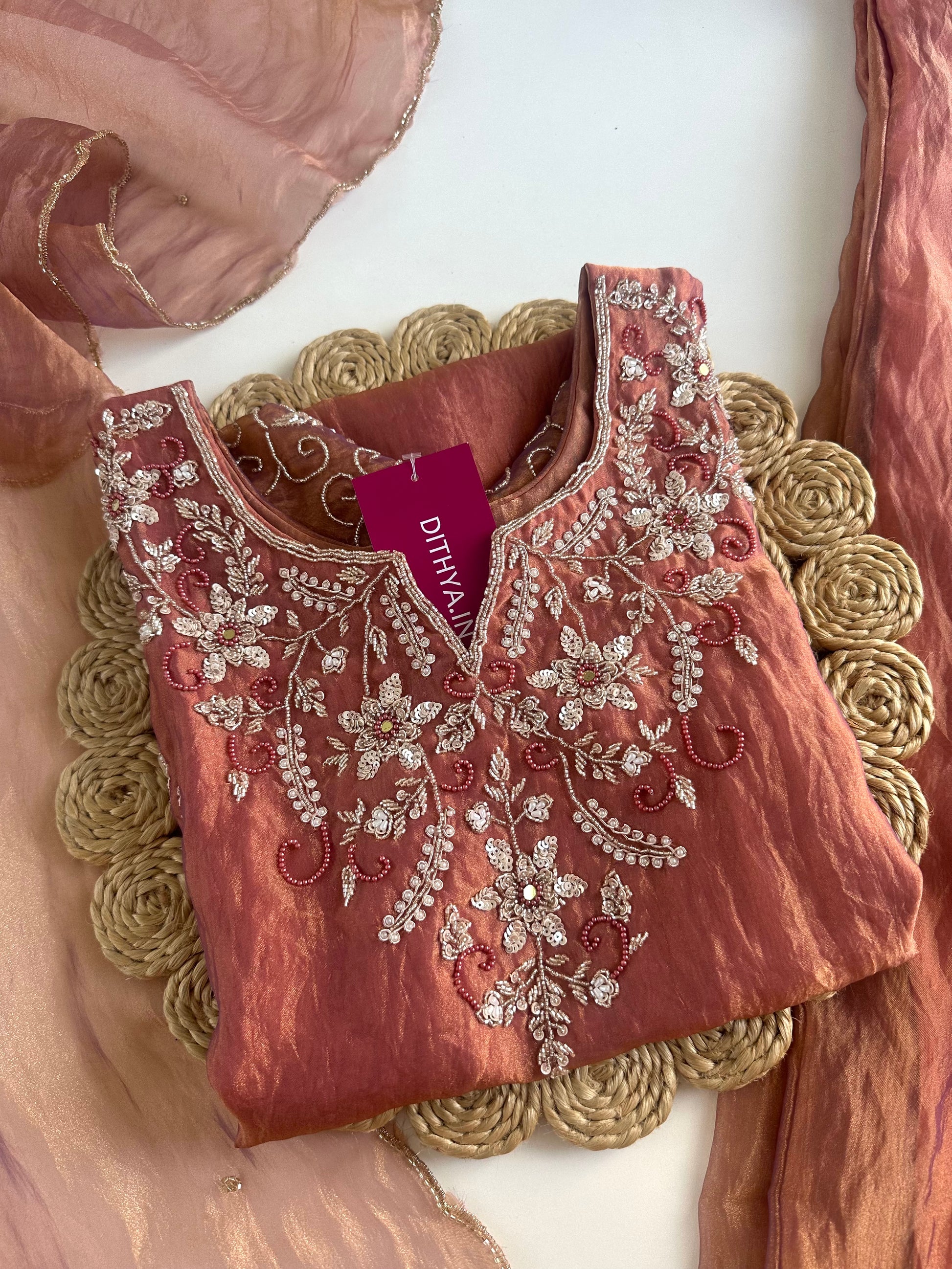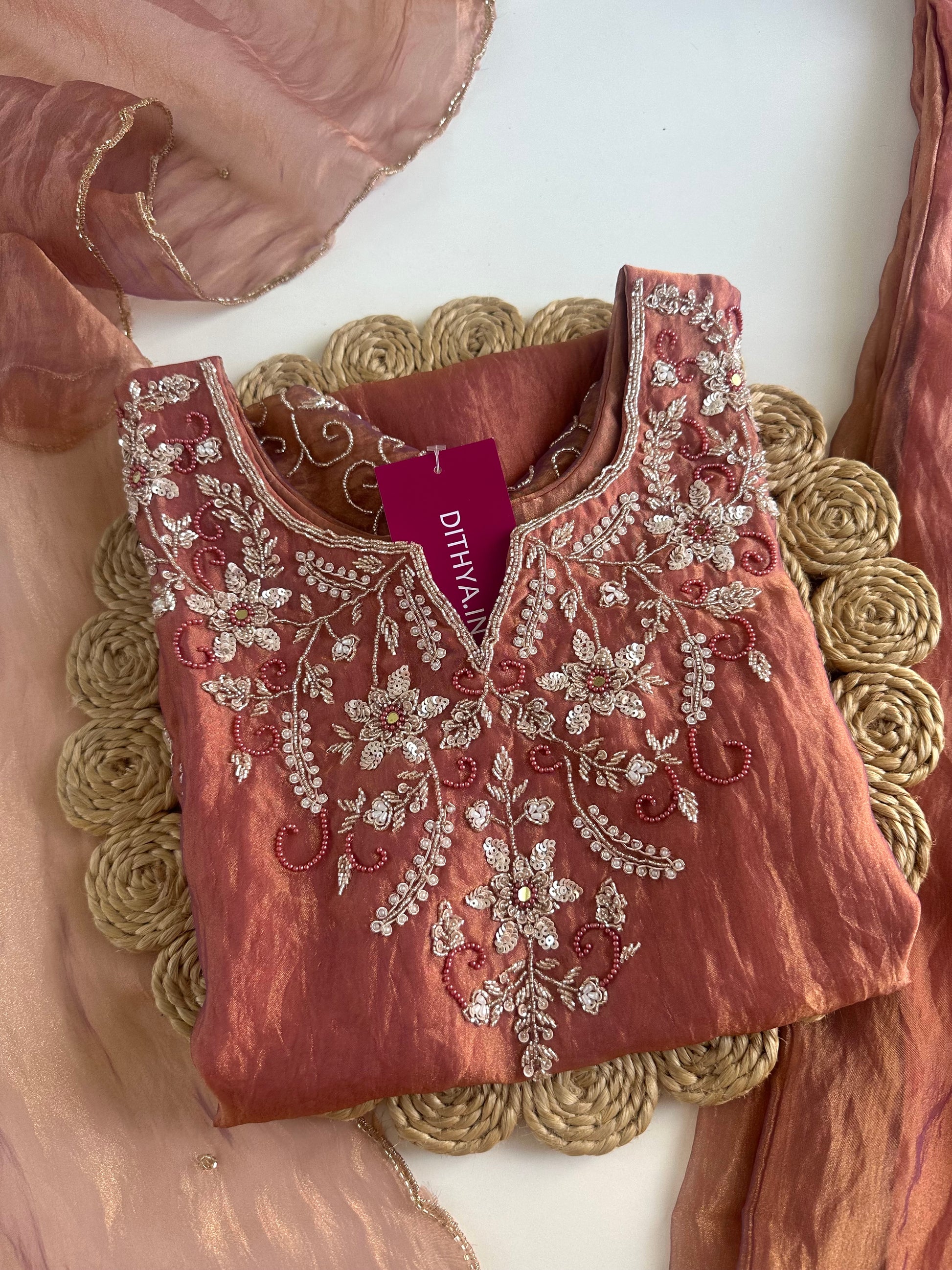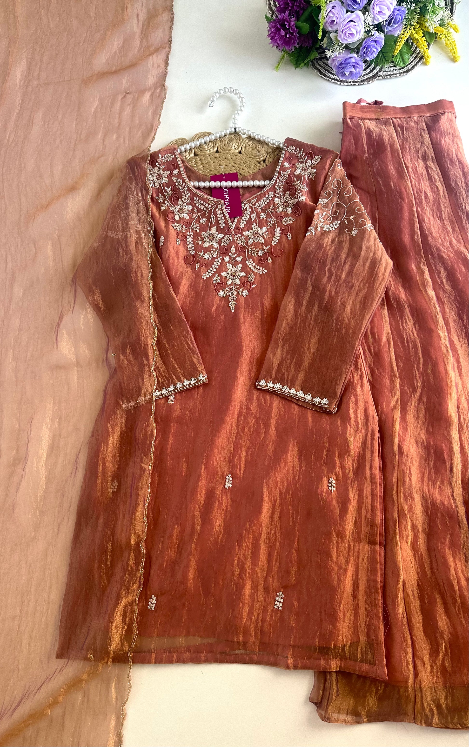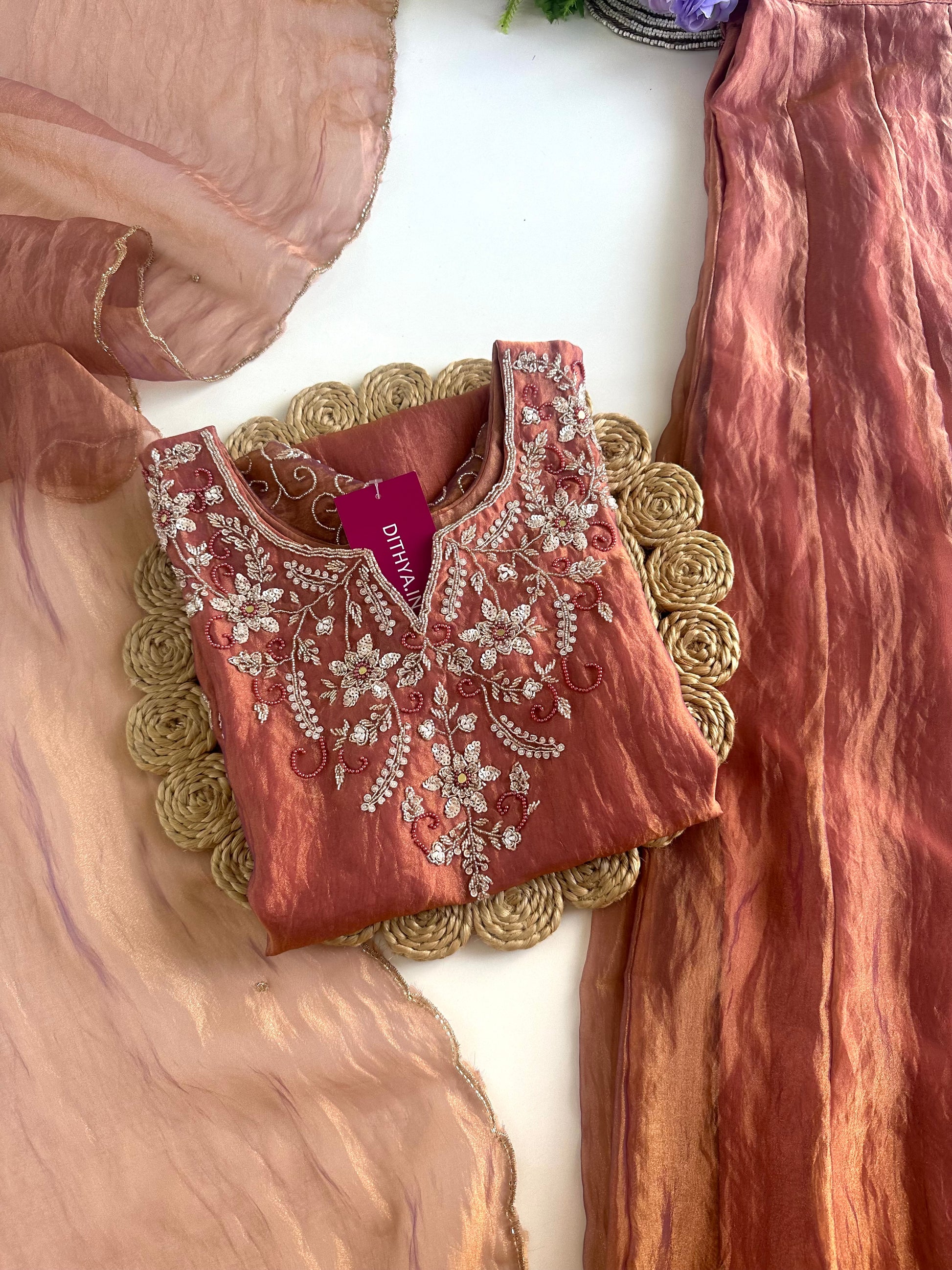 K180 - Tissue silk handwork short Kurti with palazzo and dupatta