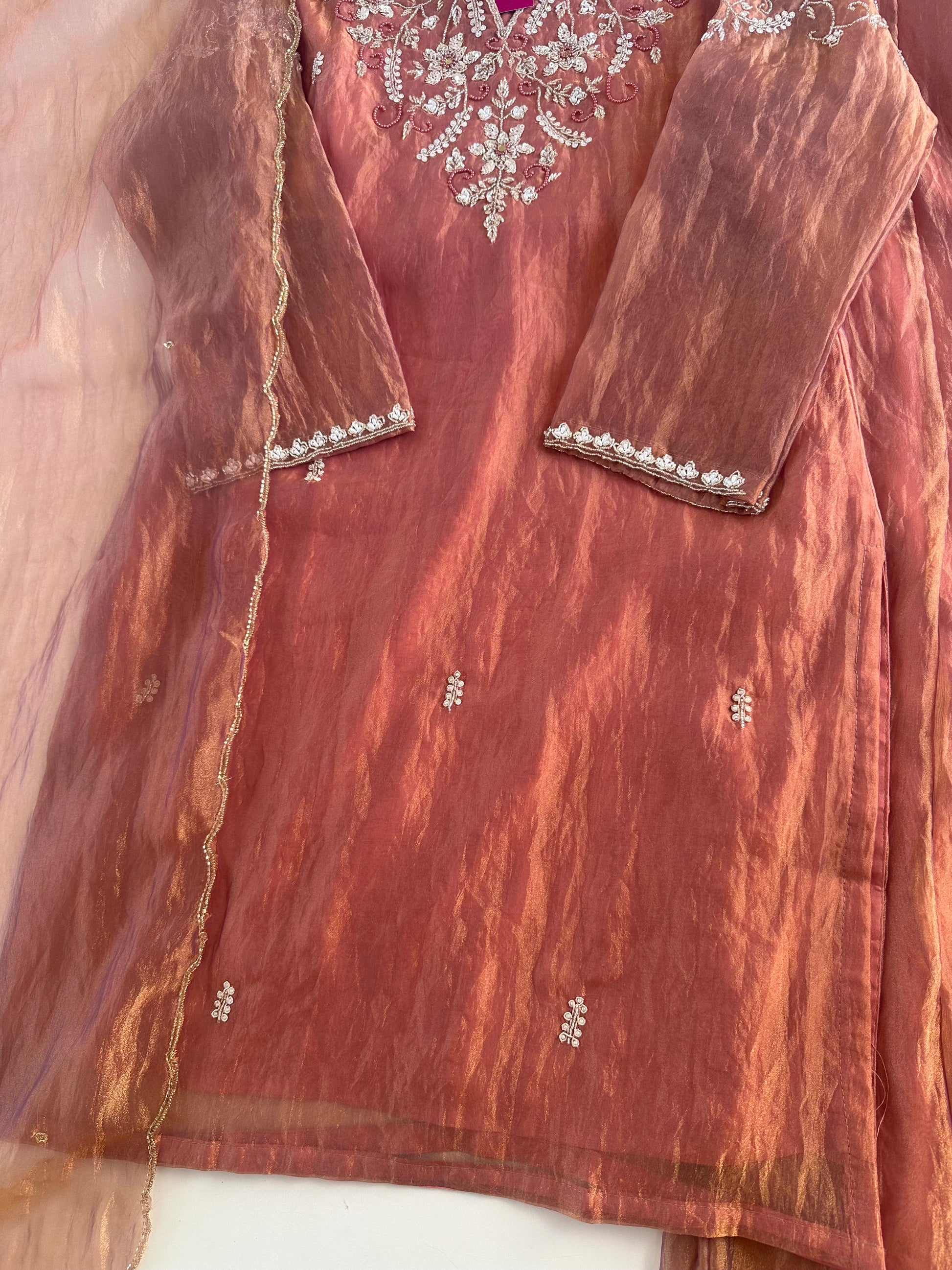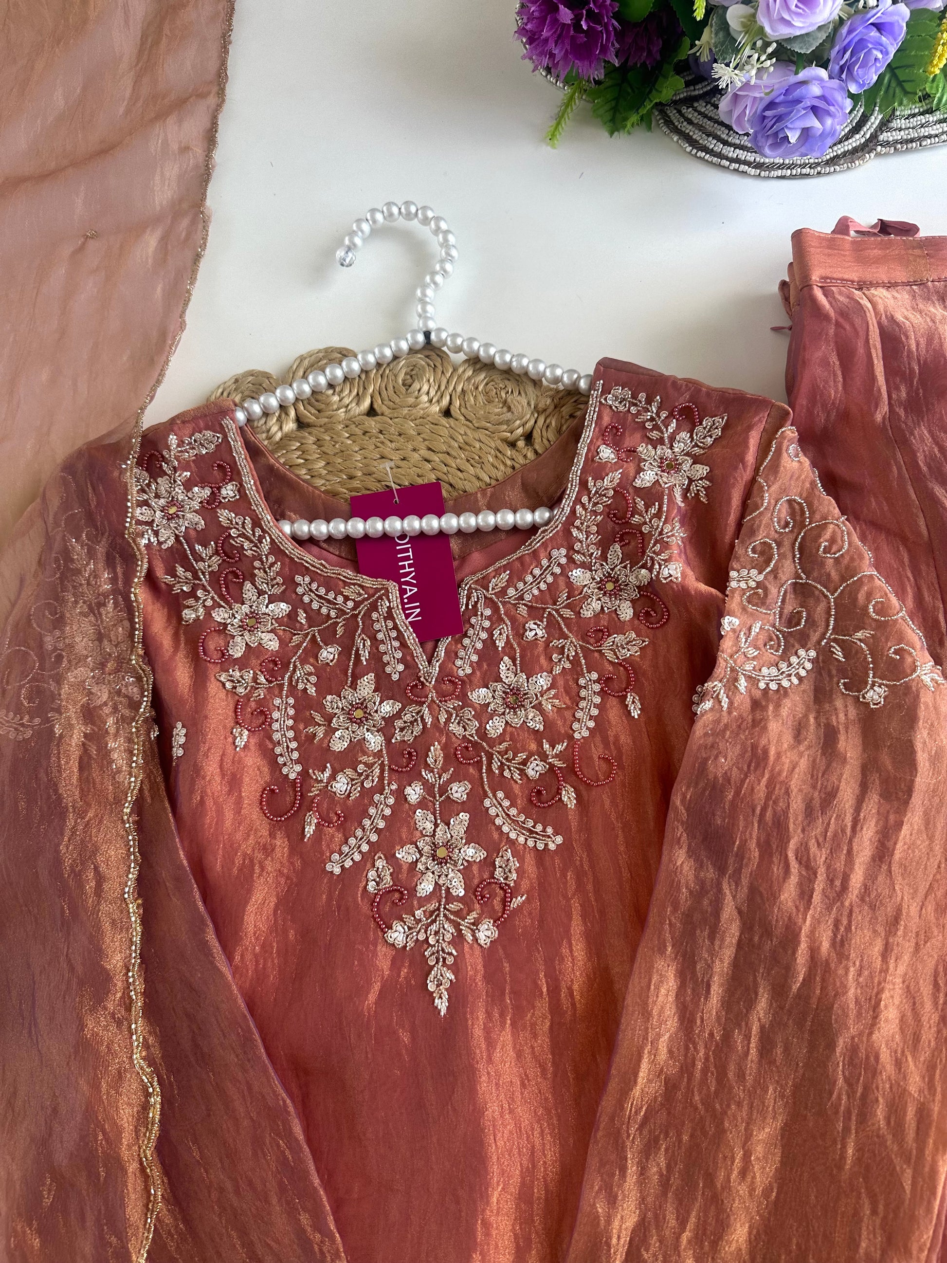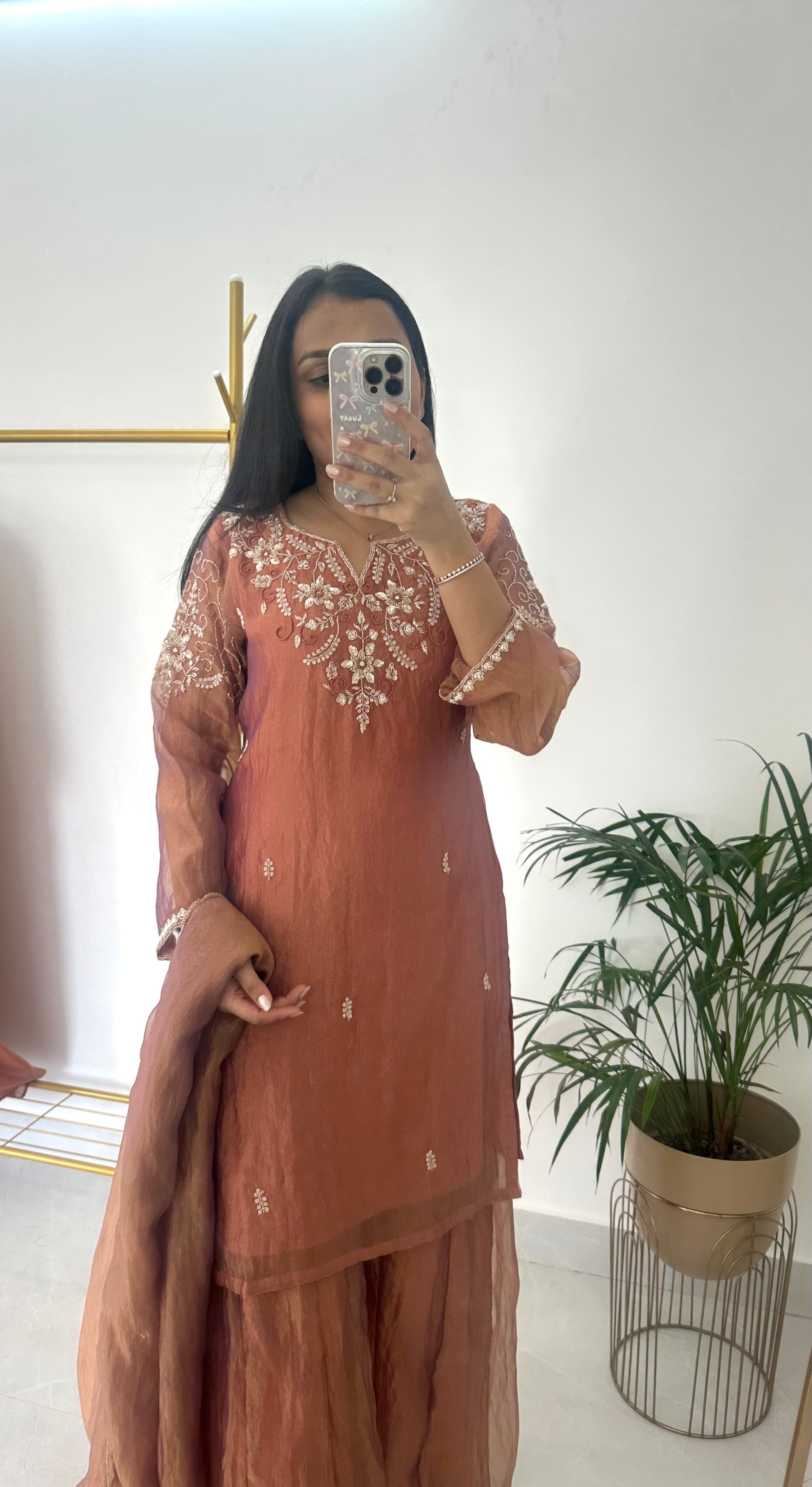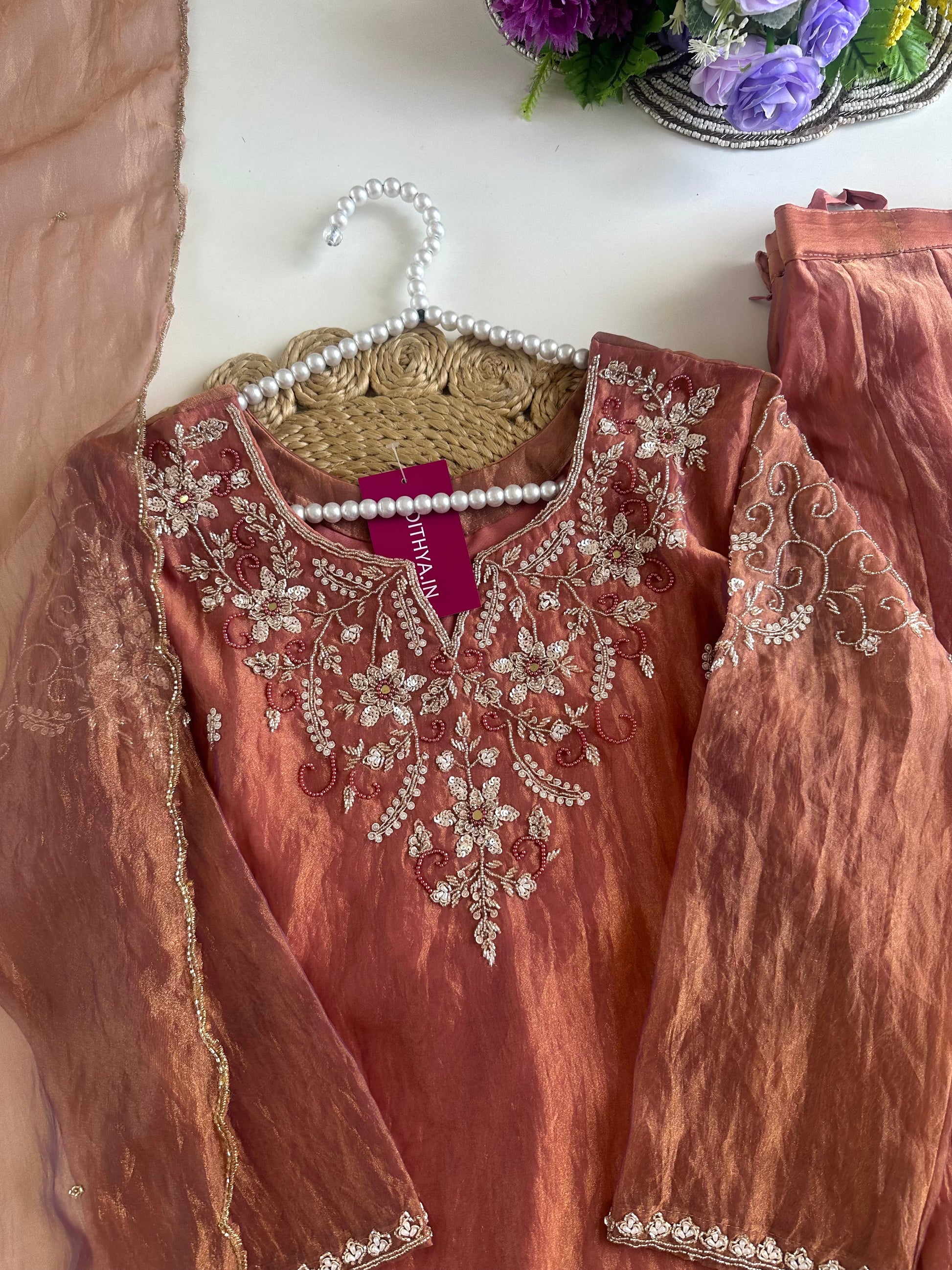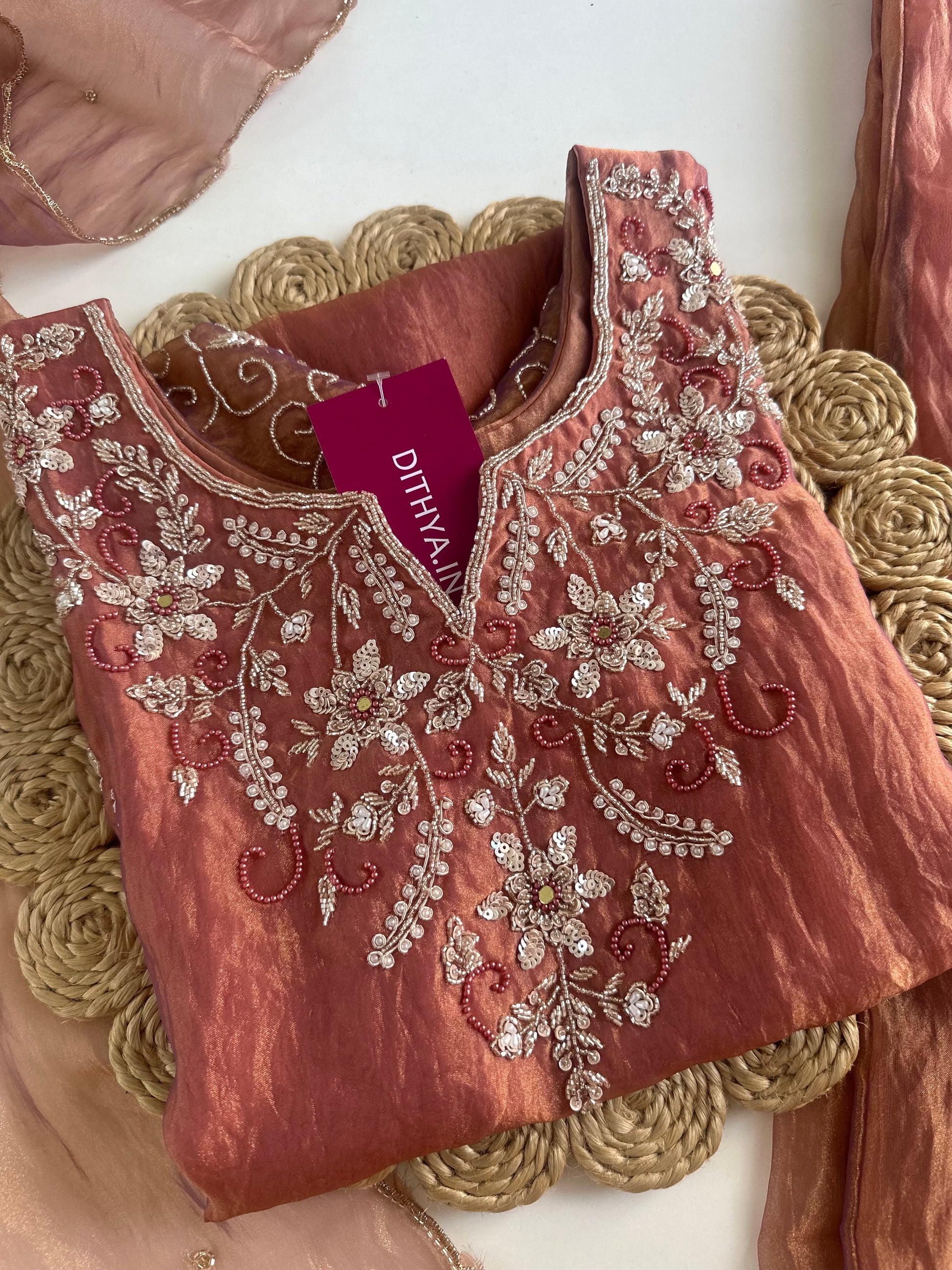 K180 - Tissue silk handwork short Kurti with palazzo and dupatta